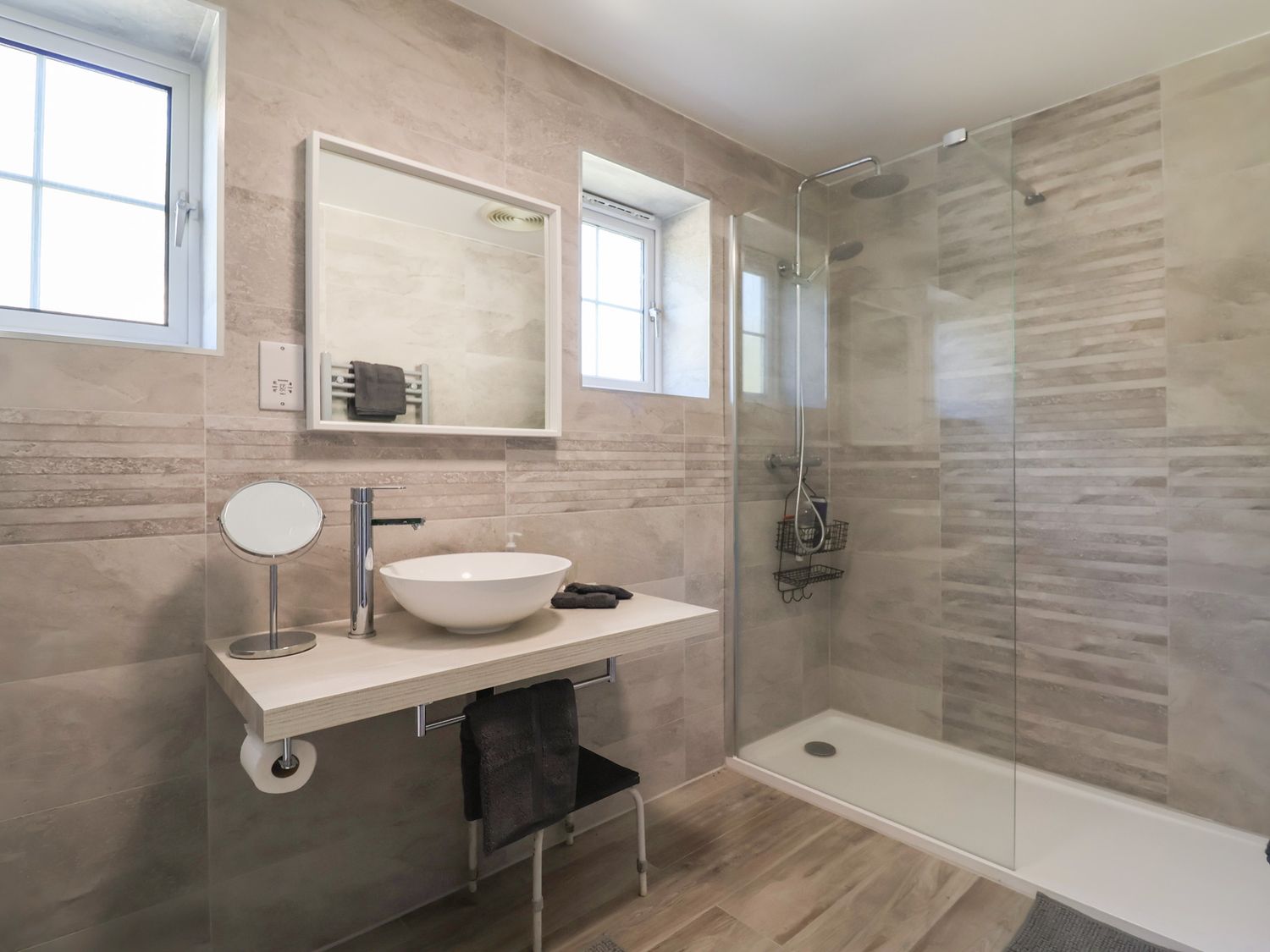 "Four bedrooms: 1 x double with en-suite walk-in shower, basin, and WC, 2 x doubles, 1 x single room with optional pull-out truckle bed (suitable for children only). Shower room with walk in shower, basin, and WC. Ground-floor cloakroom with basin and WC. Kitchen/diner. Sitting room"