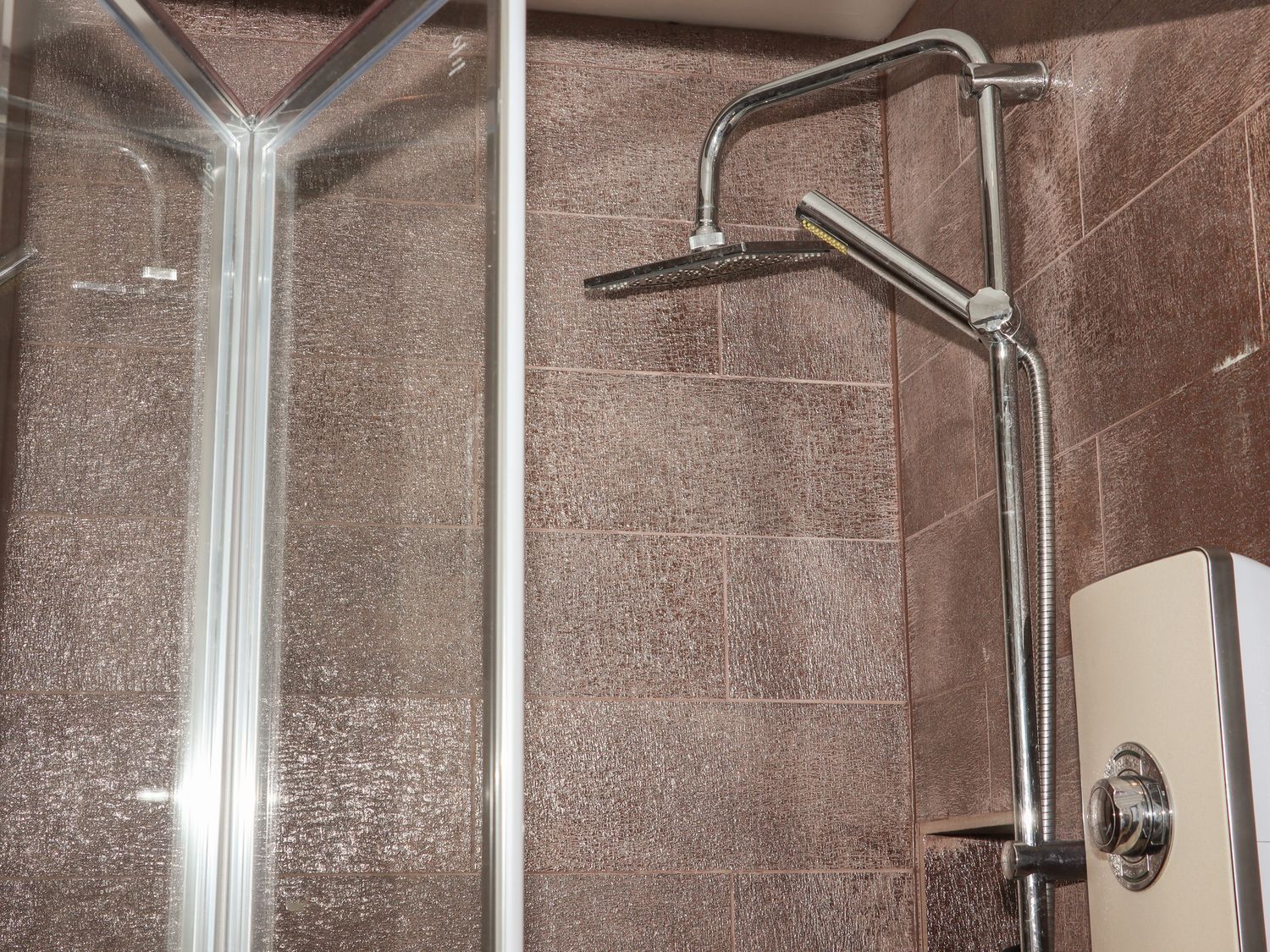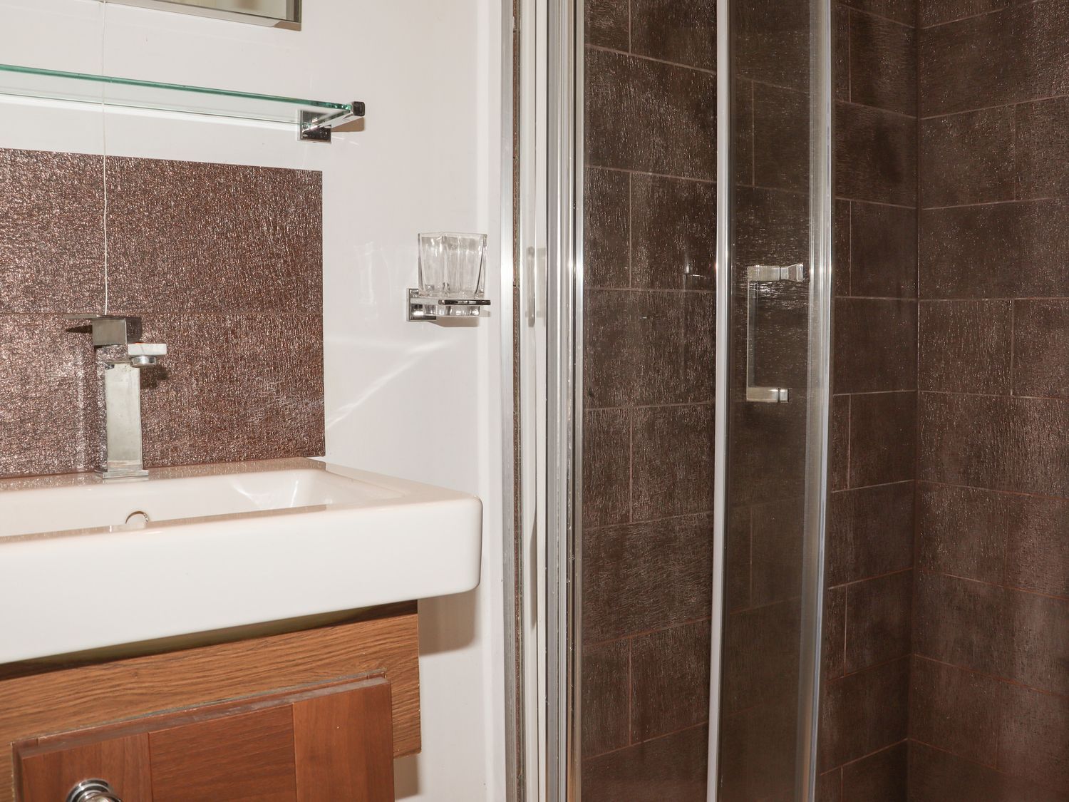 "One ground-floor double bedroom with TV and a sofa bed. Ground-floor shower room with walk-in shower, basin, WC. Utility. First-floor sitting room with electric fire and balcony"