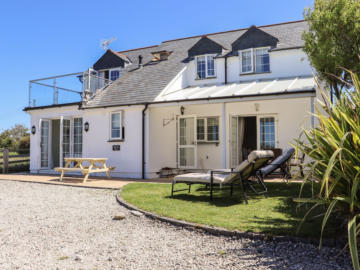 "Atlantic View is a house consisting of a kitchen/diner with electric oven and hob, microwave, fridge/freezer, dishwasher, kettle, toaster, dining seating, and breakfast bar, and a sitting room with TV and electric fire. The bedrooms consist of a double with TV, double, and a twin. There is a bathroom with bath, shower over, basin, and WC. You'll find a shop in 1.4 miles, pub in 1.5 miles, beach in 1.2 miles, and river in 0.5 miles. WiFi, fuel, power, bed linen, and towels are included in the rent. Travel cot and highchair available. Outside, there is a garden with patio, lawn, and furniture, and off-road parking. Two well-behaved pets are welcome. Sorry, no smoking. Your journey to Cornwall is guaranteed to be one to remember with a stay at Atlantic View. Note: Guests are not permitted to charge electric cars at the property. Note: This property has a Good Housekeeping Bond of 350GBP "