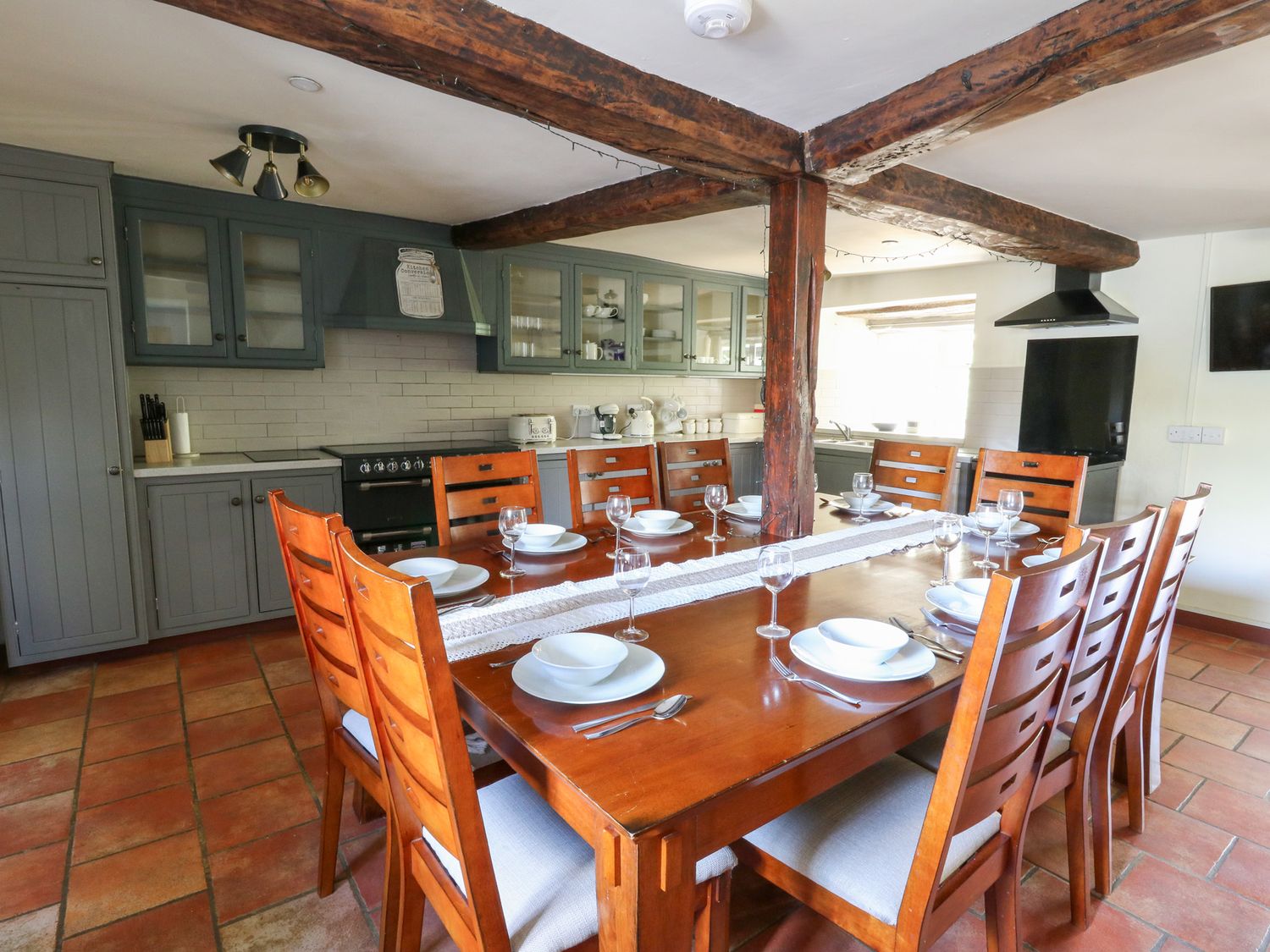 "Over three floors. Four bedrooms: 1 x king-size with en-suite cloakroom, 1 x second-floor king-size, 1 x twin (zip/link, can be super-king-size on request) with en-suite bath, hand-held shower, basin and WC, 1 x family room with super-king-size and two singles with en-suite walk-in shower, basin and WC. Ground-floor shower room with walk-in shower, double basin and WC. Kitchen/diner with Smart TV. Utility/porch. Sitting room with woodburning stove. Games room with Smart TV. Conservatory"