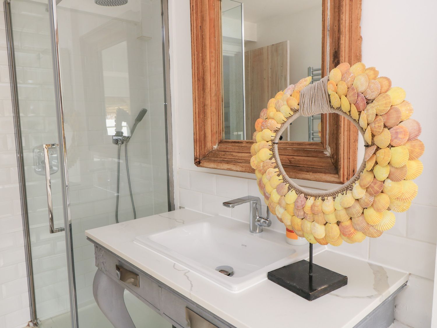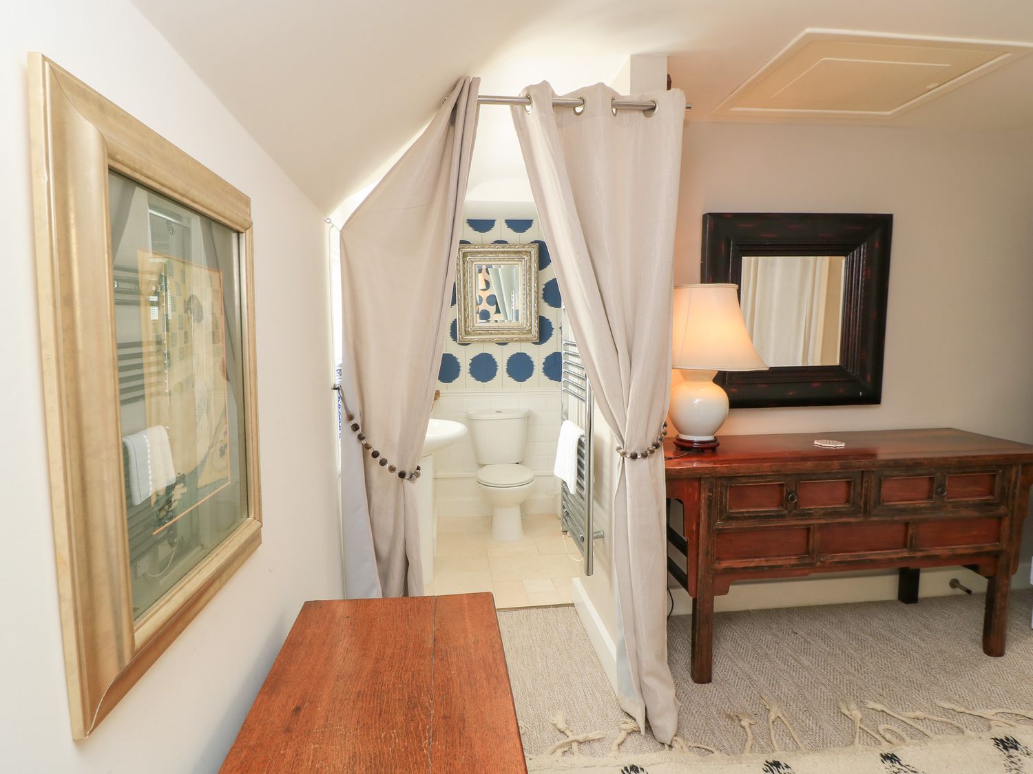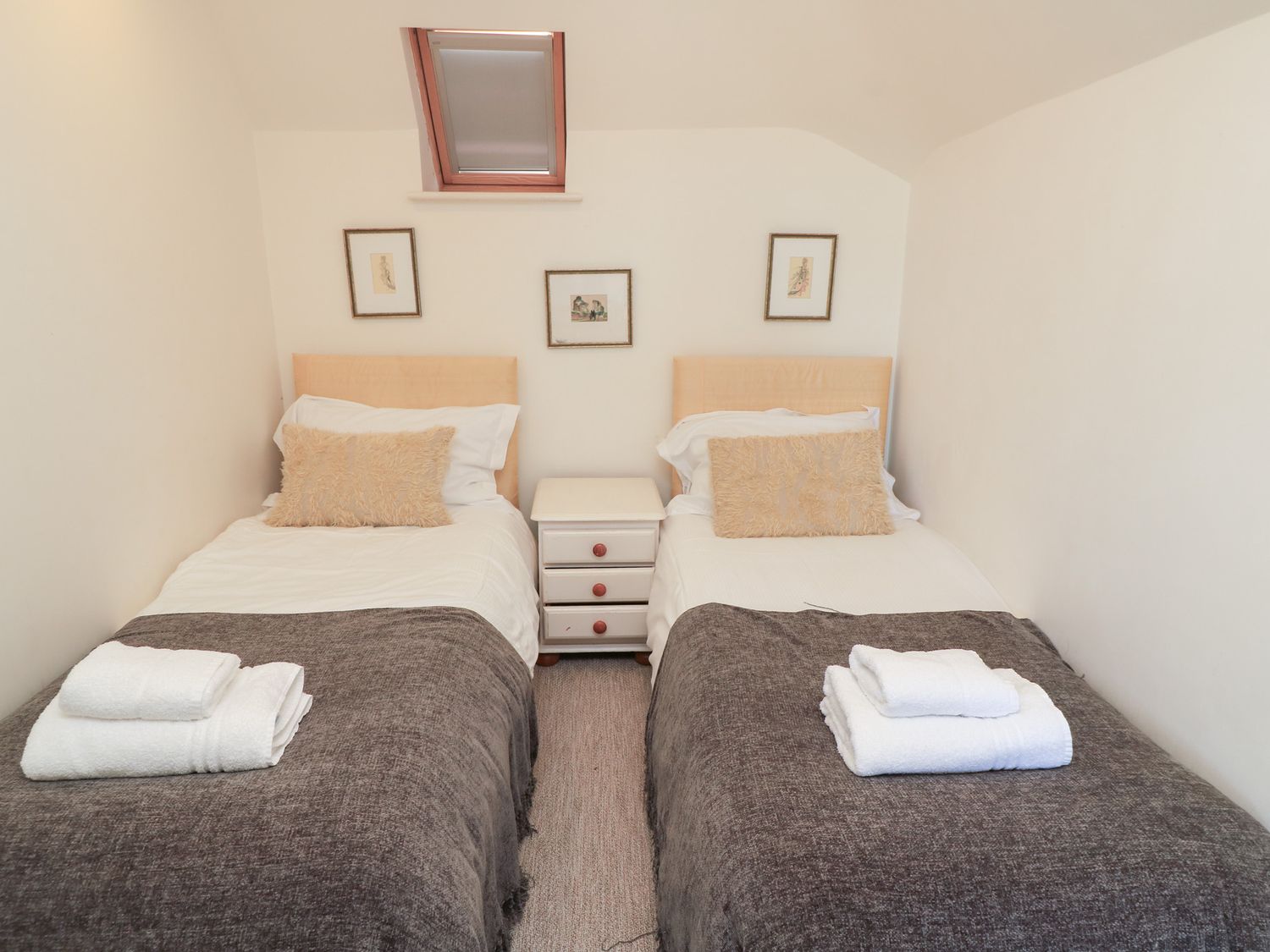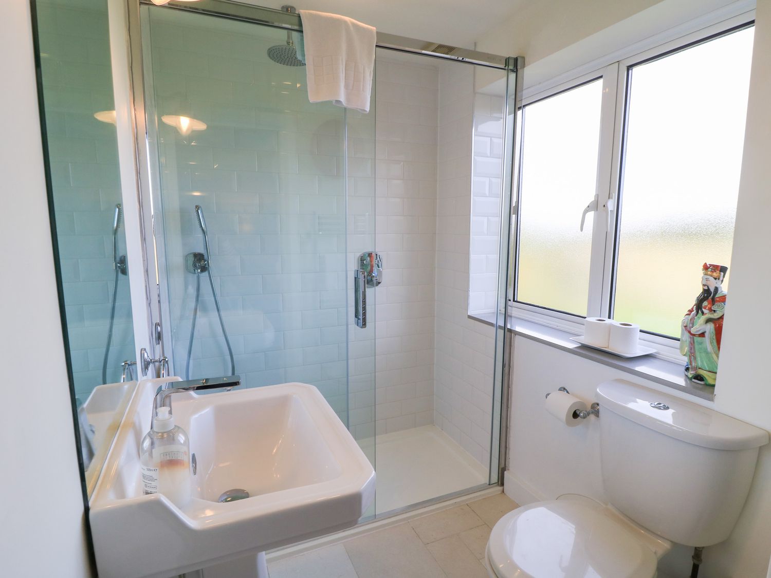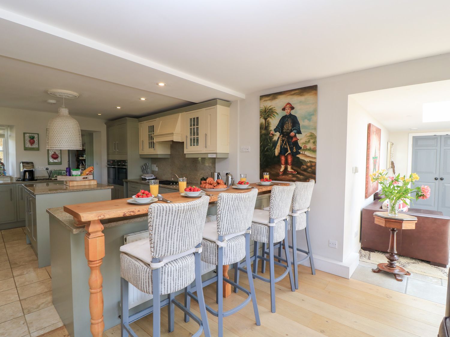 "Due to layout of bedrooms, Fairview Cottage is suitable for 8 adults + 2 children. Four bedrooms: 1 x first floor kingsize double plus en suite bathroom with bath, separate shower, WC and washbasin, 1 x first floor twin which is accessed via bedroom 1 with curtain separation more suitable for children, 2 x first floor king size double both with own en suite shower room with shower, WC and washbasin. 1 x ground floor king size double with en suite bathroom with roll top bath, separate shower and double vanity basins. Ground floor cloakroom with WC and washbasin. Kitchen. Living area. Utility."
