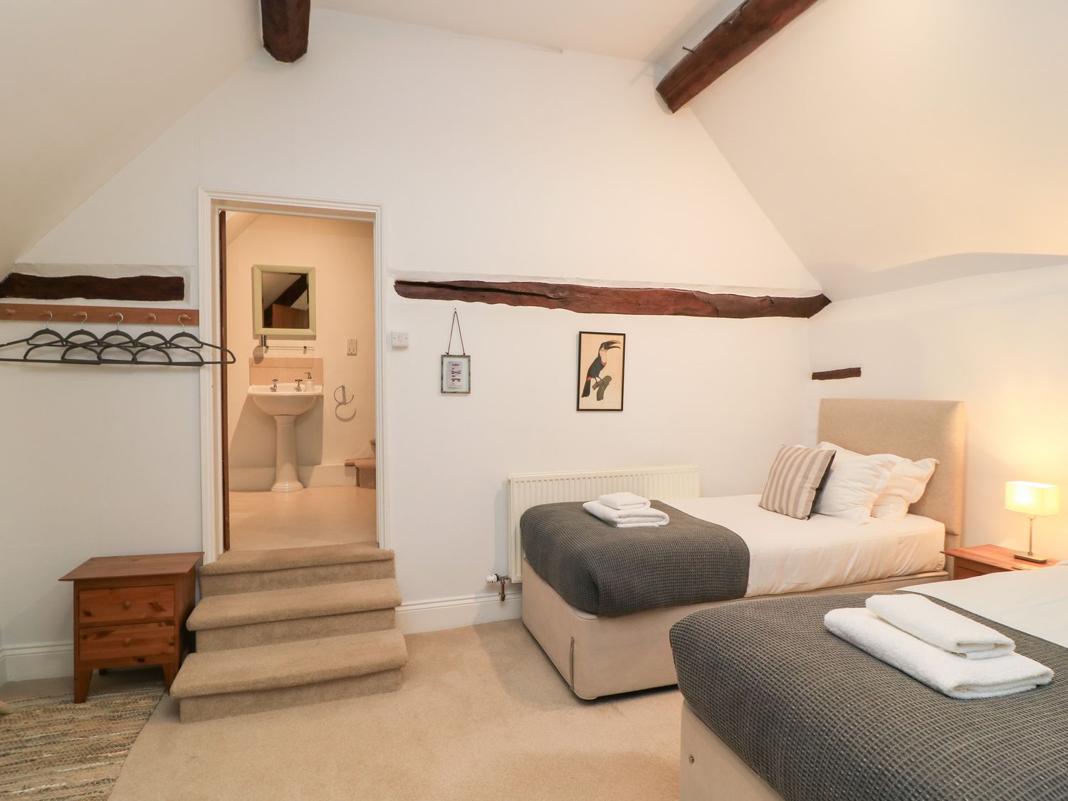 "Three bedrooms: 1 x super-king-size (zip/link, can be twin on request), 1 x king-size, 1 x twin (zip/link, can be super-king-size on request). Bathroom with bath, walk-in shower, basin and WC. Shower room with walk-in shower, basin and WC. Cloakroom with basin and WC. Kitchen. Utility. Living/dining room with woodburning stove. Snug"