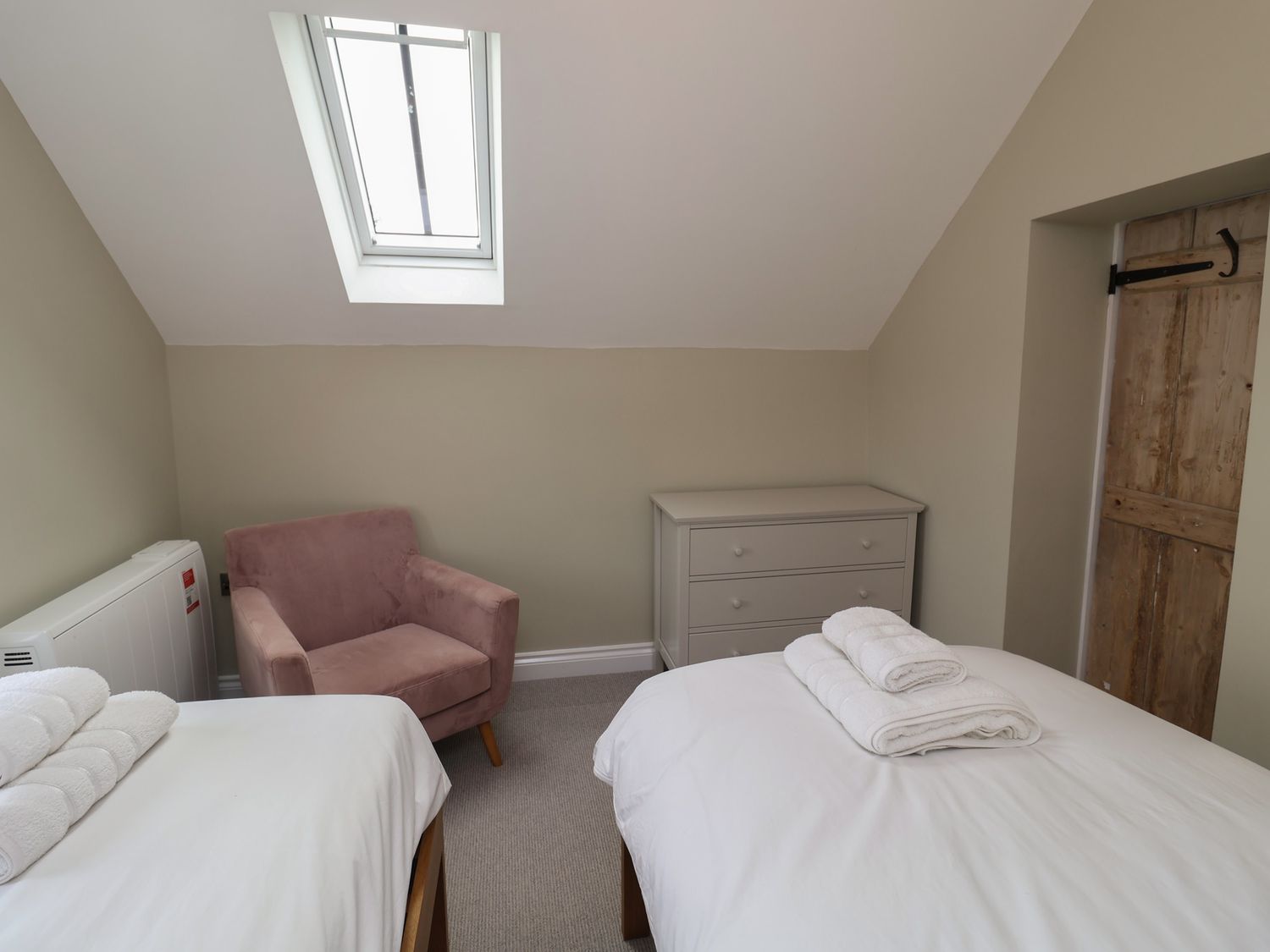 "Two bedrooms: 1 x double, 1 x twin. First-floor shower room with walk-in shower, basin, and WC. Ground-floor shower room with walk-in shower, basin, heated towel rail and WC. Kitchen. Dining room. Sitting room with woodburning stove, Sofa bed for occasional use.