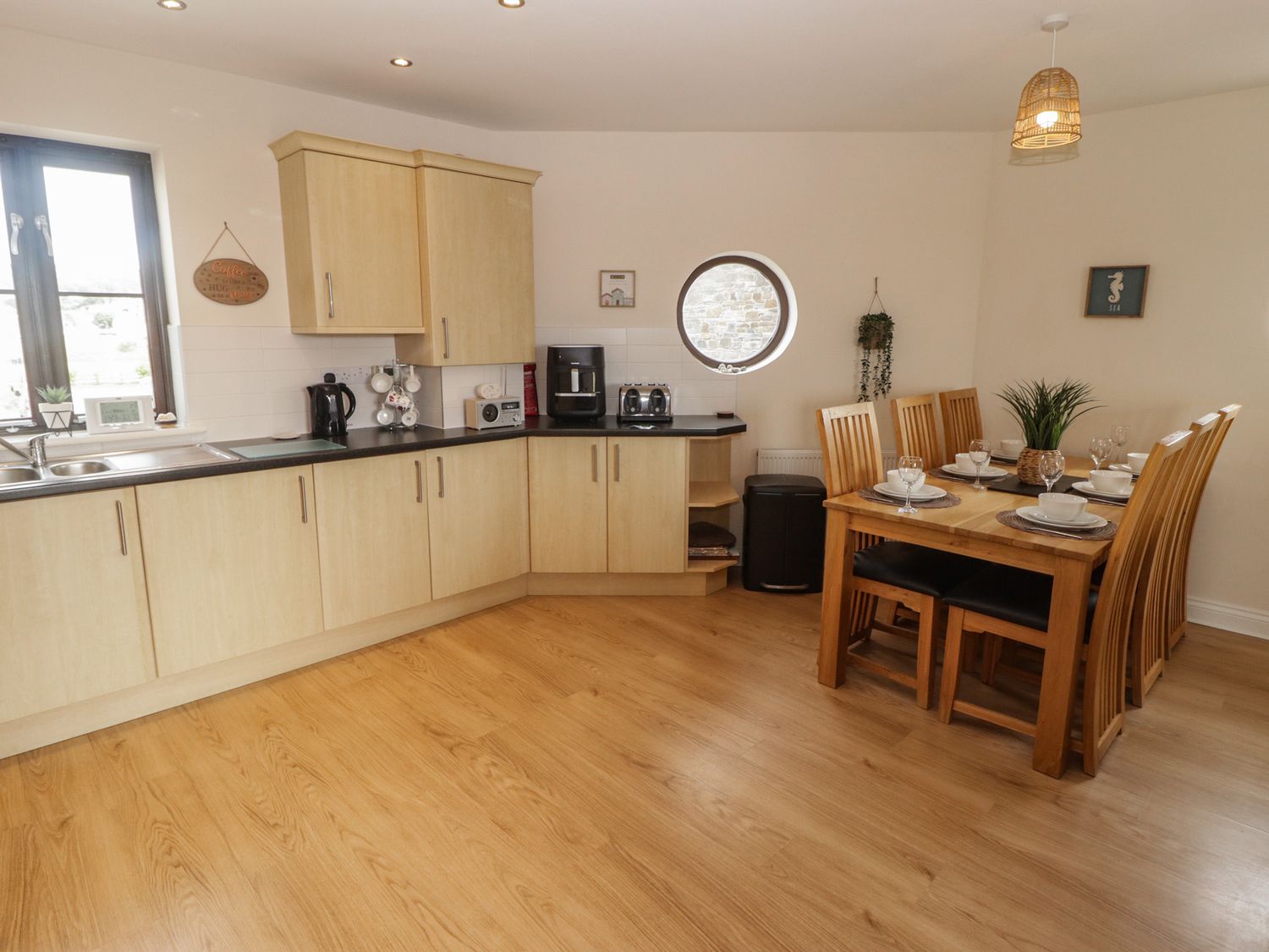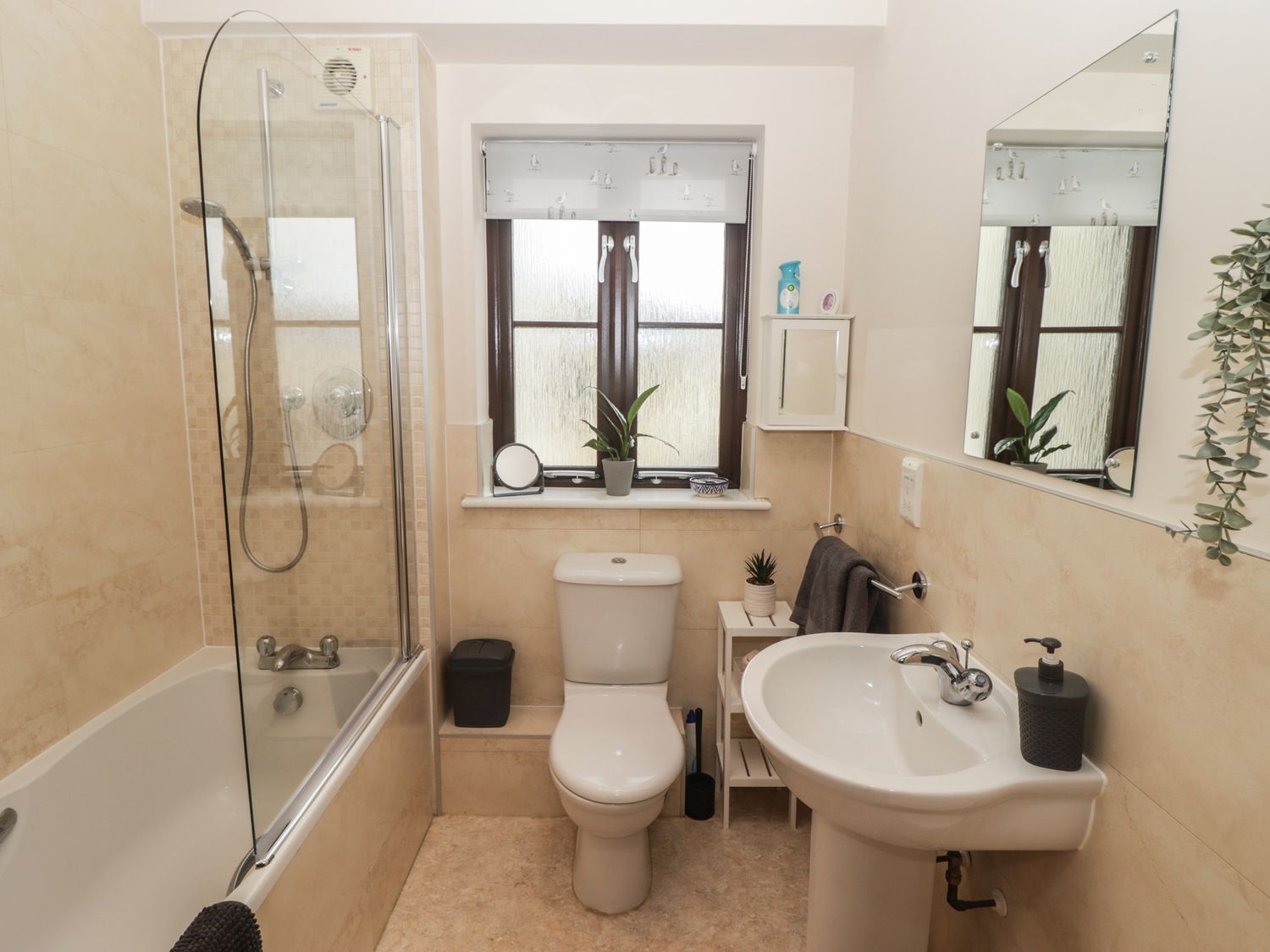"Awel y M+¦r, a first-floor apartment, consists of a kitchen with fridge/freezer, electric oven, gas hob, washing machine, microwave, kettle, toaster, dual drawer airfryer and Tassimo coffee machine, a dining room with dining seating, and a sitting room with Smart TV. The bedrooms consist of a double and a twin with an en-suite. There is a bathroom with a bath, a shower over, and basin and a WC. WiFi, fuel, power, bed linen, and towels are included in the rent. Outside, there is a balcony with furniture and a designated parking space for one car. One well-behaved pet is welcome. Sorry, no smoking. Enjoy a refreshing break with your loved ones at Awel y M+¦r. This property has a Good Housekeeping bond of 50 GBP. "