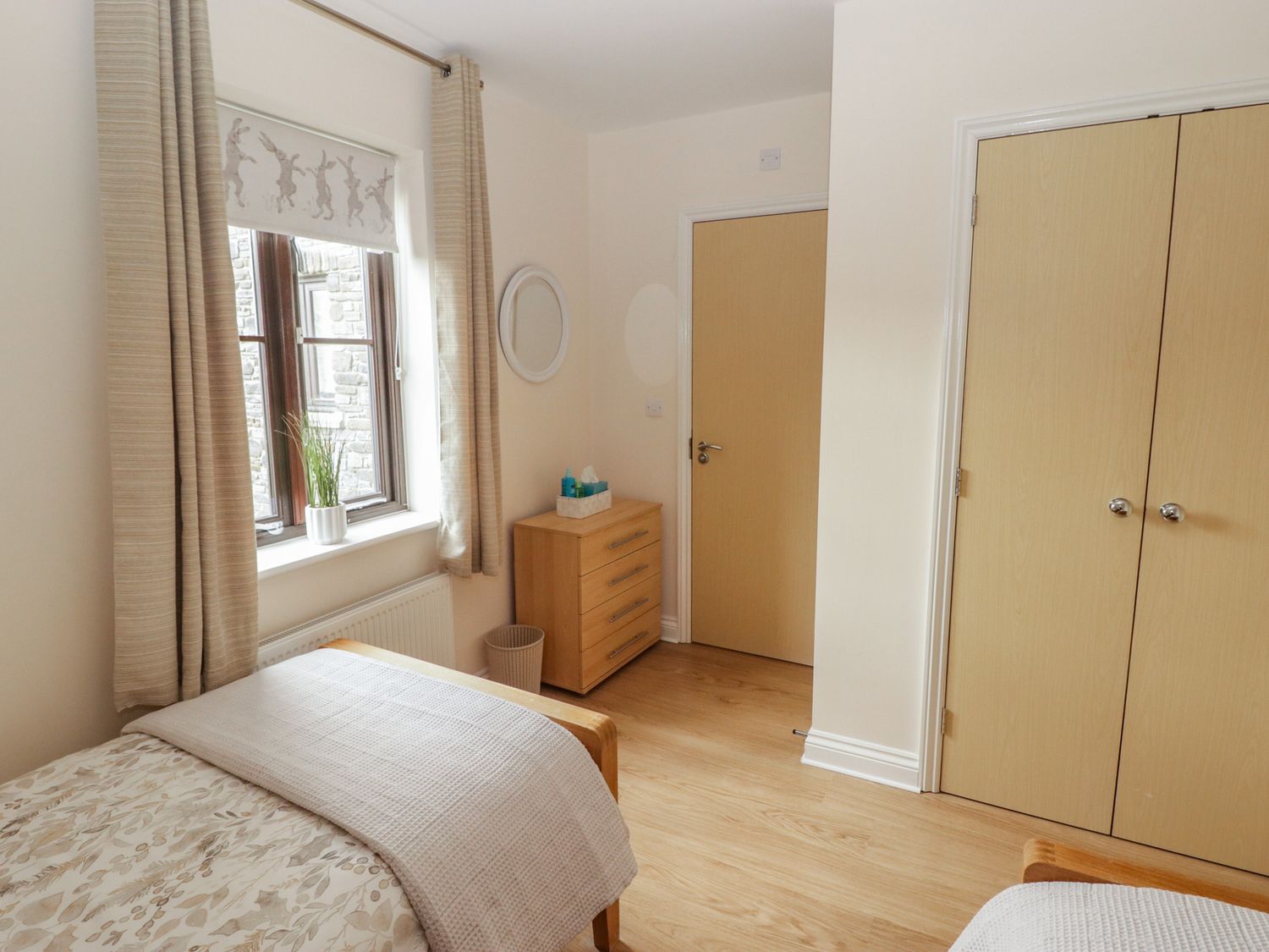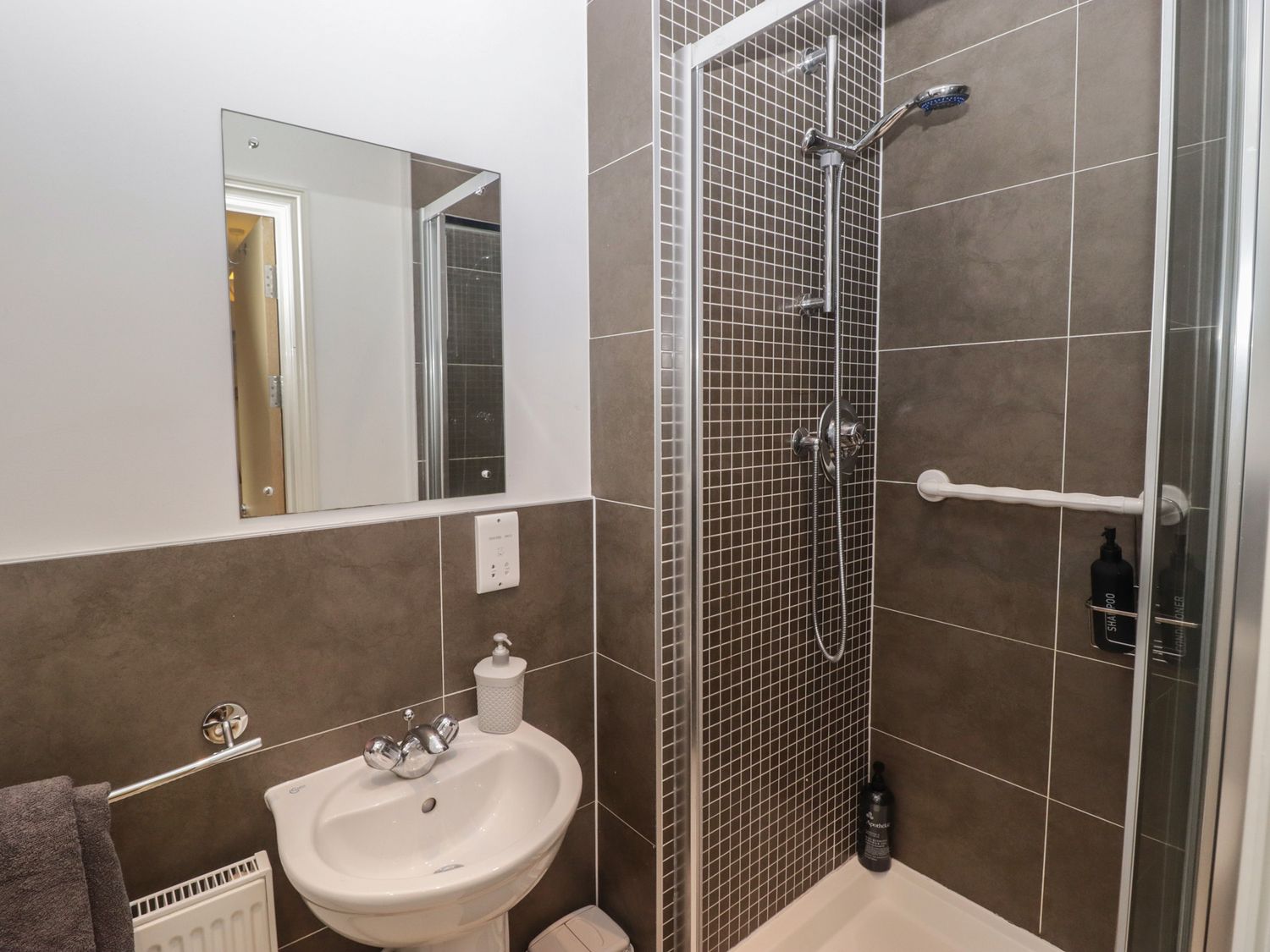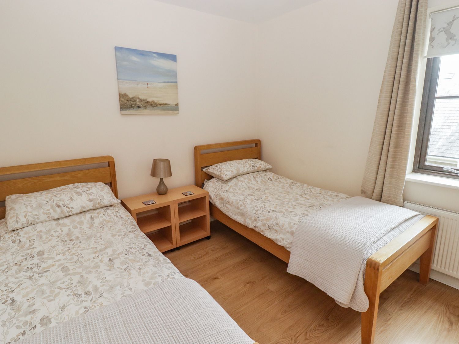 "First-floor apartment. Two bedrooms: 1 x double with TV, 1 x twin with en-suite with walk-in shower and basin and WC. Bathroom with bath, shower over, basin, WC. Open-plan living space with kitchen, dining area and sitting area"
