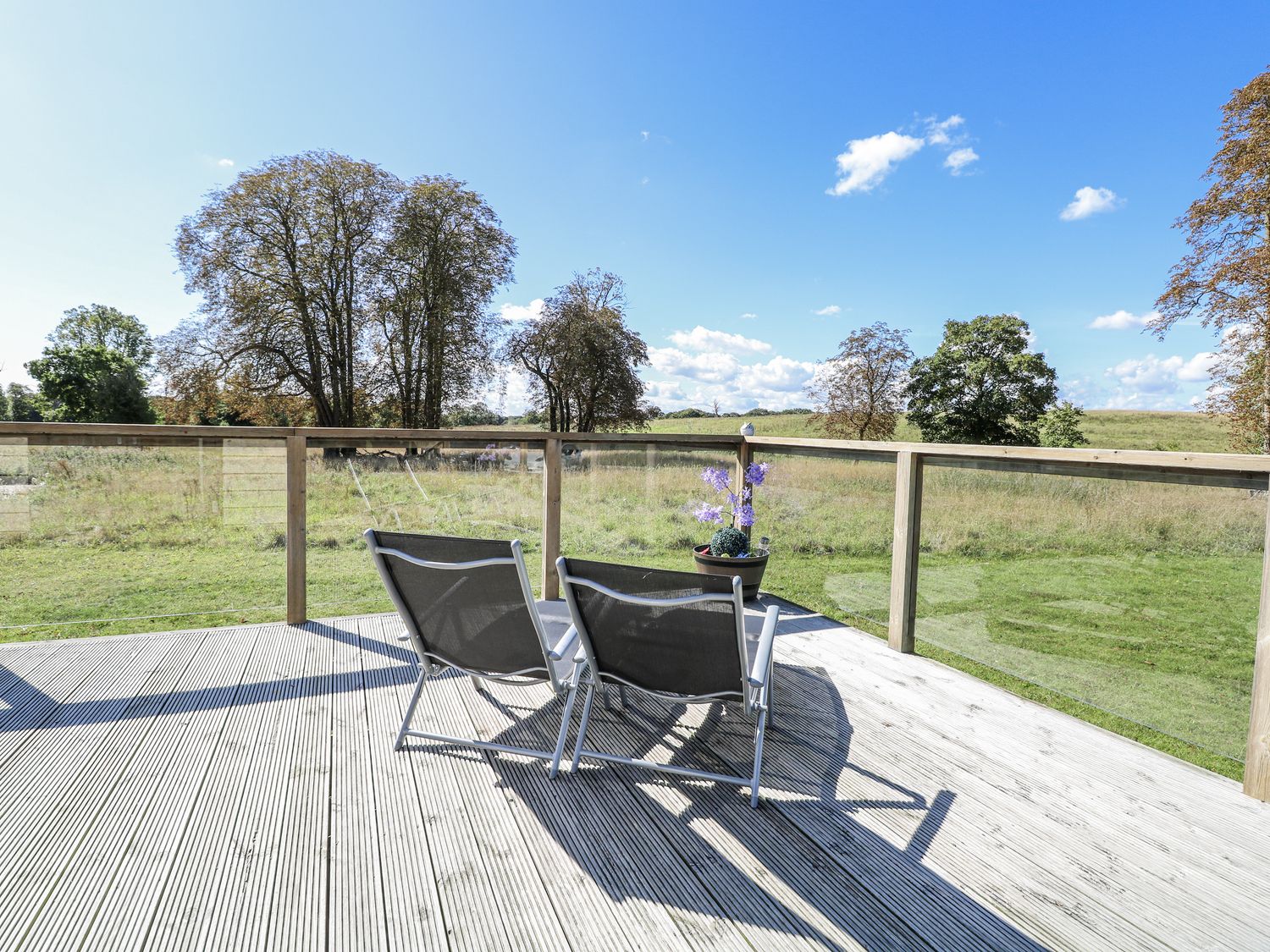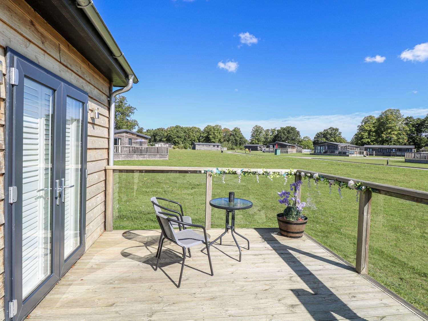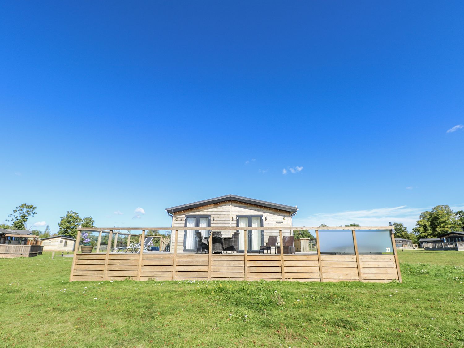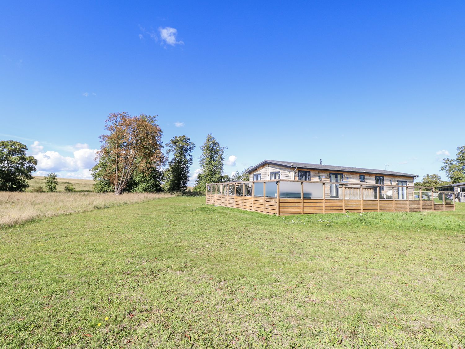"Angel Lodge - No. 27, a single-storey cottage consists of an open-plan living space including a kitchen with oven, hob, microwave, fridge/freezer, dishwasher, air fryer, wine chiller, and breakfast bar, a utility with washing machine, a dining room, a sitting room with TV and electric fire, and a cloakroom. The bedrooms consist of two doubles and twin, serviced by a bathroom. WiFi, fuel, power, bed linen, and towels included in the rent. Outside, there is an enclosed wraparound decking with furniture and hot tub, and ample off-road parking available. Two well-behaved pets welcome, but sorry, no smoking. Shop 2.4 miles, pub 0.9 miles. Enjoy a splendid retreat at Angel Lodge - No. 27. Note: Although this is a single-storey property, there are steps up to entrance. Note: Step down from kitchen to living/dining area, please take care. Note: A few steps down into master bedroom and a few steps down on the decking outside. Monday and Friday changeover days only, please contact our call centre first if you wish for the changeover/check in to be on another day "