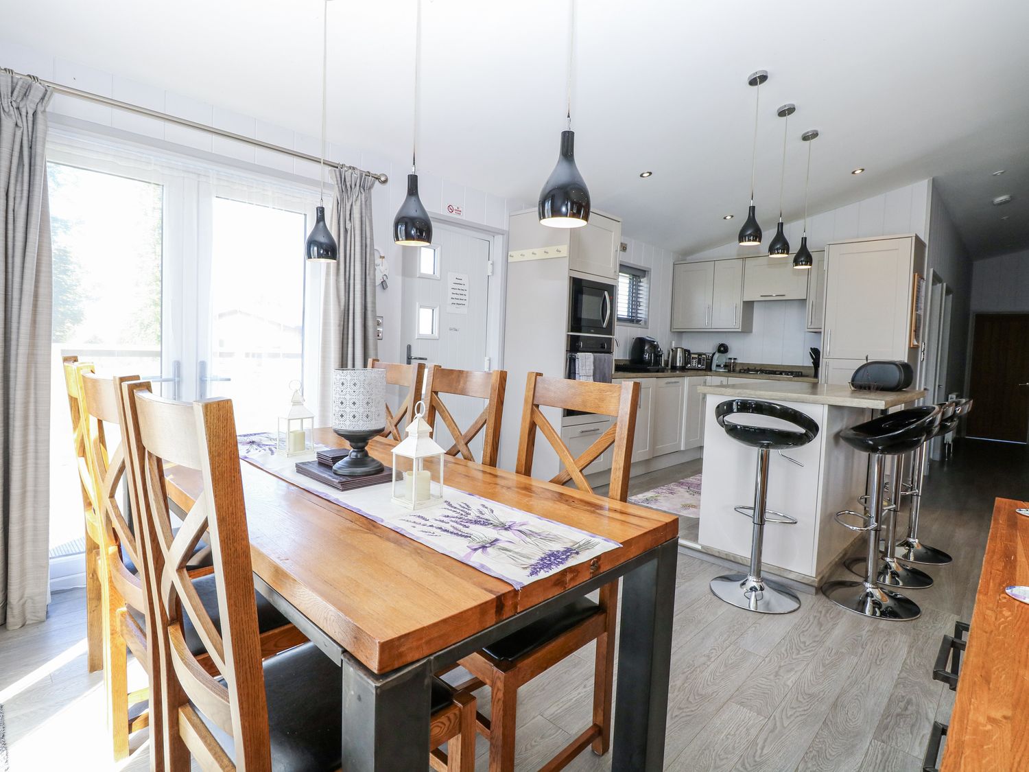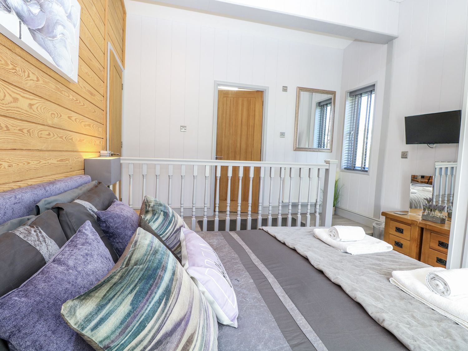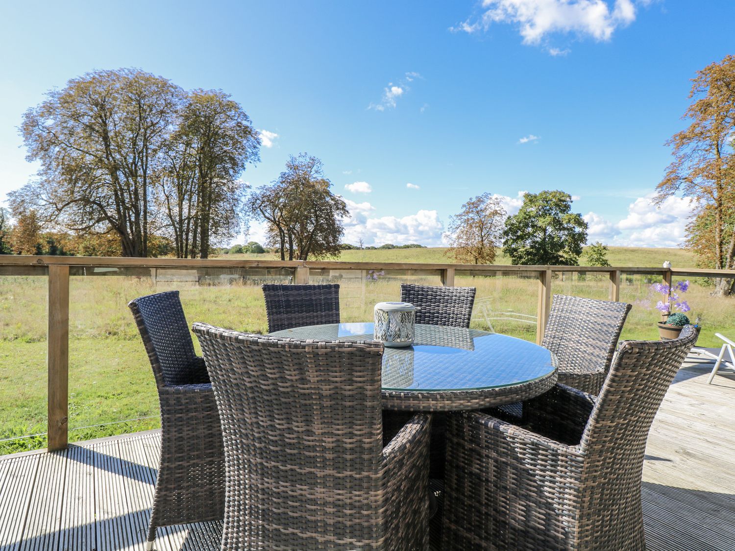 "Angel Lodge - No. 27, a single-storey cottage consists of an open-plan living space including a kitchen with oven, hob, microwave, fridge/freezer, dishwasher, air fryer, wine chiller, and breakfast bar, a utility with washing machine, a dining room, a sitting room with TV and electric fire, and a cloakroom. The bedrooms consist of two doubles and twin, serviced by a bathroom. WiFi, fuel, power, bed linen, and towels included in the rent. Outside, there is an enclosed wraparound decking with furniture and hot tub, and ample off-road parking available. Two well-behaved pets welcome, but sorry, no smoking. Shop 2.4 miles, pub 0.9 miles. Enjoy a splendid retreat at Angel Lodge - No. 27. Note: Although this is a single-storey property, there are steps up to entrance. Note: Step down from kitchen to living/dining area, please take care. Note: A few steps down into master bedroom and a few steps down on the decking outside. Monday and Friday changeover days only, please contact our call centre first if you wish for the changeover/check in to be on another day "