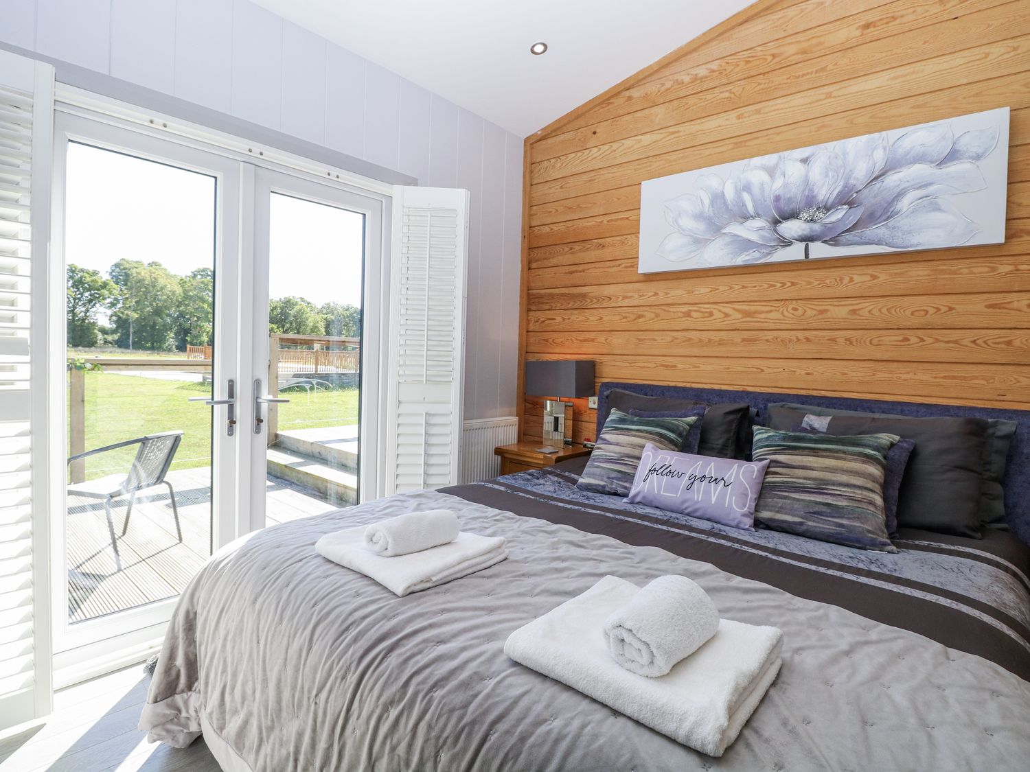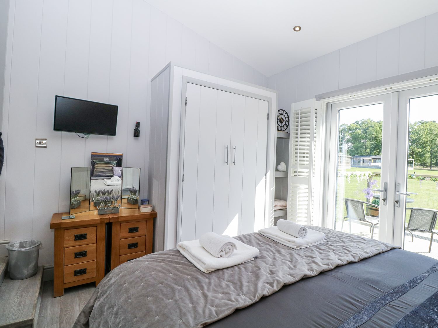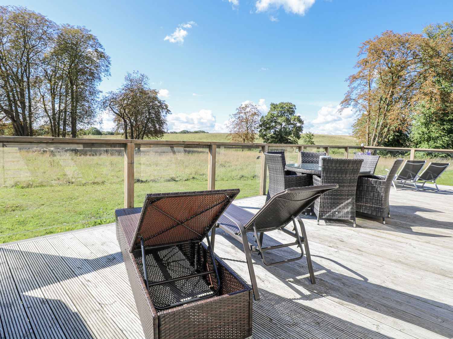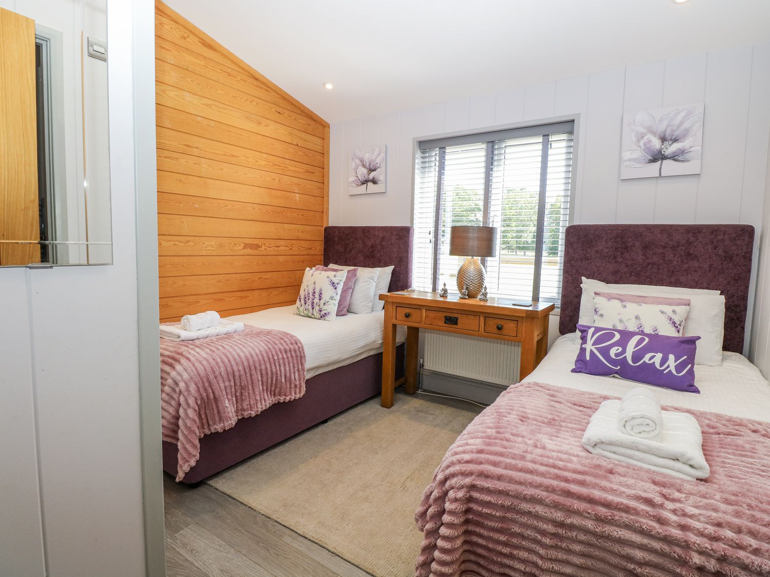 "Angel Lodge - No. 27, a single-storey cottage consists of an open-plan living space including a kitchen with oven, hob, microwave, fridge/freezer, dishwasher, air fryer, wine chiller, and breakfast bar, a utility with washing machine, a dining room, a sitting room with TV and electric fire, and a cloakroom. The bedrooms consist of two doubles and twin, serviced by a bathroom. WiFi, fuel, power, bed linen, and towels included in the rent. Outside, there is an enclosed wraparound decking with furniture and hot tub, and ample off-road parking available. Two well-behaved pets welcome, but sorry, no smoking. Shop 2.4 miles, pub 0.9 miles. Enjoy a splendid retreat at Angel Lodge - No. 27. Note: Although this is a single-storey property, there are steps up to entrance. Note: Step down from kitchen to living/dining area, please take care. Note: A few steps down into master bedroom and a few steps down on the decking outside. Monday and Friday changeover days only, please contact our call centre first if you wish for the changeover/check in to be on another day "