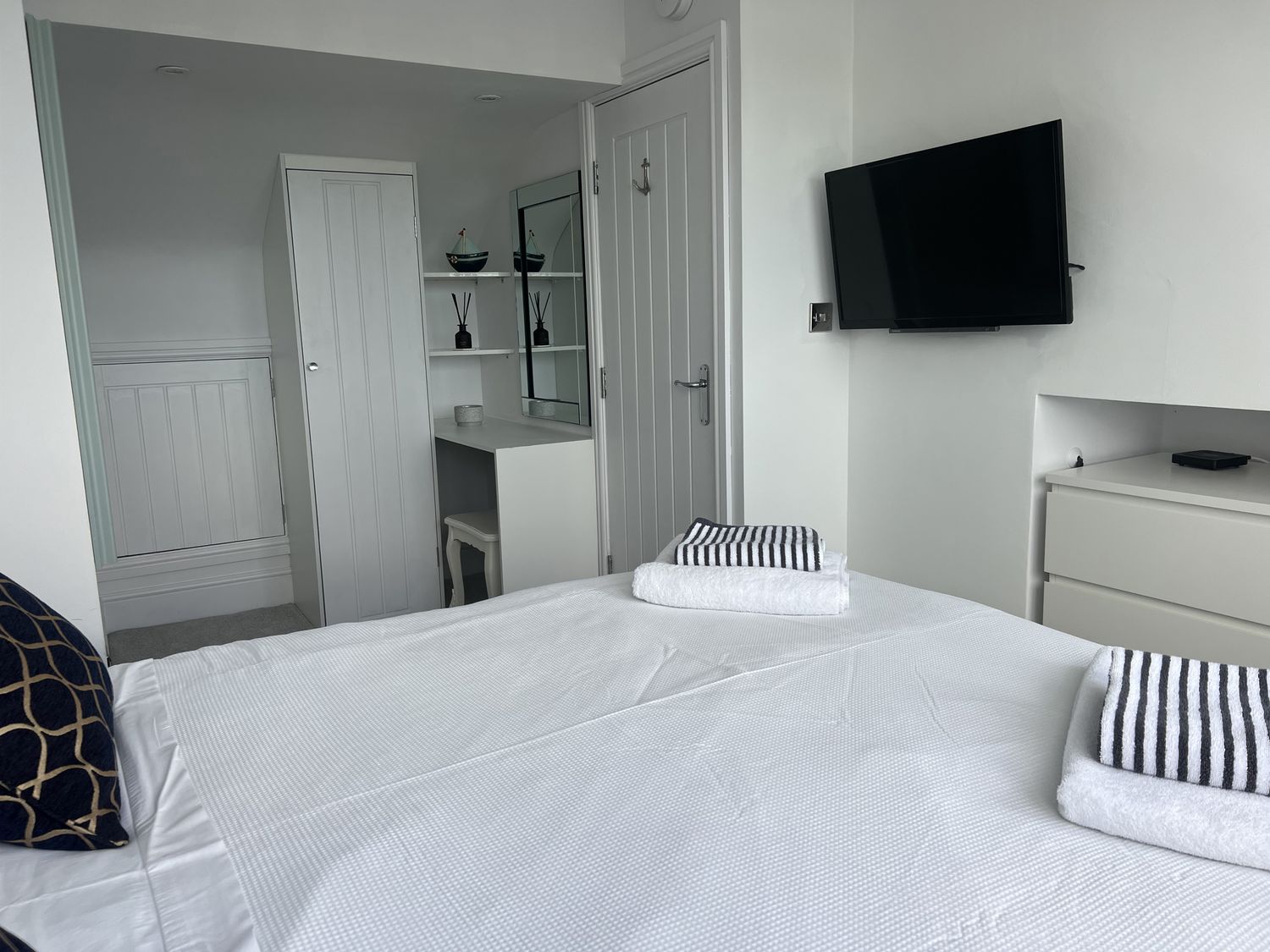 "Over three floors. Ground floor master bedroom with king size bed, sofa, loungers, TV, large bathroom and direct access to the deck. Ground floor twin bedroom. First-floor open-plan living space with sitting area, electric fire & smart TV. Well stocked kitchen & dining area. Spacious 1st floor balcony offering spectacular views and room to entertain. 2nd floor bedroom with king size bed & en-suite bathroom providing a sense of privacy from the rest of the house & again superb views of the Menai Strait