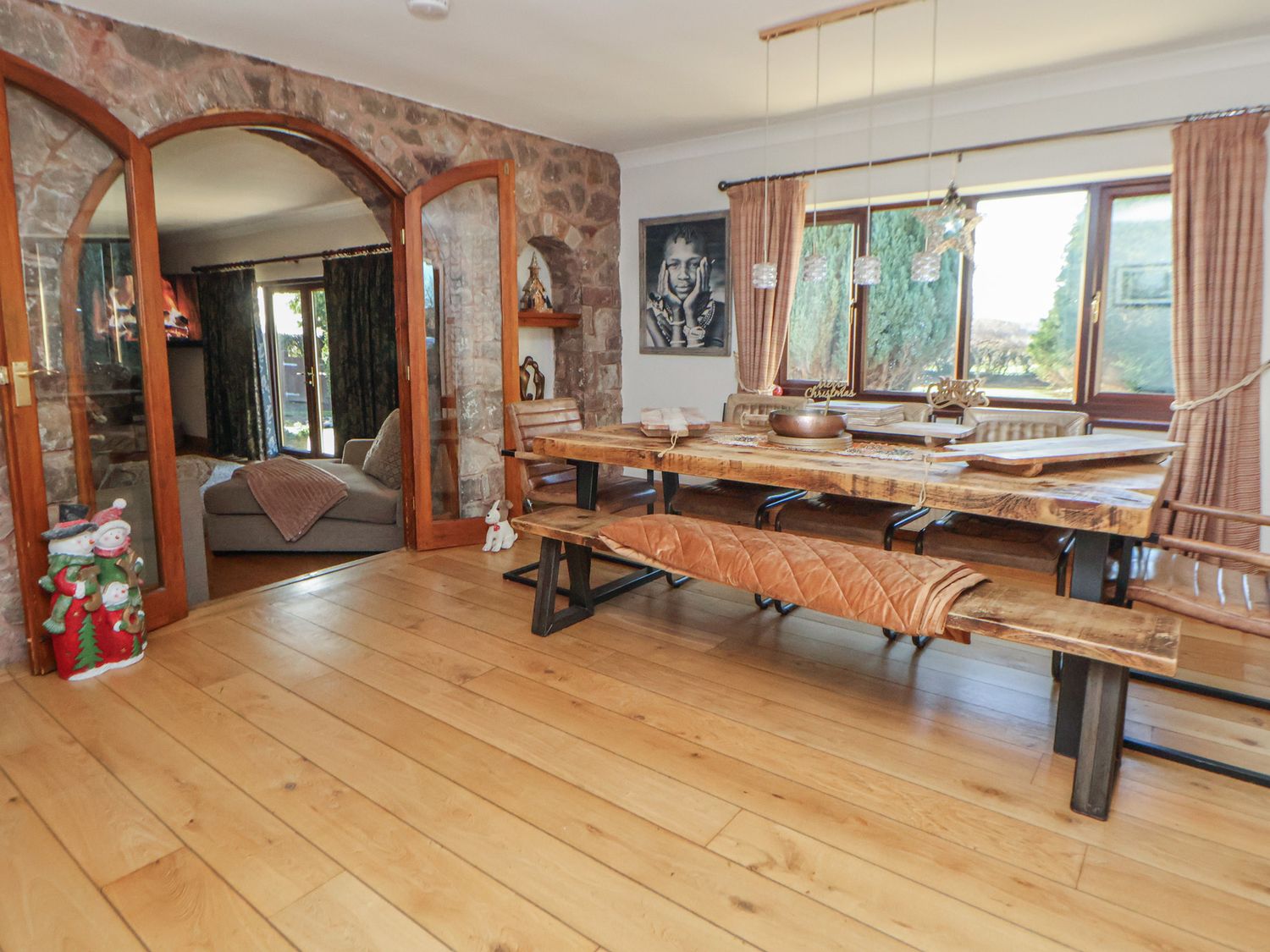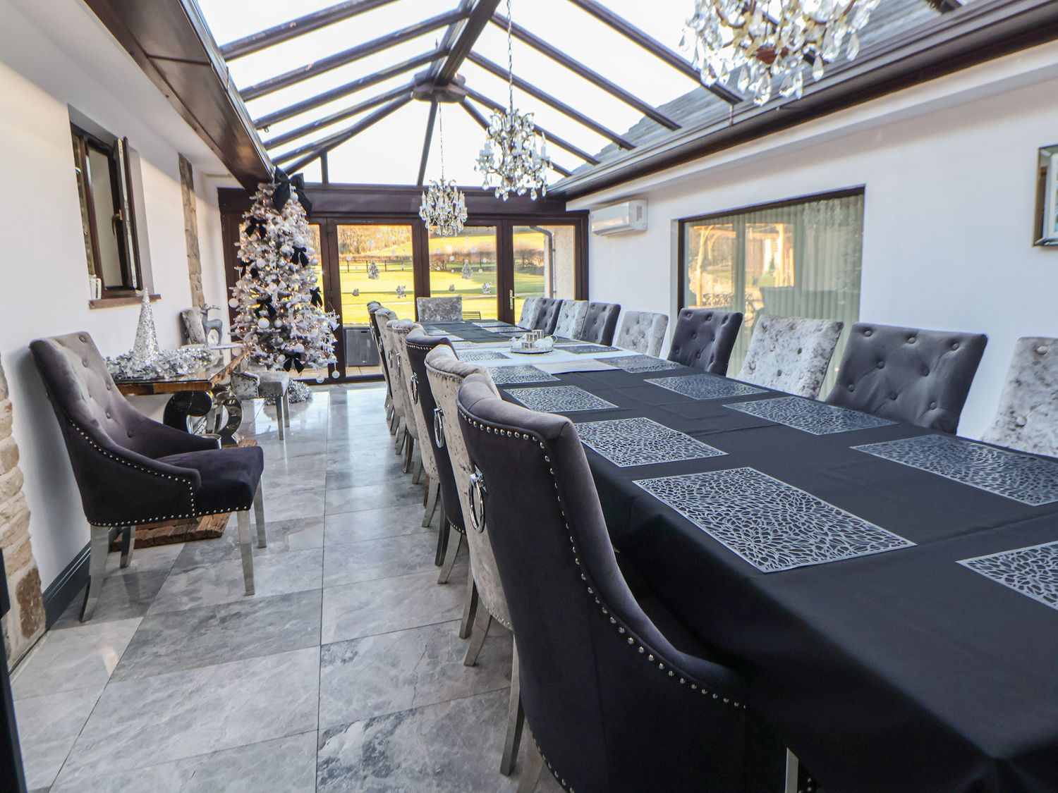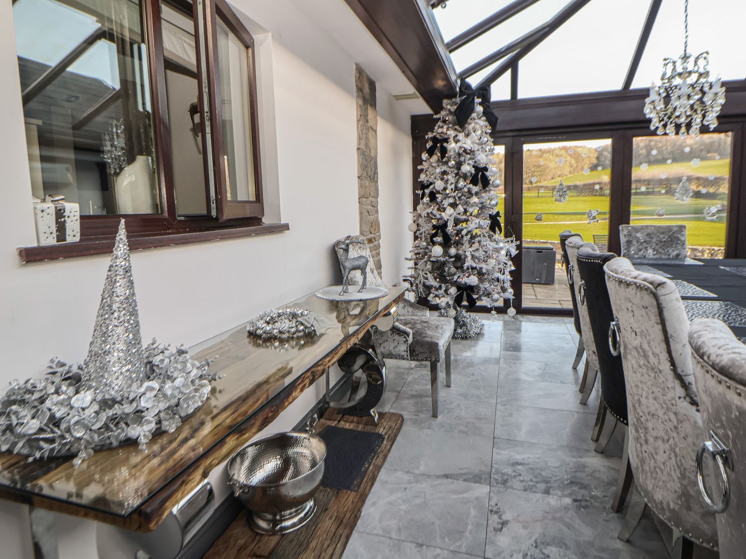"Brookway Lodge is a single-storey home with eight bedrooms, three of which have en-suites, made up of zip/links and family room for flexibility. There is also a bathroom and a wet room. The living areas include a kitchen, utility, dining room, sitting room with a woodburning stove, a snug, games room, breakfast room, media room, indoor heated pool room and steam room. Appliances include an electric Range cooker with oven and hobs, microwave, American-style fridge/freezer, washing machine, tumble dryer, 2 x dishwashers, wine cooler. For entertainment there are eight TVs with Sky Multiroom, Apple TV and Netflix, DVD, BOSE dock system with AirPlay and surround sound speakers, PlayStation 3 with games, and WiFi. A travel cot and highchair also available. Outside there is off-road parking with a detached garage, a private, enclosed garden with barbecue, electric sun awnings, patio heaters, activity centre, trampoline and six-seater Jacuzzi hot tub with waterfall function, waterproof iPod dock and Bluetooth sound system. Three well-behaved pets are welcome. Enjoy luxury at Brookway Lodge. Note: This property has a Good Housekeeping bond of -ú500."