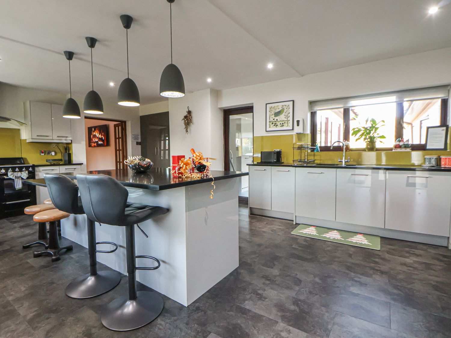 "Single-storey. Eight bedrooms: 1 x super-king-size with Sky TV and en-suite walk-in shower, basin and WC. 1 x super-king-size (zip/link can be twin on request) with Smart TV and en-suite walk-in shower, basin and WC. 2 x super-king-size (zip/link can be twin on request). 1 x twin (zip/link can be super-king-size on request) with Smart TV. 1 x triple bunk with TV. 1 x family room with super-king-size (zip/link can be twin on request) and adult bunk with Smart TV and en-suite walk-in shower, basin, bidet and WC. 1 x family room with double and triple bunk. Bathroom with bath, basin and WC. Wet room with walk-in shower, basin and WC. Kitchen. Utility. Dining room. Sitting room with wood burning stove. Snug. Games room with pool table, table tennis, darts, 75ÔÇØ cinema TV. Full size bar. Breakfast room. Media room. Pool room"