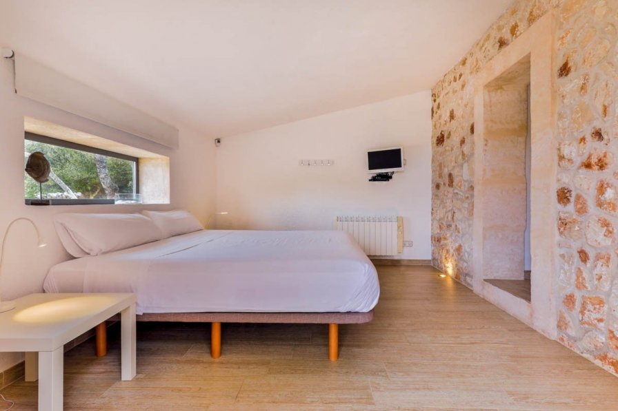 A Mediterranean paradise on the hillside, Villa Salmon Calo is a thoroughly contemporary beauty with a rustic, charming style both inside and out! These interiors are simply spectacular! An L shaped sofa stretches before the TV and large dining table, all in a dazzling white that shimmers in the sunshine which streams in through the vast patio doors. White beams stretch overhead, standing out against the light wood ceiling. The kitchen extends from this open-plan space, and has a totally modern, fully-equipped set-up in a most striking design! Through the stylish archway, you'll find everything you could need for rustling up a delight for the whole group. There are three sublime bedrooms, all on this floor and each as contemporary and luxurious as these living spaces, with even more magnificent attention to detail! Stone interior walls dazzle in the light, as do these wonderful wooden floors, contrasting beautifully with the all-white and cream furnishing! The master bedroom enjoys a large double bed, garden access, a dressing room and of course, its superb ensuite bathroom, with a huge bathtub, a separate walk-in shower and tons of space! The remaining two rooms both have two single beds, which can be prepared as doubles or twins, as you prefer. Both enjoy direct garden access, and one even has its own brilliant ensuite bathroom, while there is an additional bathroom for the remaining room. Stepping outside, you can appreciate the jewel in the crown of this majestic villa. Mature Mediterranean plants and trees encircle every inch, adding vibrancy and warmth to the stunning rustic design. On the veranda, there is a shaded dining area, as well as a large BBQ space so you can spice up mealtimes! Besides this is your immense pool terrace, surrounding the 8 by 5-meter pool with classic roman steps adding a little glitz to this glamorous space. Settle into a lounger for an idyllic sunbathing afternoon – or perch in the shade on one of these comfy sofas. And around the front of the house is the most beautiful alfresco dining spot imaginable, with sea-views for miles and a stunning wooden table! The nearby beaches, including Calo des Moro just 200 meters away, are stunning, with crystal clear waters, soft sand and small bays to explore – and what's more, you can walk to them in minutes, perfect for a morning stroll to start the day! #### Features The Villa Villa Salmon Calo is a rustic style house, nice and comfortable furnished that invites you to relax. The outside of the villa is covered with stone, totally integrated in harmony with the surroundings. There are 3 bedrooms and 3 bathrooms, and it can accommodate up to 6 people Ground Floor - Entrance hall - Living room with satellite TV, wood burning stove & access to the terrace - Dining area for 6 people - Fully equipped kitcehn with ceramic glass cooktop, microwave, toaster, dishwasher, electric oven, Kettle & fridge/freezer - Bathroom with walk-in shower - Master bedroom with double bed (180x190cm), access to the patio & en-suite bathroom with bathtub & walk-in shower - Bedroom with two single beds (90x190cm), access to the patio & en-suite bathroom with walk-in shower - Bedroom with two single beds (90x190cm) & access to the patio Exterior Grounds - Swimming pool (8x5m, depth min. 0.90m & depth max. 1.80m) - Outdoor dining area - Chill out area - Six sun loungers - Brick built barbecue - Parking on the plot - Large garden & patio area Additional Facilities - Wi-Fi connection - Air conditioning (extra cost) - Heating (extra cost) - Washing machine - Iron & board - Cot & high chair Tourist license number: VTV 1404 #### Location With a stay in Villa Salmon, you will find all your needs are met right on the doorstep! For local amenities, the quaint village of Cala Llombards is 1.6km away. While its magnificent beach is just 2.3km away, and the nearest town of Santanyi is just over 6km from the villa, with a vibrant array of bars, restaurants and shops. The tranquillity of the property is incredible when you consider that it is so close to all these amenities, and such a short journey to the coast, with all the beauty and fun which awaits you here! Indeed, the beach cove of Calo des Moro is just 200 meters from your front door! Such a family-friendly region, there is something for everyone here – from a variety of water sports on offer along the beaches and a golf course nearby, to boat trips to the many incredible hidden gems along the coastline. This is truly an ideal location for a romantic getaway, a fun-filled group trip or an active family holiday – with amazing cycling, kayaking, hiking, and many more activities on offer! These are particularly good during the winter when the island calms down a little but retains its fabulous weather. Of course, no Spanish island would be complete without a fine array of wine and seafood on offer, and Mallorca is absolutely no different, with a thriving culinary scene.