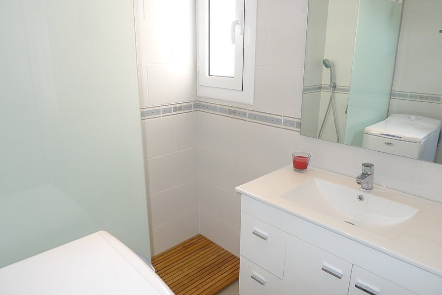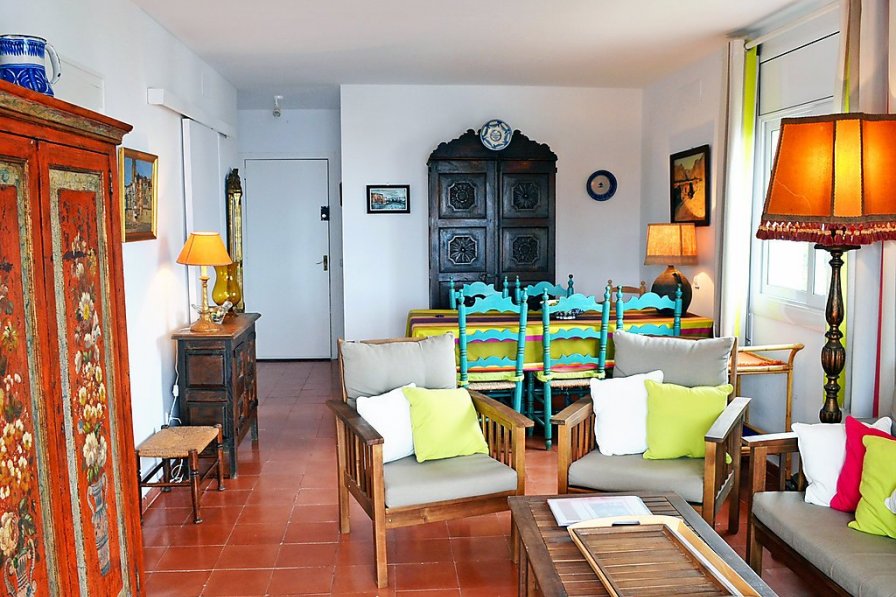 "Sta. **Inside** * Agata", 4-room apartment 74 m2 on 2nd floor * Comfortable and cosy furnishings: living/dining room with TV * Exit to the terrace * 1 room with 1 french bed (150 cm, length 190 cm) * 1 room with 2 beds (90 cm, length 180 cm) * Exit to the terrace * 1 room with 1 x 2 bunk beds (90 cm, length 190 cm) * Kitchen (oven, dishwasher, 4 induction hot plates, microwave, electric coffee machine) * Shower, separate WC * Boiler (100 litres) * Terrace 7 m2 * Terrace furniture * Very beautiful view of the sea * Facilities: washing machine, children's high chair, baby cot * Internet (WiFi, free) * Reserved parking (roofed) * Please note: suitable for families * TV only ES * No lift * HUTG014721 **Outside** * Sant Roc: Cosy apartment block "Santa Agata", 3 storeys, surrounded by trees * In a quiet, sunny position, excellent location: right in the centre but still quiet, 50 m from the sea, 300 m from the beach * For shared use: well-kept terraced garden * In the house: WiFi * Roofed, parking at the house * Supermarket, restaurant, bar 150 m, bus stop 1 km, railway station "Flaca" 30 km, sandy beach "Port Pelegri" 300 m, swimming bay 50 m * Golf course 15 km, tennis 3 km, minigolf 2 km, children's playground 10 m * Nearby attractions: Water park 19 km, Jardin Botanico del Cap Roig 1 km