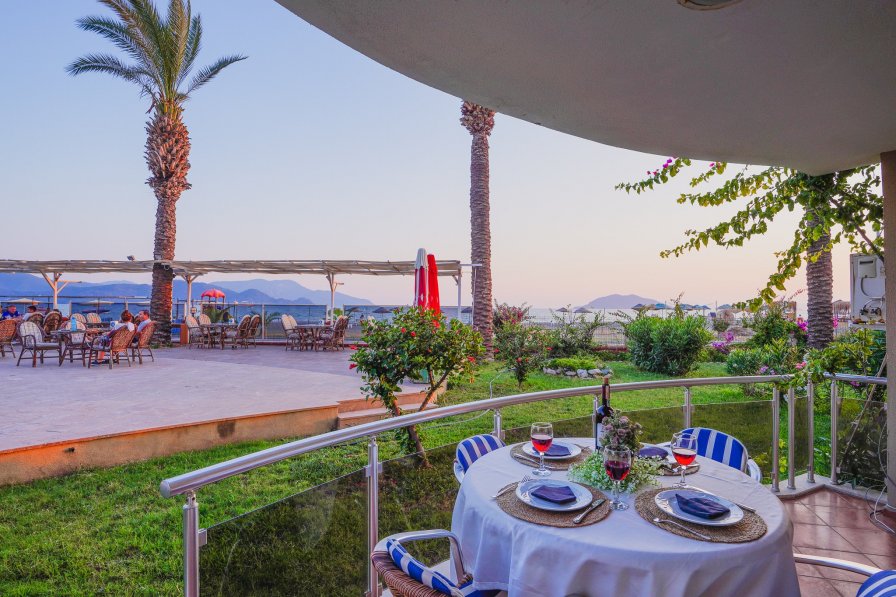 Sunset Beach Club is situated on the beachfront and it is just a 10-minute walk to Calis promenade where you will find an array of shops, restaurants & cafés start at 500 meters from the complex and goes further 500 meters. The main promenade at Calis beach boasts lovely views across the sea to the islands, mountains and hills in the distance.