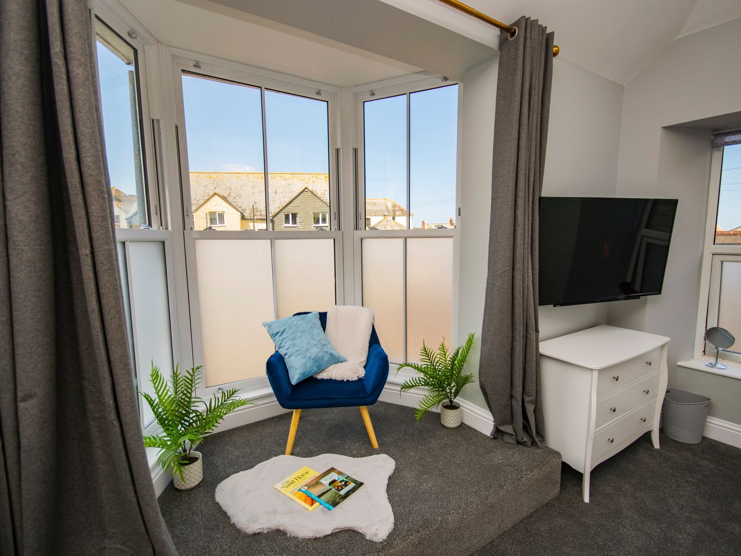 "The living are in the property is an open-plan space with a kitchen equipped with an electric oven and induction hob, microwave, fridge/freezer and washer/dryer, a breakfast bar for two, and a sitting area. There is one super-king-size zip/link bedroom with a Smart TV with Netflix and an en-suite shower room. Outside, there is a balcony with furniture and roadside parking. Within 0.2 miles, you will find a shop, and within 0.1 miles, a pub. Please note that this is a pet-free and non-smoking property. WiFi, fuel, power, bed linen and towels are all included in the price. Enjoy a romantic holiday in Cornwall with Daniel Chambers as your base. Note: Children are not allowed at this property. Note:there is a Good Housekeeping Bond of 250GBP"