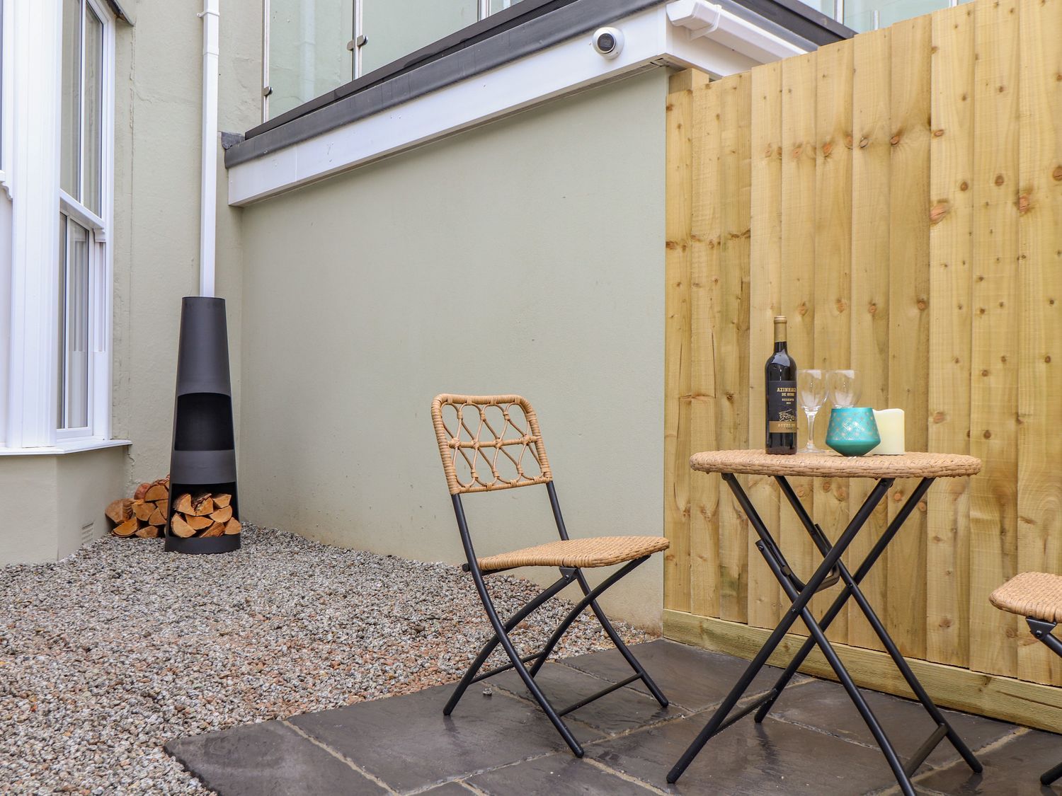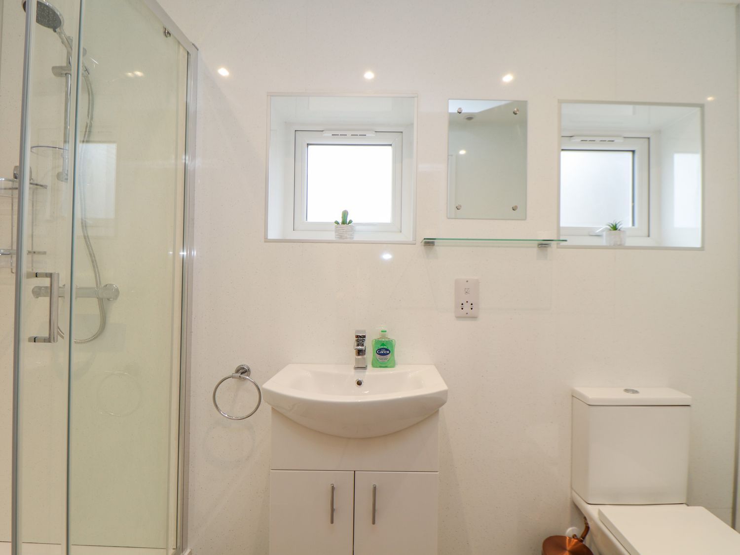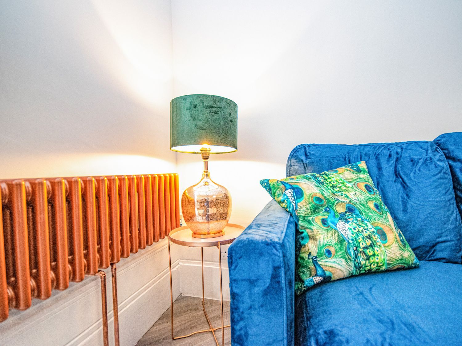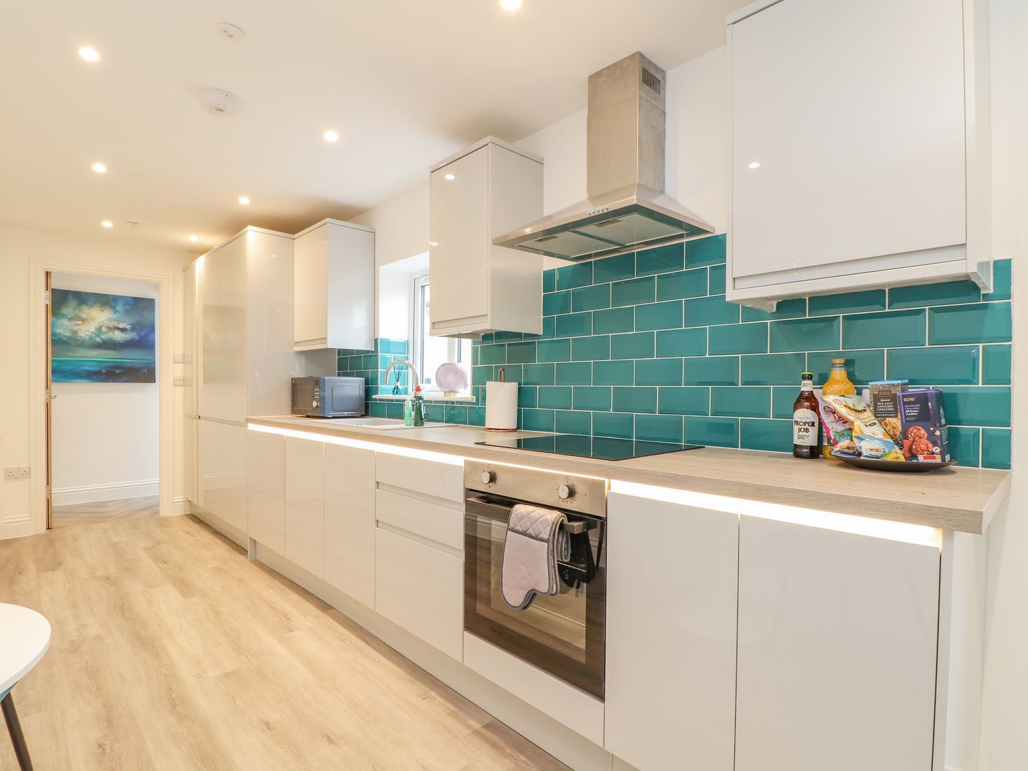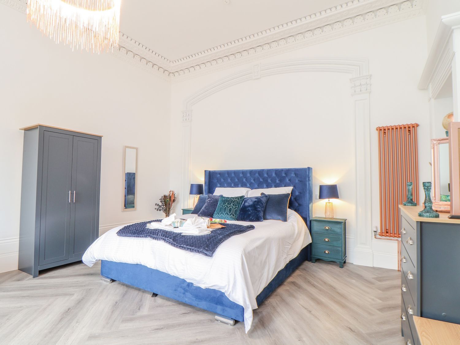 "Ground-floor apartment. One super-king-size bed with free-standing bath and Smart TV. Shower room with walk-in shower, basin, heated towel rail and WC. Kitchen/diner"