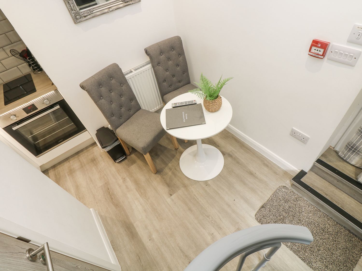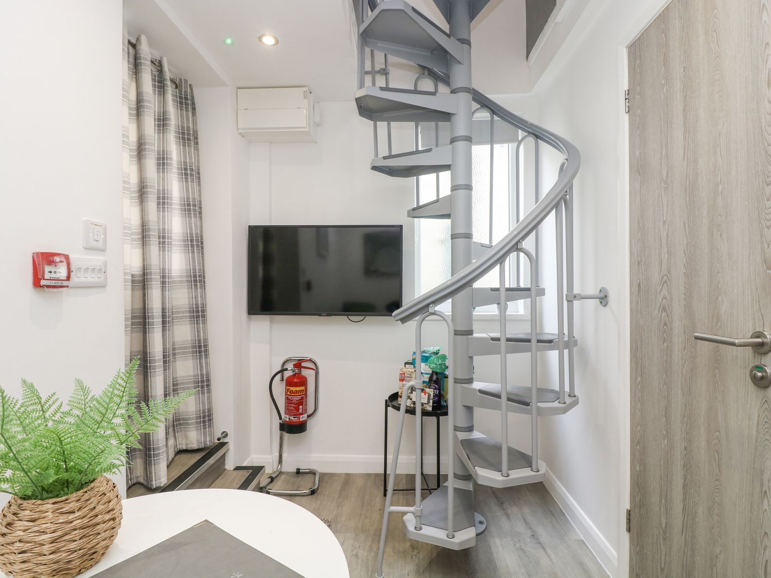"Small duplex apartment. One double bedroom with Smart TV. Ground-floor shower room with shower, basin, heated towel rail and WC. Small open plan space with kitchen and dining area with Smart TV."