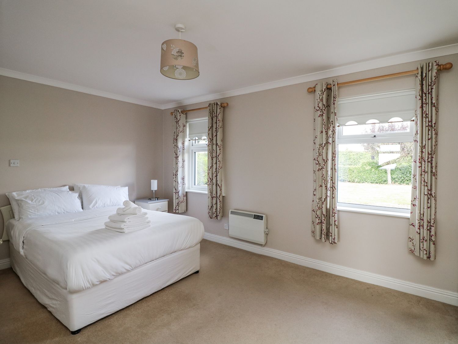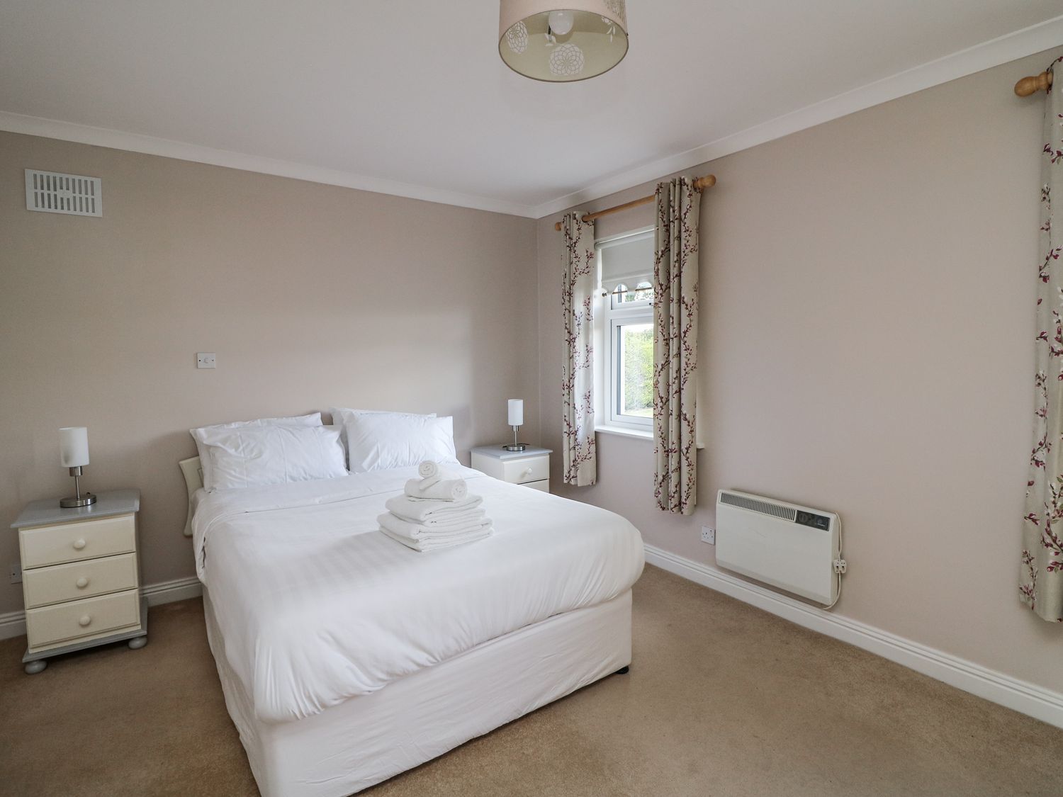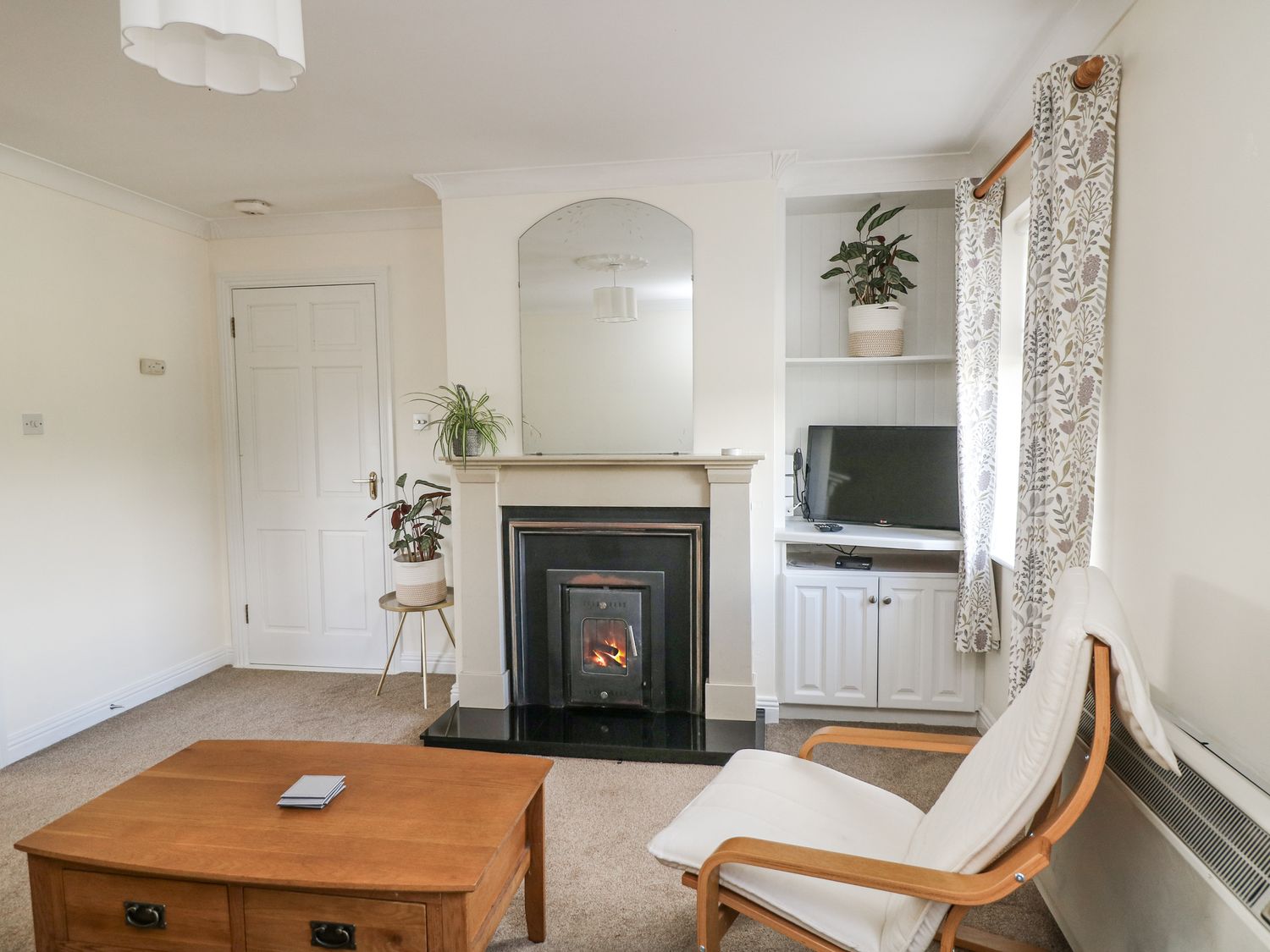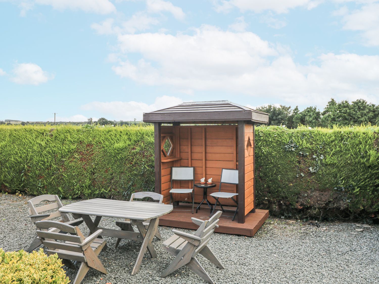 "Single-storey. Two bedrooms: 1 x double, 1 x family room with double and single. Shower room with walk-in shower, basin, WC. Utility. Open-plan living space with kitchen, dining area, and sitting area with woodburning stove"