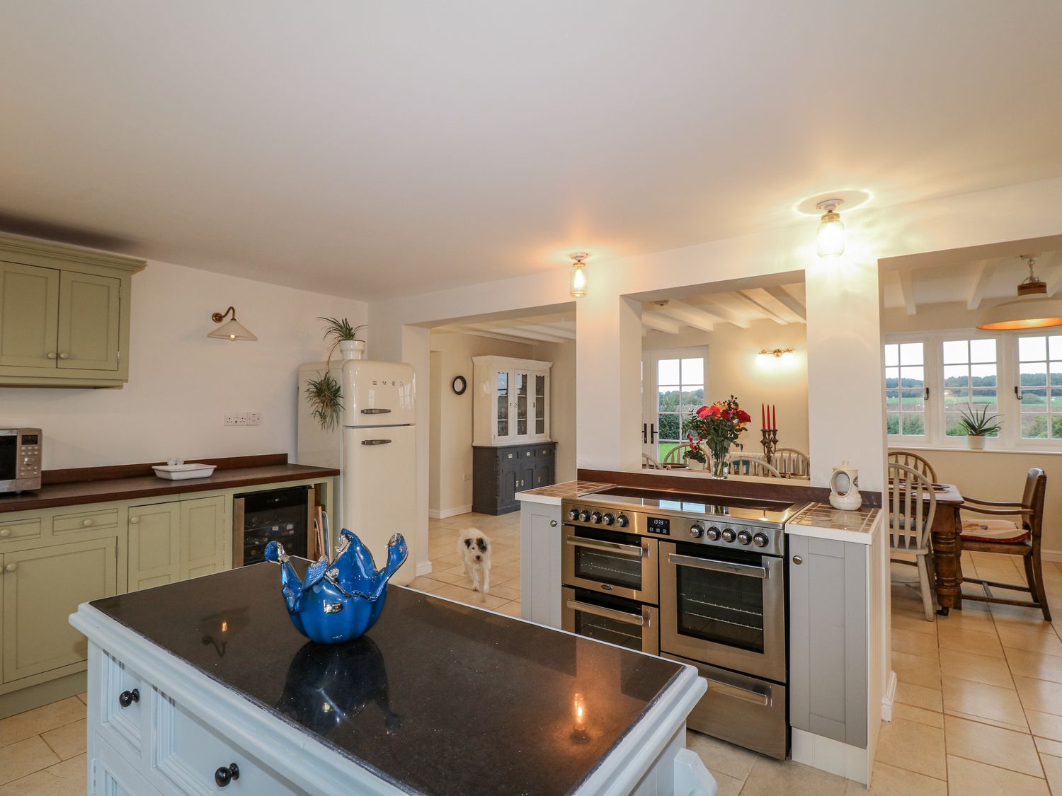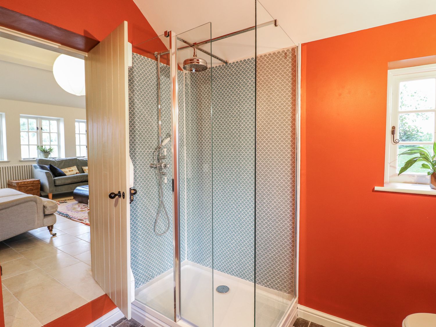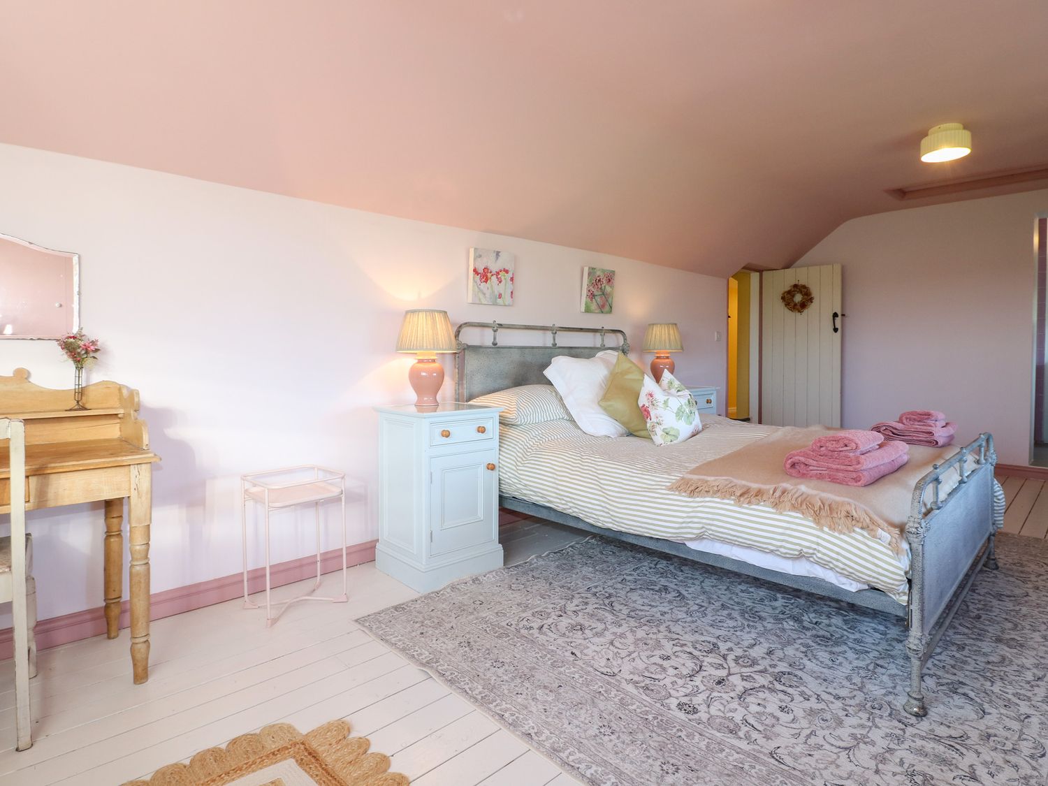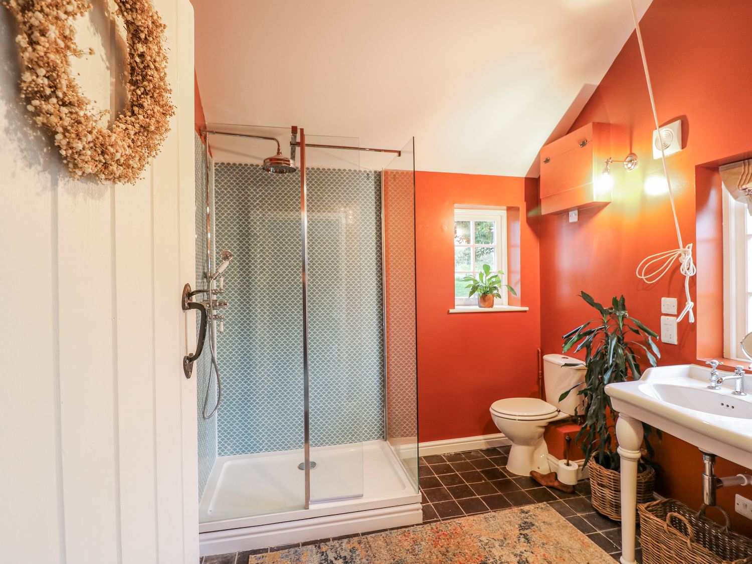 "Five bedrooms: 1 x ground-floor king-size bed with Smart TV, woodburning stove and Jack-and-Jill shower room with walk-in shower, basin, and WC. 1 king-size with en-suite with walk-in shower, basin, heated towel rail, and WC, 1 king-size, 1x family room with double and single bed, 1x twin. Bathroom with bath, shower over, basin, and WC. Kitchen/living room with Smart TV. Dining room with woodburning stove and TV. Snug"