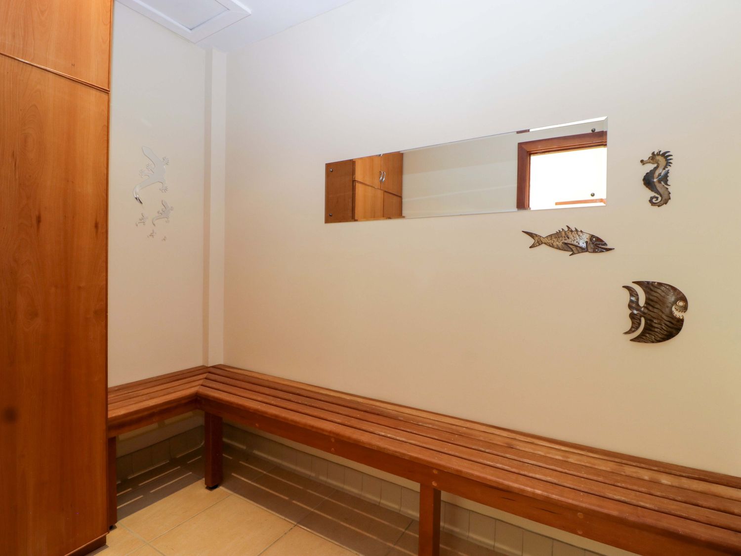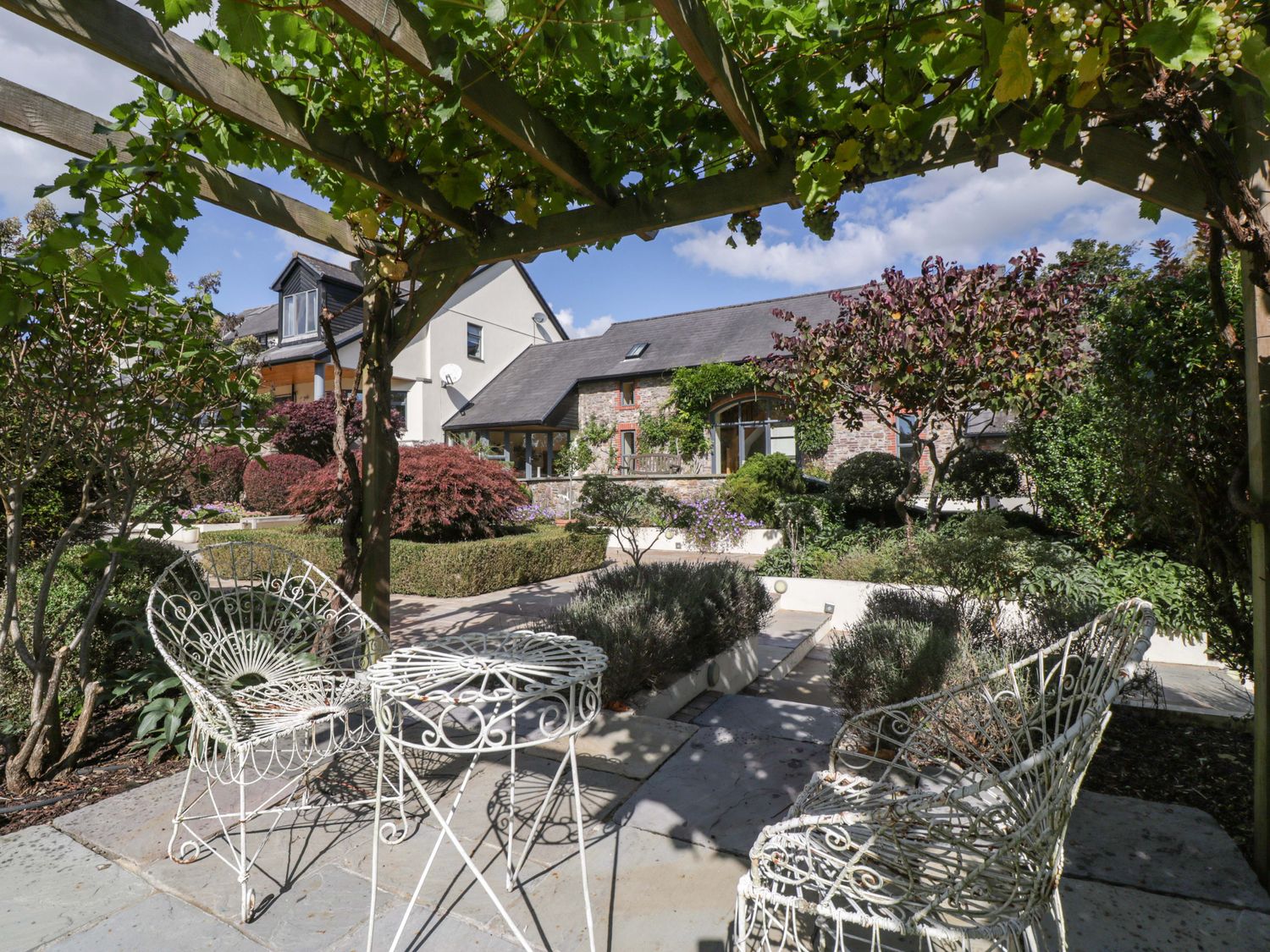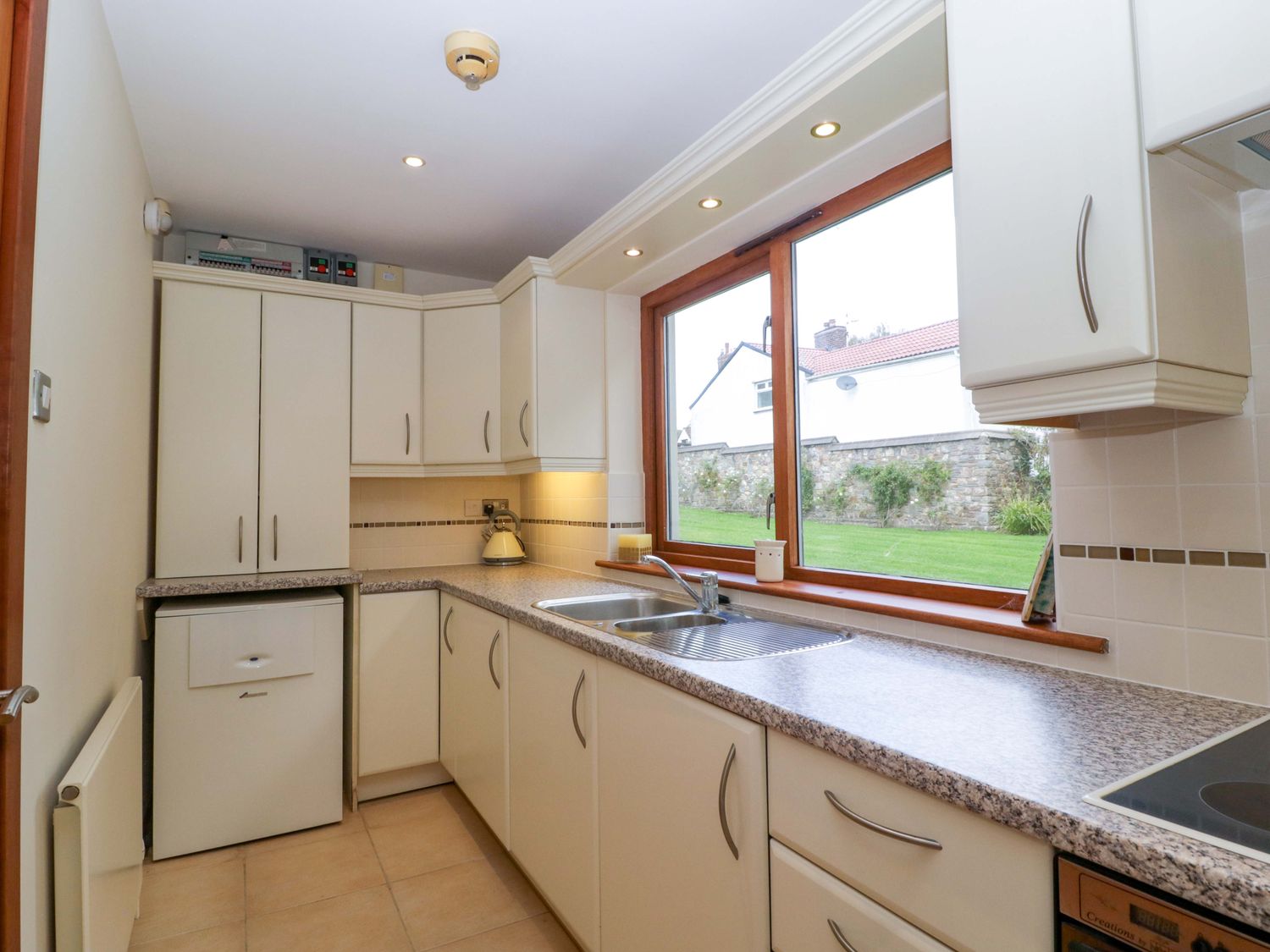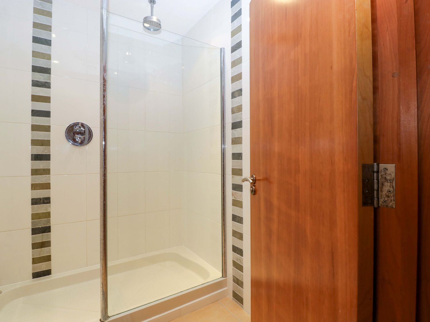 "Two bedrooms: 1 x king-size with en-suite freestanding bath, walk-in shower, basin and WC, 1 x double. Ground-floor shower room with walk-in shower, basin and WC. Ground-floor cloakroom with basin and WC. Kitchen. Open-plan living space with dining area, sitting area and game area. Private indoor swimming pool. Sauna"