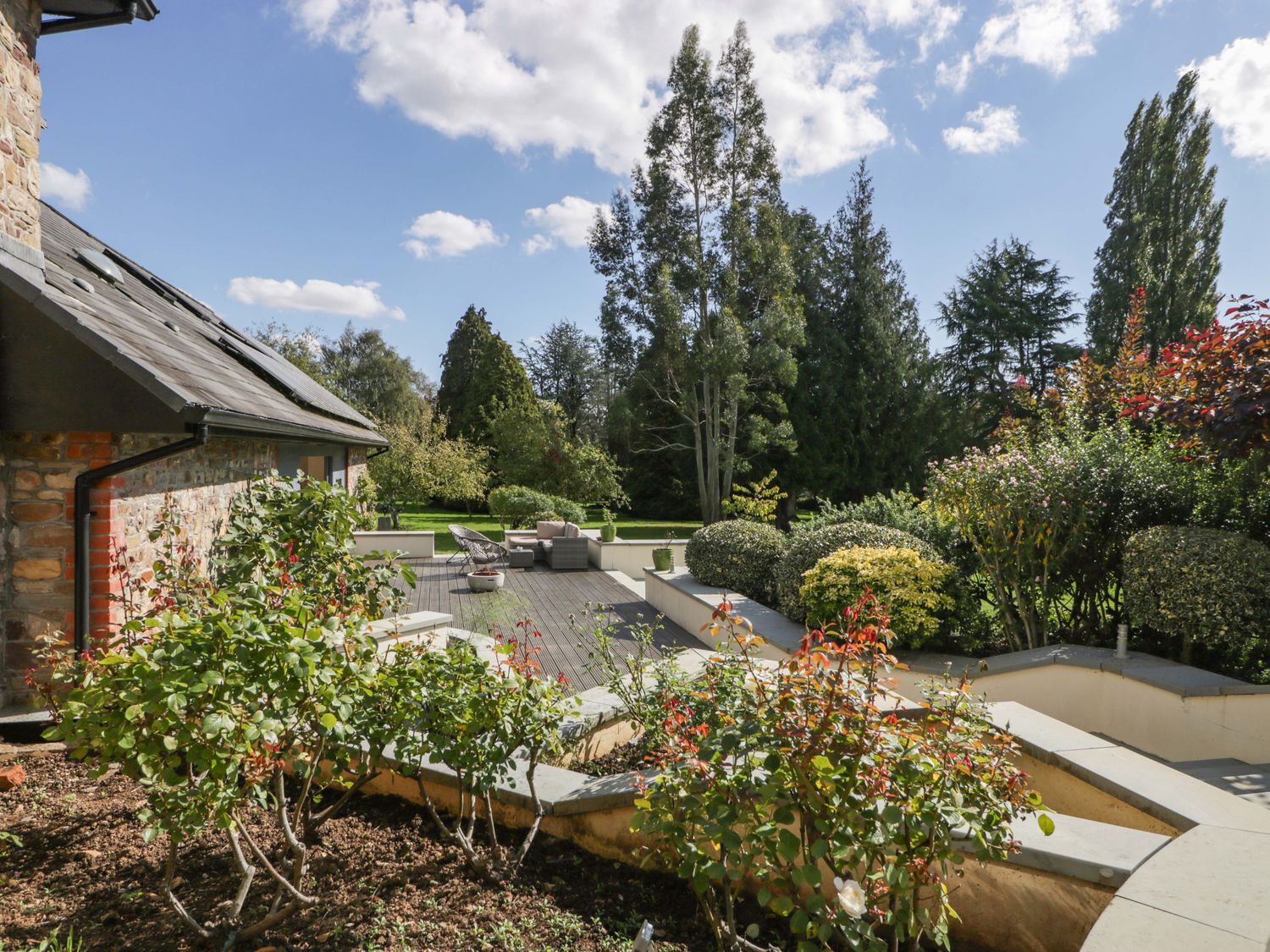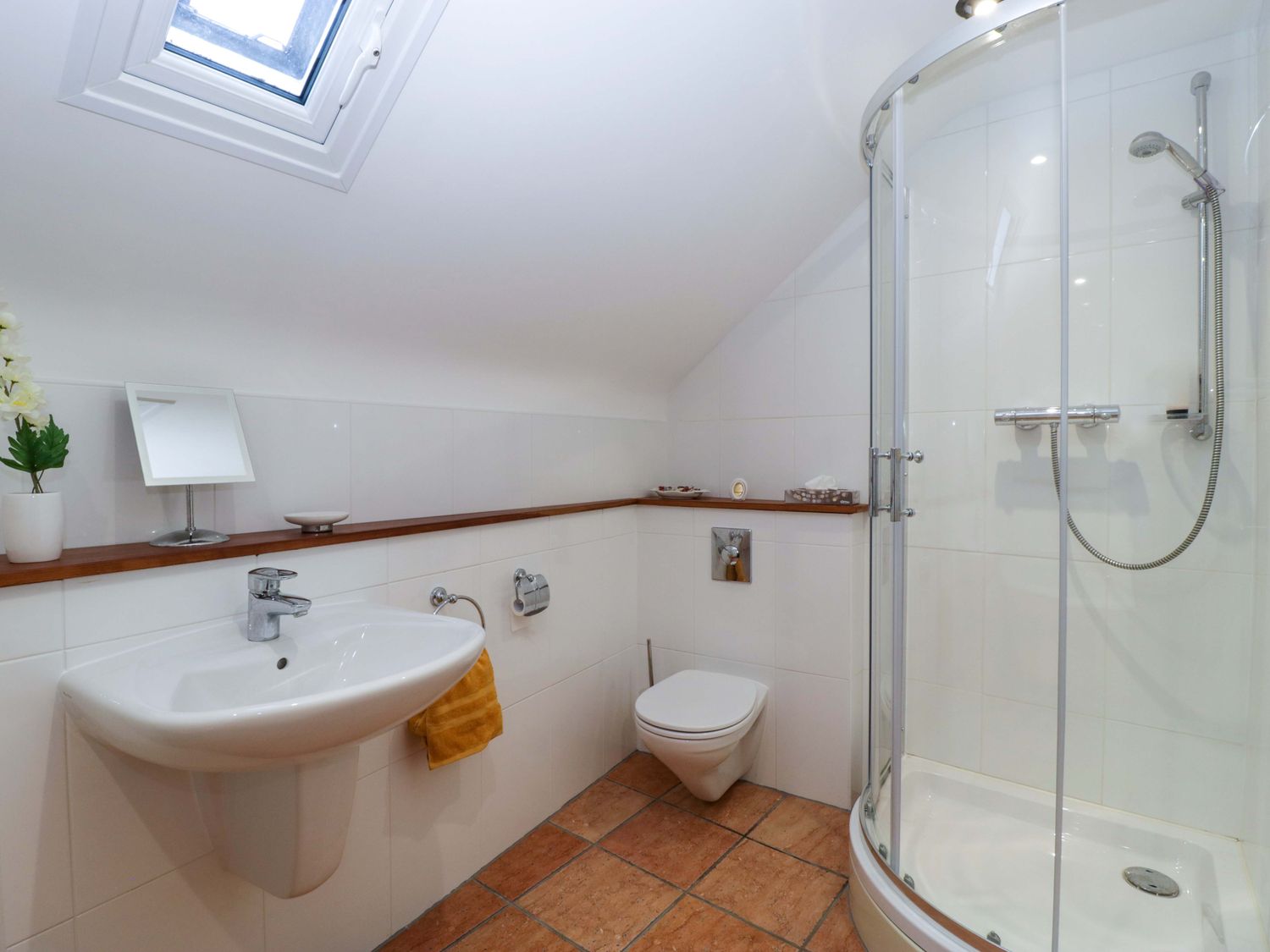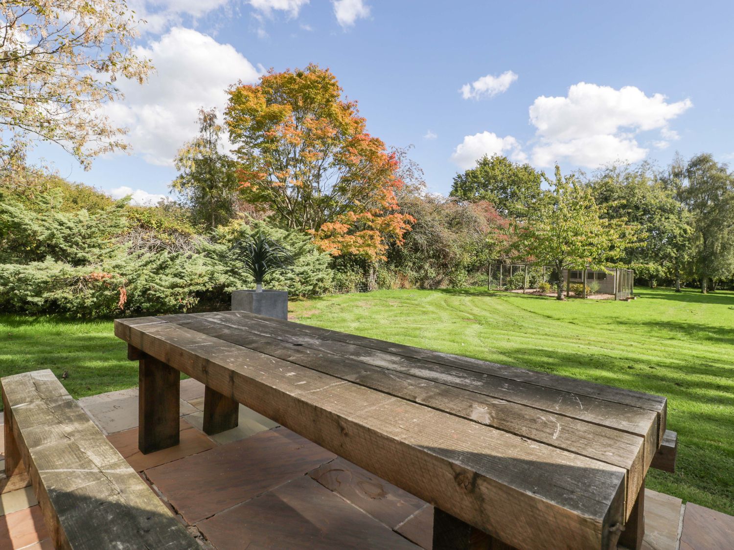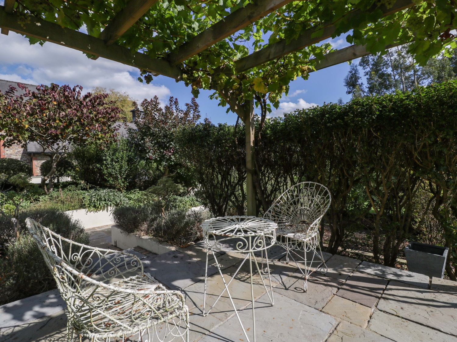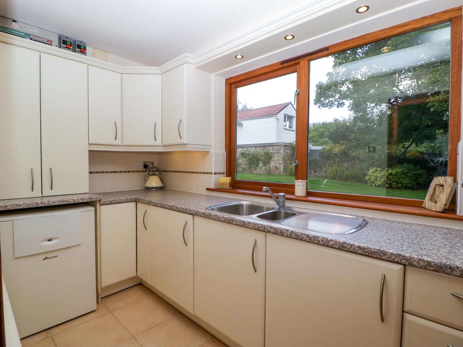 "Two bedrooms: 1 x king-size with en-suite freestanding bath, walk-in shower, basin and WC, 1 x double. Ground-floor shower room with walk-in shower, basin and WC. Ground-floor cloakroom with basin and WC. Kitchen. Open-plan living space with dining area, sitting area and game area. Private indoor swimming pool. Sauna"