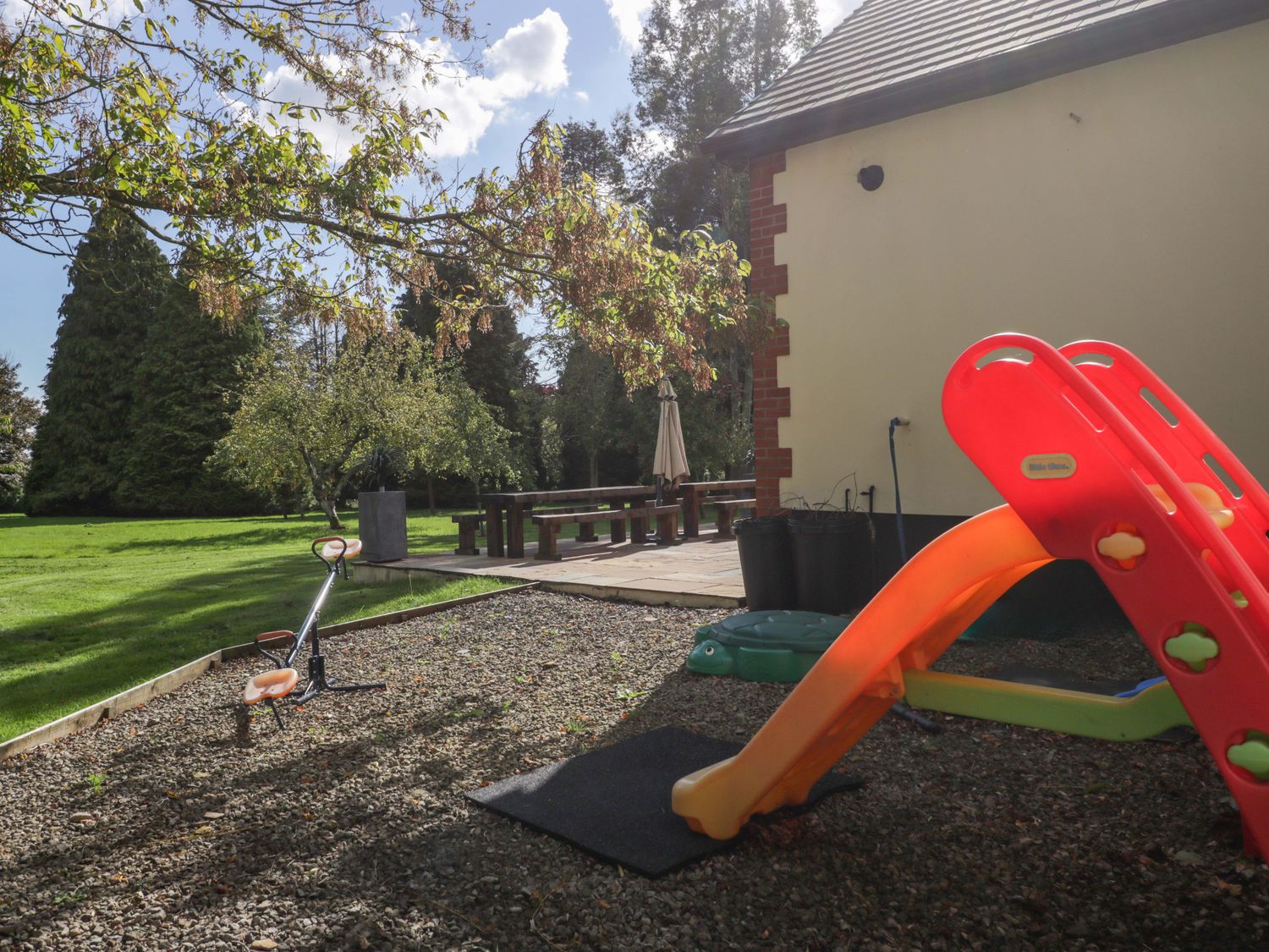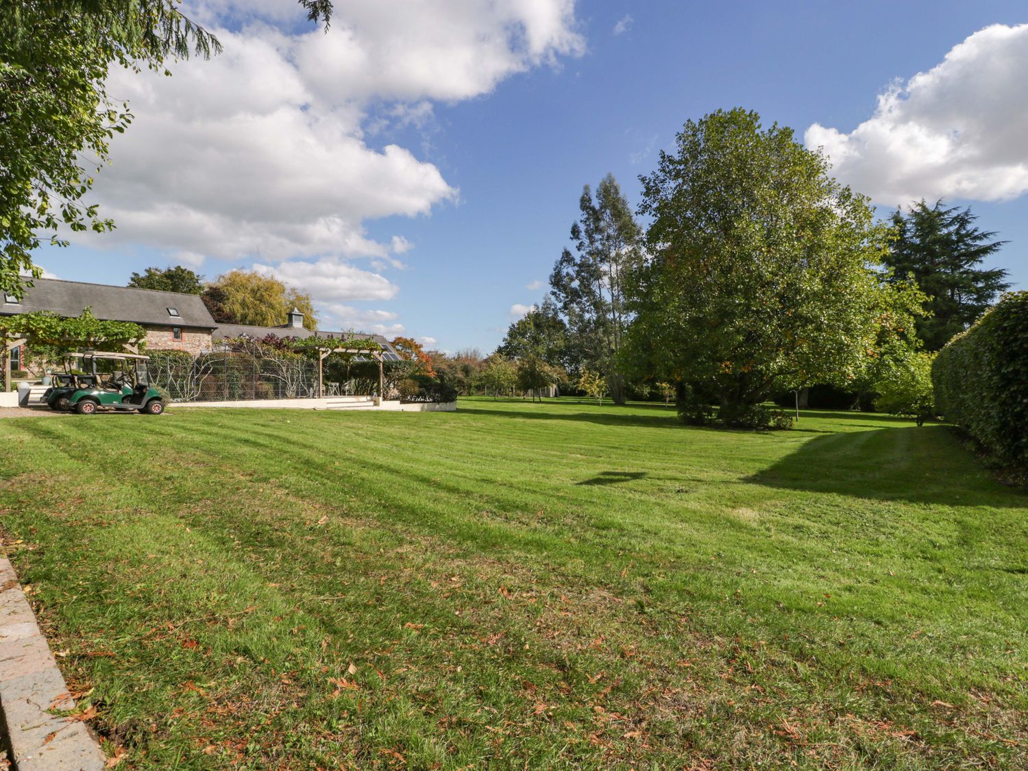 "Heathcliffe House, among others, consists of a kitchen with oven, hob, fridge, kettle, and toaster, a dining area with seating for four guests, a sitting area with TV, a game area with snooker table and table tennis, a indoor swimming pool, and a sauna. The bedrooms consist of a king-size with en-suite bathroom and double serviced by a ground-floor shower room with walk-in shower, basin and WC. WiFi, fuel, power, bed linen, and towels are included in the rent. Outside, there is a garden with lawn, patio, decking, barbecue, furniture, shared tennis court, access to acres of land, use of golf buggies, and off-road parking for two cars. Sorry, no pets and no smoking. Note: This family retreat is ideal for families and weÔÇÖre happy to welcome bookings that include one couple. However, to maintain the peaceful family atmosphere, we are unable to accommodate bookings with two or more couples Within 1 mile you will find a shop and within 1.5 miles a pub. All of this awaits at Heathcliffe House."