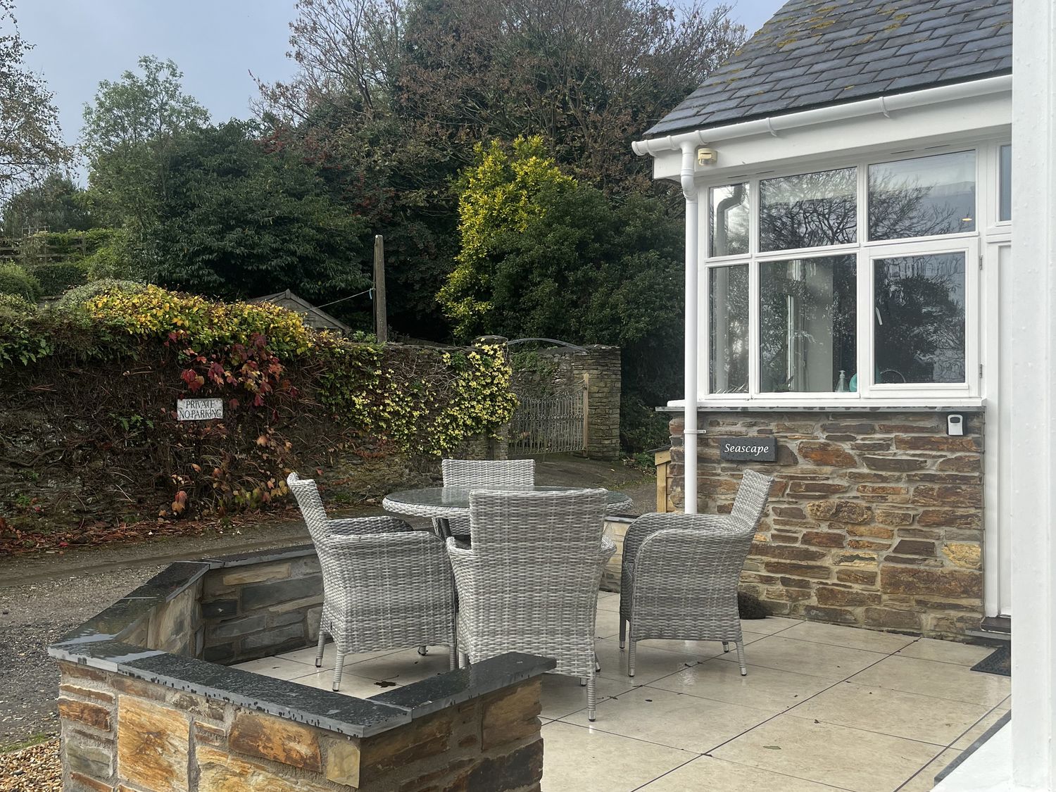 "Please note: from April until end of September this property can only accommodate weekly bookings starting on a Thursday. Seascape consists of a kitchen with dishwasher, washer/dryer, electric oven, induction hob, microwave, kettle, air fryer, toaster, fridge with icebox, and fridge/freezer, a dining room with dining seating for six and a breakfast bar for 3, and a sitting room with Smart TV. The bedrooms consist of a king-size and double. There is a bathroom with bath, shower over, basin, heated towel rail, and WC. WiFi, fuel, power, bed linen, and towels are included in the rent. Outside, there is a private front garden with a gravel area and furniture and off-road parking for two cars. Two well-behaved pets are welcome Sorry, no smoking at this property. Enjoy your trip to the property Seascape."