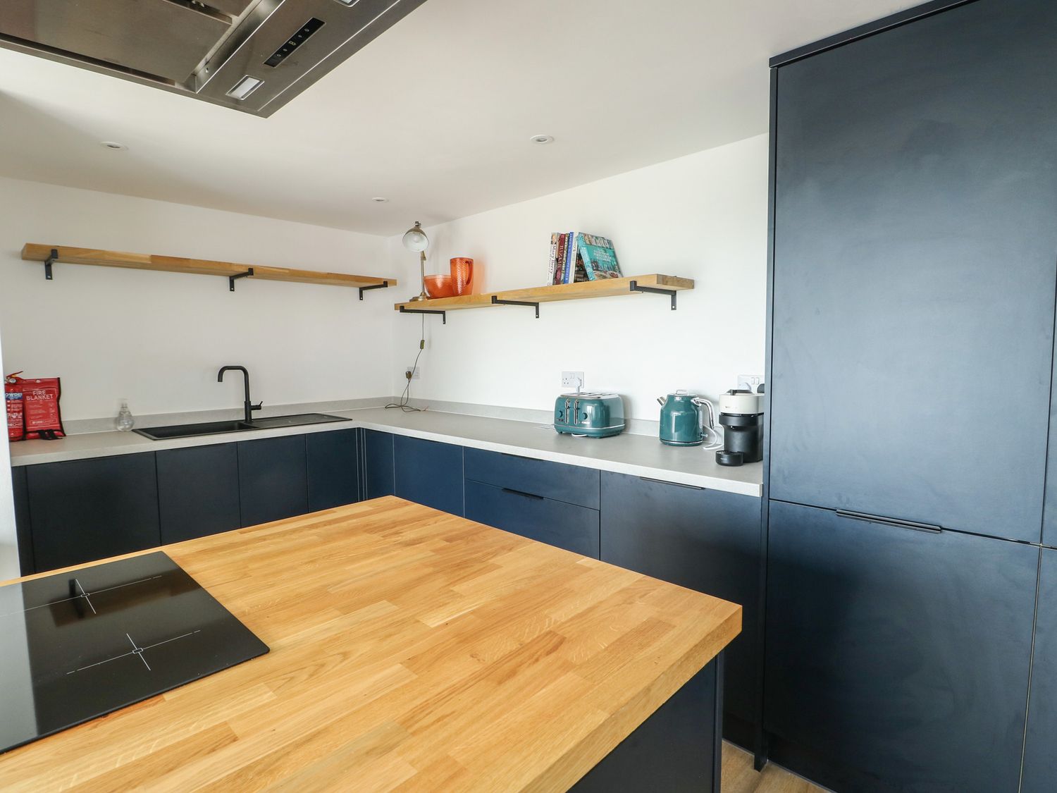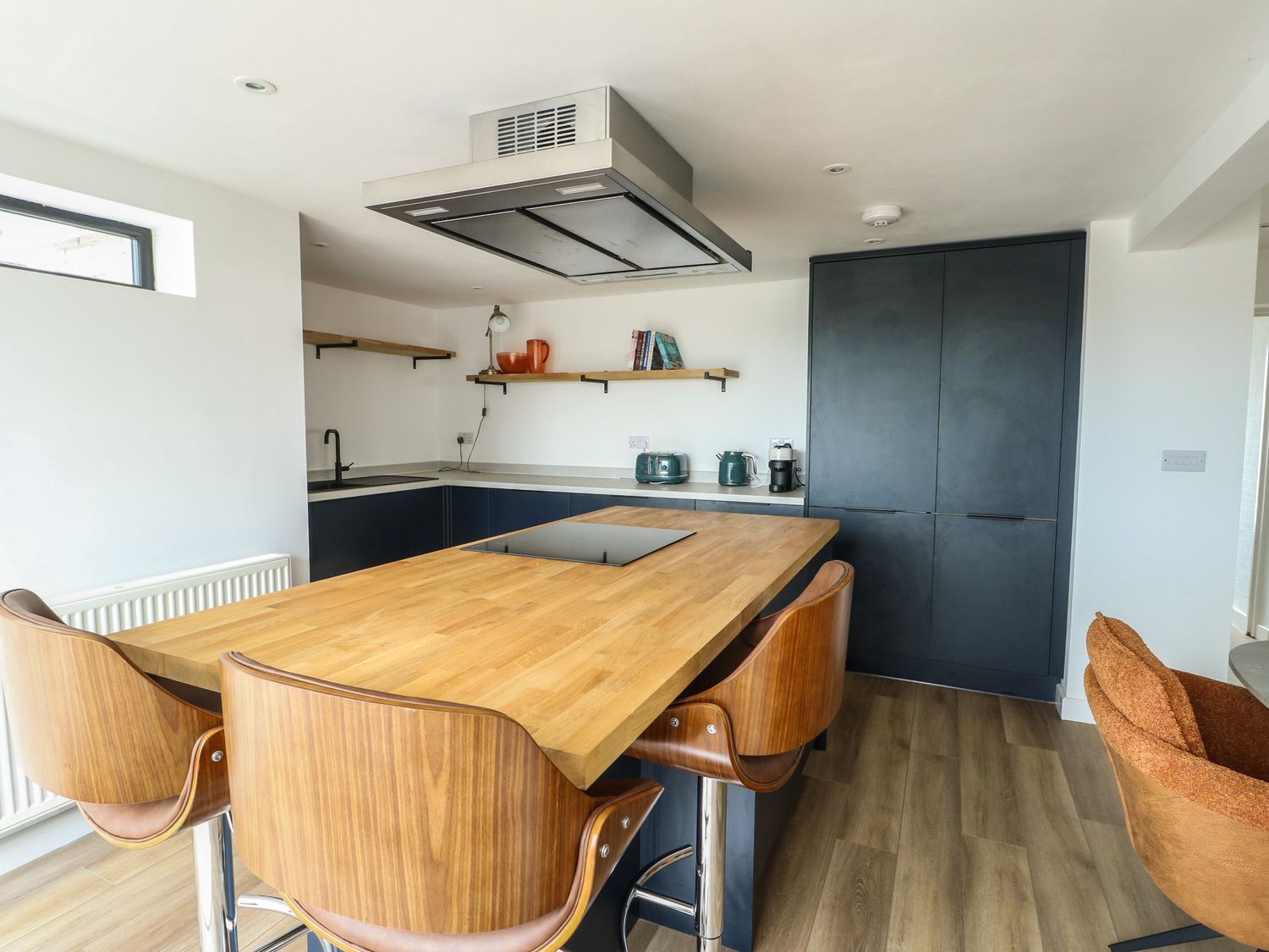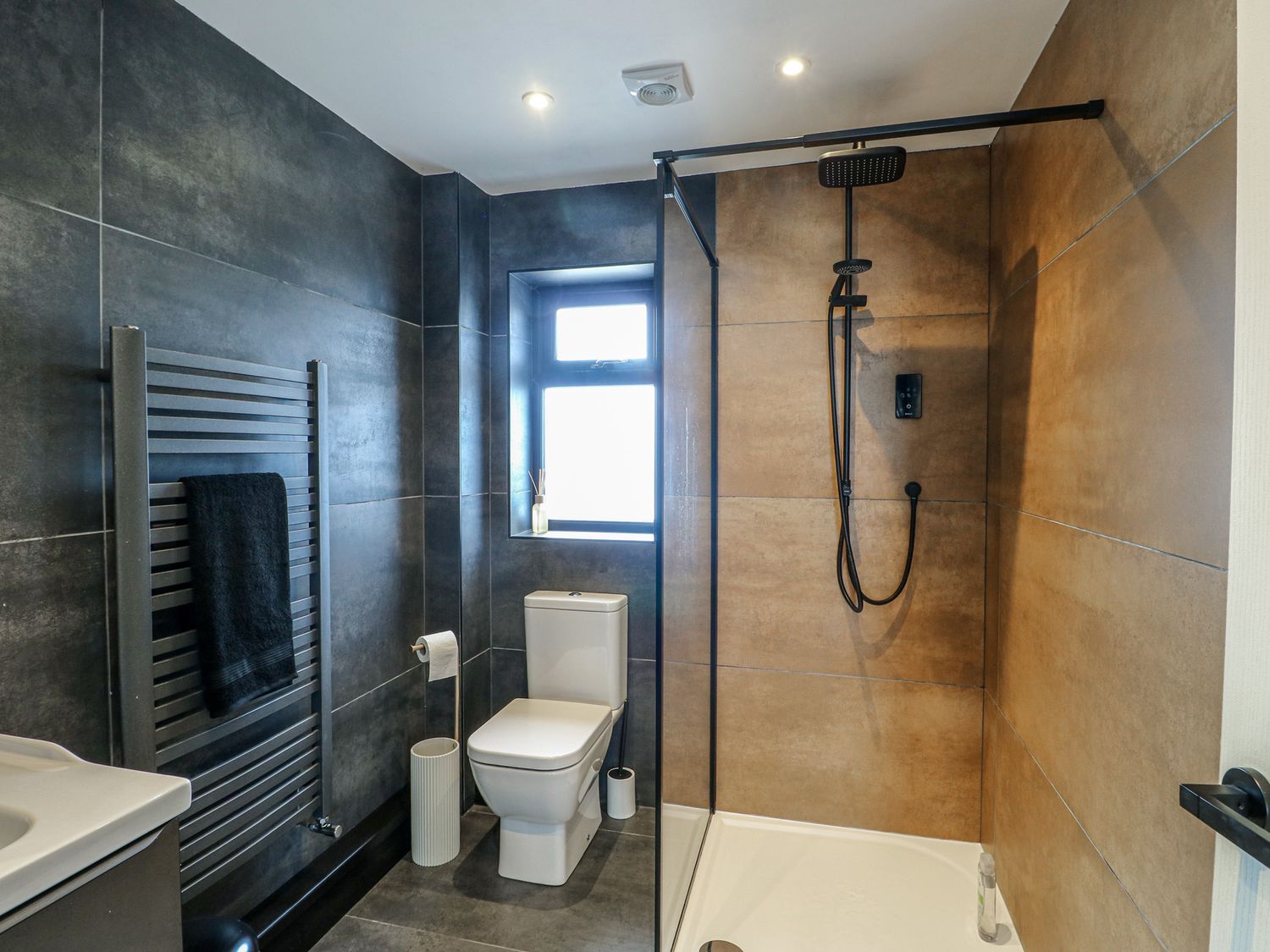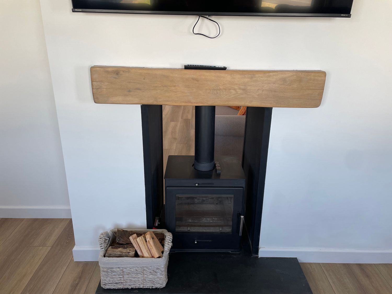 "Single-storey. Two bedrooms: 1 x king-size, 1 x twin. Shower room with walk-in shower, basin, heated towel rail and WC. Cloakroom with basin and WC. Open-plan living space with kitchen, dining area, and sitting area with woodburning stove. Sitting room with woodburning stove"