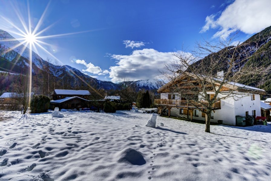 Sit back in your hot tub with a glass of champagne, looking up at the Mont Blanc mountain range and feel totally immersed in the relaxing surroundings of your ski chalet. Chalet Emeraude offers space, warmth and a homely ambience alongside modern comforts and wonderful hospitality. Sleeping 16-24 guests in the winter months, across nine bedrooms offering flexible sleeping options, gather together in a welcoming living space with its wooden sofas, cosy fireplace, Sky TV as well as DVDs, a music system, books and board games. Help yourself to tea and coffee by the drinks machine and make the most of the well-stocked honesty bar. With high ceilings, artwork on the wall and other pretty touches across the lounge and dining area, there's a real sense of rustic elegance across this beautiful home. The staff here take great pride in the high level of hospitality, not just the chef who prepares high-quality three-course evening meals but also the friendly team who service the chalet most mornings and can assist with ski-equipment hire, delivery and fitting, ski passes and anything else you may require. The cuisine is second to none – you will be greeted with a champagne reception when you first arrive and every afternoon, on your return from the slopes, delicious cakes, nibbles and hot drinks are served by the roaring fire. Breakfast is prepared daily – expect pastries, warm bread, fruit and yoghurt as well as hot items most days. The evening meal is a special affair, often by candlelight with gastronomic delights of a restaurant standard, accompanied by classic French or Italian wines chosen perfectly to complement the food. Six mornings a week an 8-seater mini-bus will pick you up and whisk some of you away to your chosen skiing area in the Chamonix Valley, bringing you back late afternoon. Whether you feel like a day skiing the slopes of Le Brevent, challenging yourself off-piste around Aiguille du Midi or family time at one of the snow parks of Les Houches, there is skiing, snow-boarding and other activities for all ages and abilities. There are also shuttle buses departing from the bus stop just 100m away taking you to various parts of the valley. It also takes just five to ten minutes by car or bus to reach Chamonix itself with its bustling atmosphere and incredible Mont Blanc views. Enjoy lunch in one of the excellent restaurants or take advantage of the ‘apres-ski' scene after your evening meal (most days the staff can drop you off in Chamonix before 10pm). So whether spending your time skiing, exploring Chamonix or just enjoying the hot tub, sauna and warm hospitality of this lovely home, Chalet Emeraude offers something for everyone surrounded by the stunning scenery of the Mont Blanc massif. #### Features Chalet Interiors (340m2) Ground Floor - Bedroom 1 with double/twin bed and sink - Bedroom 2 with double/twin bed and sink - Bedroom 3 with double/twin bed and en suite shower room with WC - Bedroom 4 with double/twin bed and en suite shower room with WC - Bedroom 5 with double/twin or three single beds - Bedroom 6 with double/twin or three single beds - Shower room with WC - Shower room with separate WC - Boot room First Floor (via curved open-tread stairs, or via outdoor balcony) - Open-plan lounge with fireplace and dining area with three tables - Kitchen, well-equipped - Honesty bar - Sauna - Bedroom 7 with double/twin bed, set of bunk-beds and en suite bathroom with WC - Shower room with WC Second Floor (via curved open-tread stairs) - Mezzanine hallway - Bedroom 8 with two doubles or four single beds and en suite shower room with WC (sloping ceilings) - Bedroom 9 with double/twin bed (in low eaves with 1.6m ceiling, best suited for children) Outside Grounds - 5-person hot tub with mountain views (8am-10pm) - Balcony - Alpine gardens (2000m2) - Private parking Facilities - Wi-Fi - Heating - Fireplace (and logs) - Large TV with Sky TV (including Sky Sports) - DVD player and DVDs - Music system with iPod connection and CD player - Books and board games - Honesty bar - Tea and coffee making facilities (winter) - Hot tub - Sauna - Boot/ski room with boot warming facilities #### Location Chalet Emeraude can be found around 4km from the centre of Chamonix in a nearby hamlet with glorious views of the Mont Blanc massif, at the foot of an impressive glacier. There are a couple of restaurants within walking distance and you are only 100m from the nearest bus stop with shuttles taking you to many skiing areas across the Chamonix Valley. It's about a one-hour drive from Geneva Airport (transfers can also be arranged). The ‘Route Blanche' leading through the valley and on to the Mont Blanc tunnel is very close by, making many of the towns, hamlets and skiing lifts particularly accessible. Included in the catered price is a morning drop-off service at 9.00 a.m. in an 8-seater mini-bus that will take some of you to your chosen skiing area for that day, bringing you back around 4 or 5.00 p.m (six days a week). When working, the staff are also happy to drop a group of you off in Chamonix after your evening meal before 10.00 p.m. or they can also arrange taxis. The local shuttle bus usually comes back from Chamonix just before midnight if you wish to experience the ‘apres-ski' scene in this bustling town. Chamonix is also well-loved for its restaurants, many serving regional Savoyard cooking as well as international options. There are various skiing options from the town – the Aiguille du Midi and the Vallee Blanche offers challenging off-piste skiing for the most experienced winter-sport enthusiasts whilst Le Brevent and La Flegere feature skiing for a variety of abilities in stunning scenery. Les Houches, around 4km away, is another great spot with its challenging Kandahar piste, well-known amongst professionals, alongside its gentler slopes passing picturesque Alpine forests and scenery. The snow parks here are great fun for children with sledging and all sorts of family activities