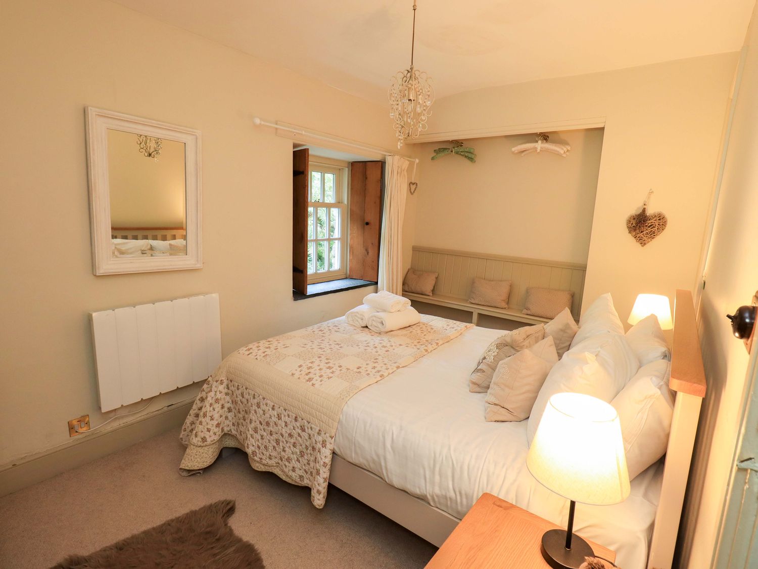 "Two bedrooms: 1 x king-size, 1 x double. Newly refurbished in 2025 groundfloor shower room. Kitchen/diner. Sitting room heated by a multi-fuel stove (coal and wood burner) and electric radiators"