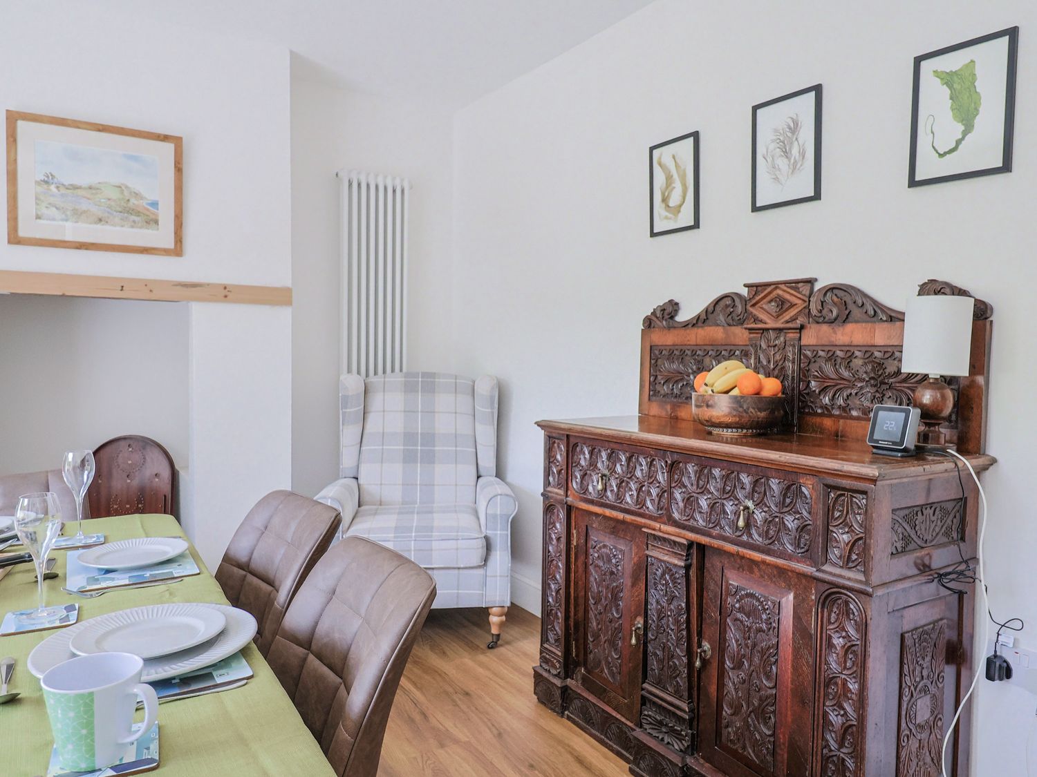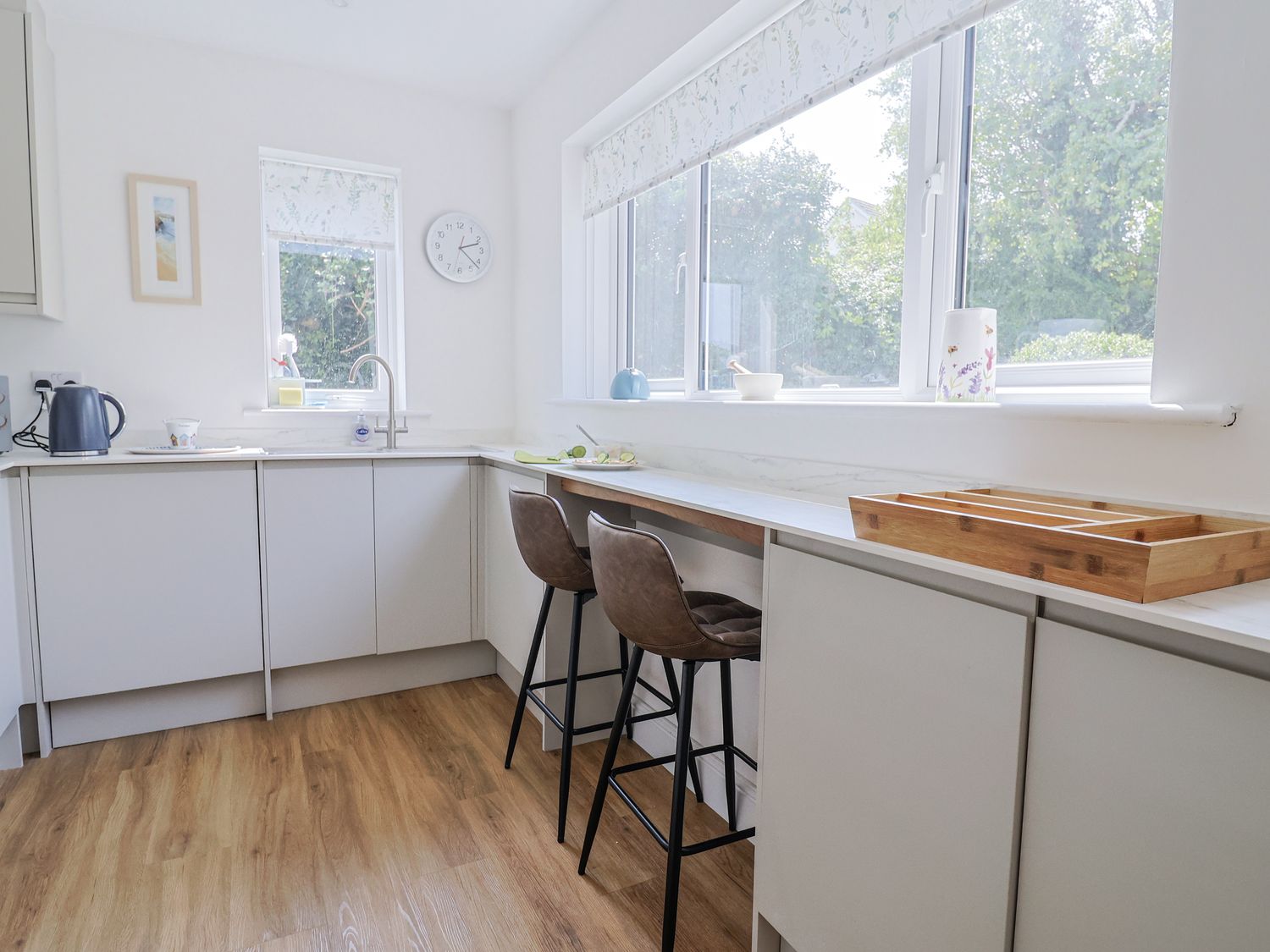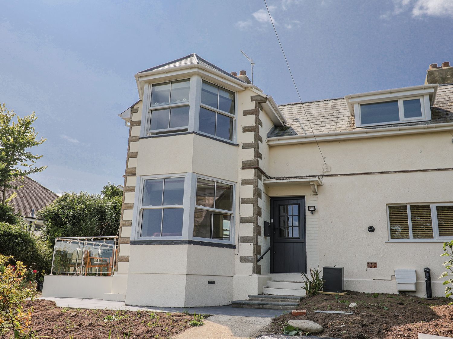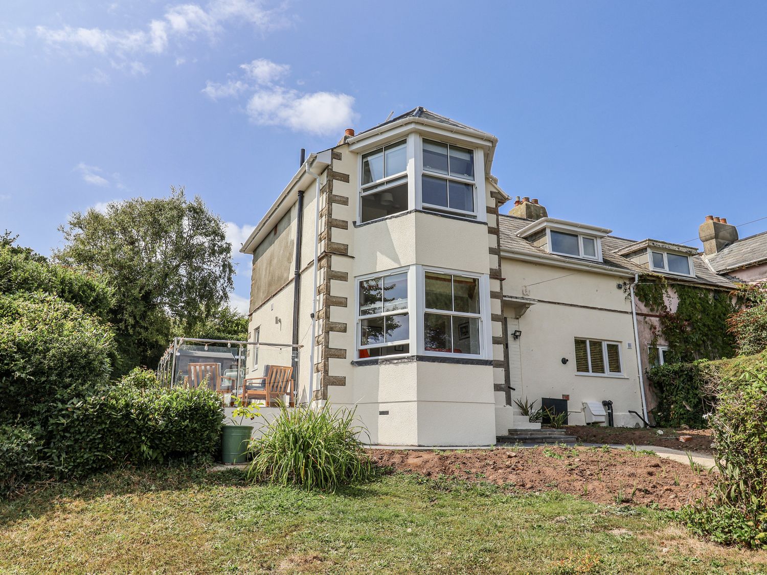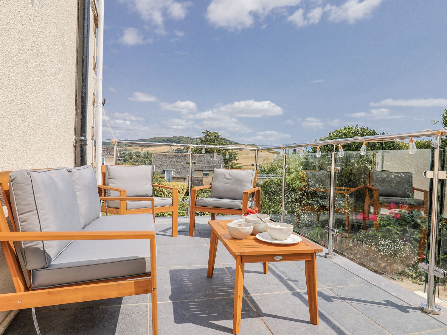 Outside, there are wrap-around gardens, a glass-balustraded terrace with outdoor furniture, and off-road parking for two cars, with additional on-street parking nearby. WiFi, fuel, power, bed linen, and towels are all included. Up to two well-behaved dogs are welcome. Sorry, no smoking.