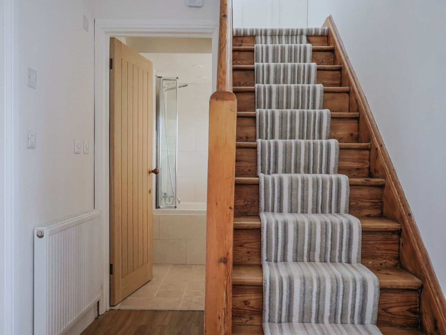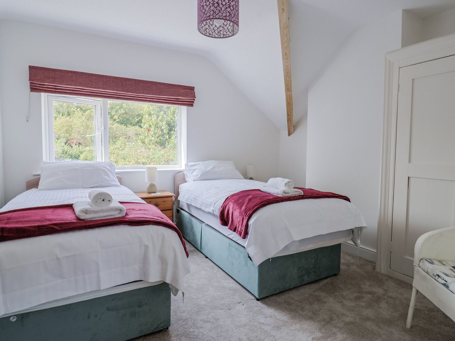 The bedrooms consist of a king-size room, a double, and a twin room that can be made up as a super king on request, serviced by a ground-floor bathroom with a shower over the bath, basin, and WC, and a first-floor shower room with a walk-in shower cubicle, basin, and WC.