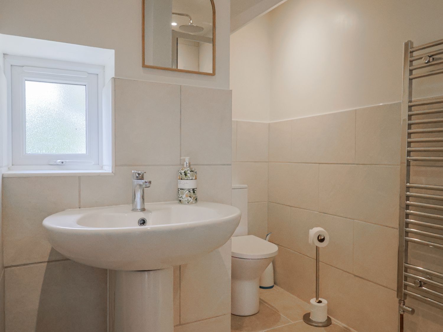 "Three bedrooms: 1 x king-size, 1 x double, 1 x twin (zip/link, can be super-king-size on request). Ground-floor bathroom with bath, shower over, basin, heated towel rail, WC. Shower room with walk-in shower, basin, heated towel rail, WC. Kitchen/diner. Sitting room"