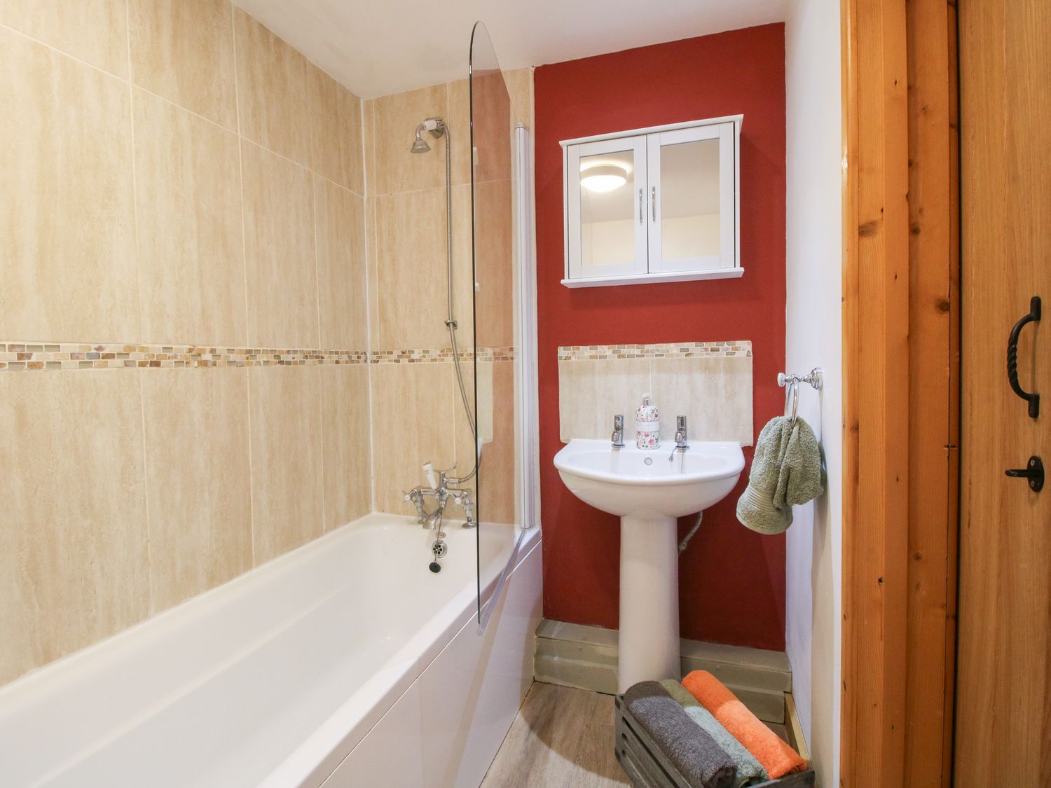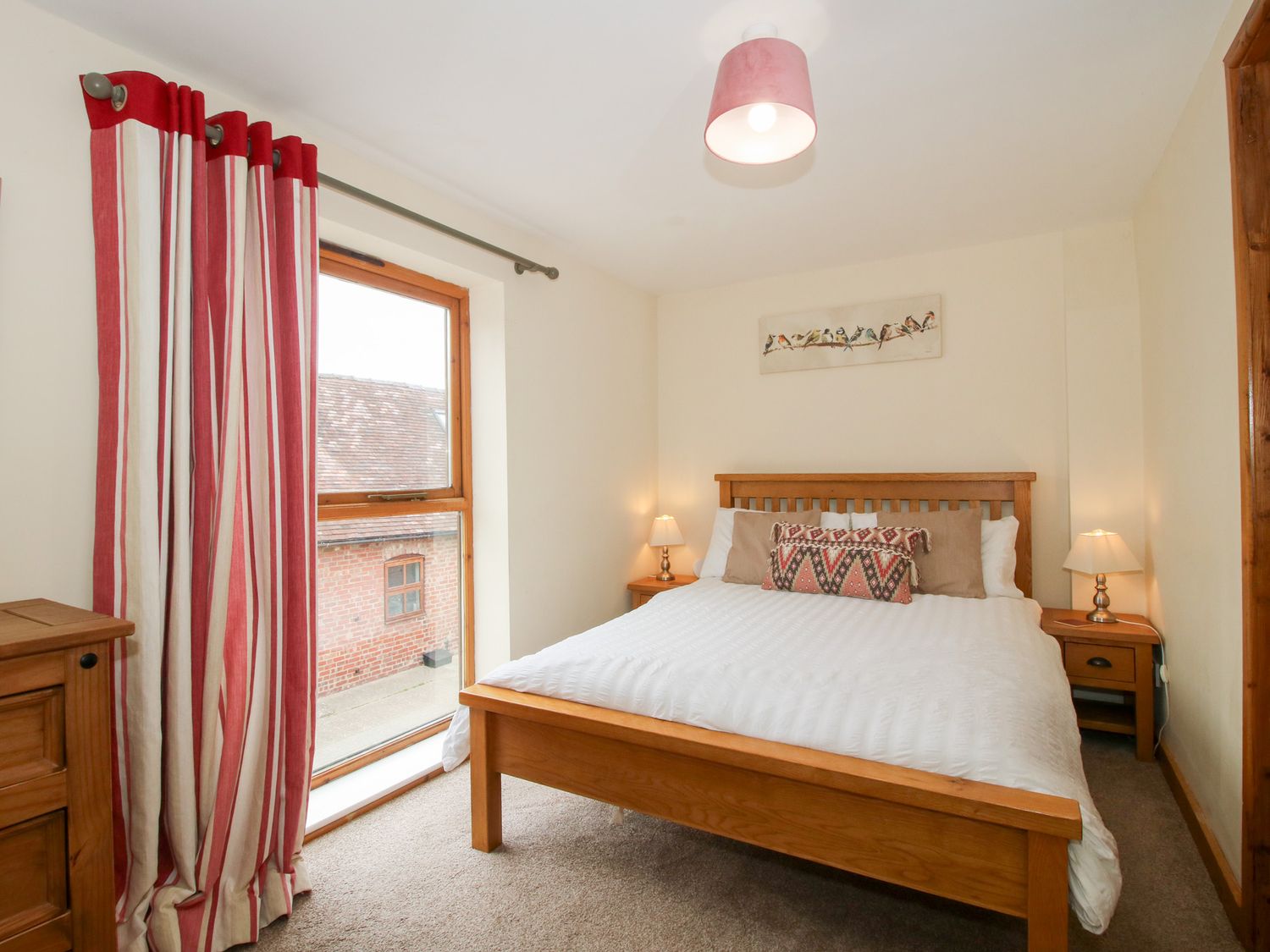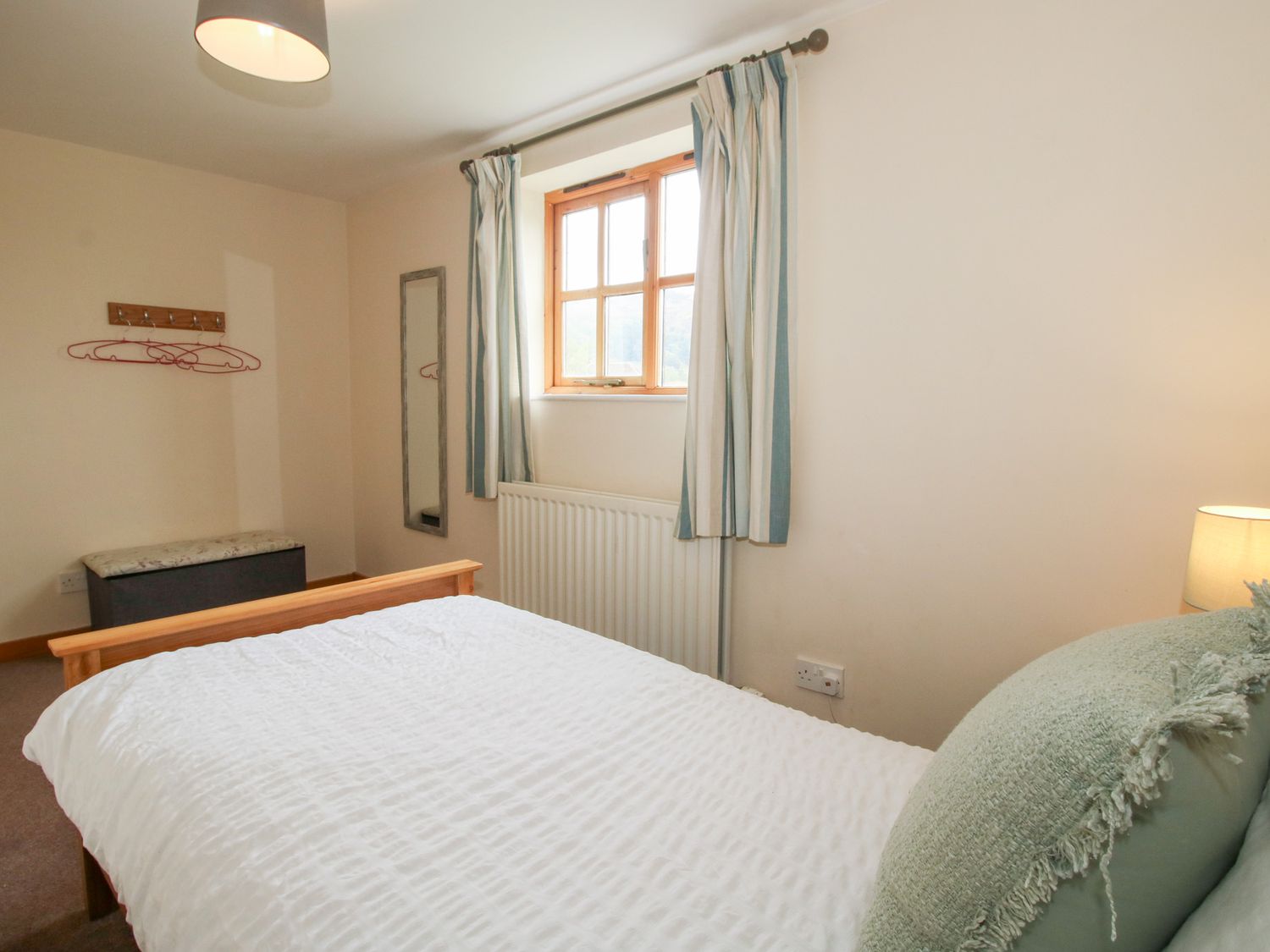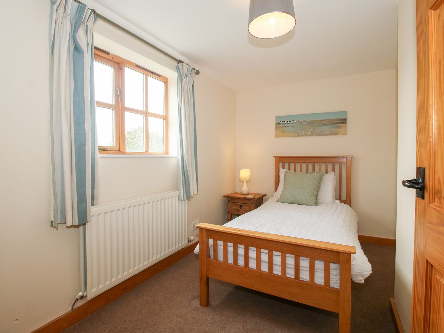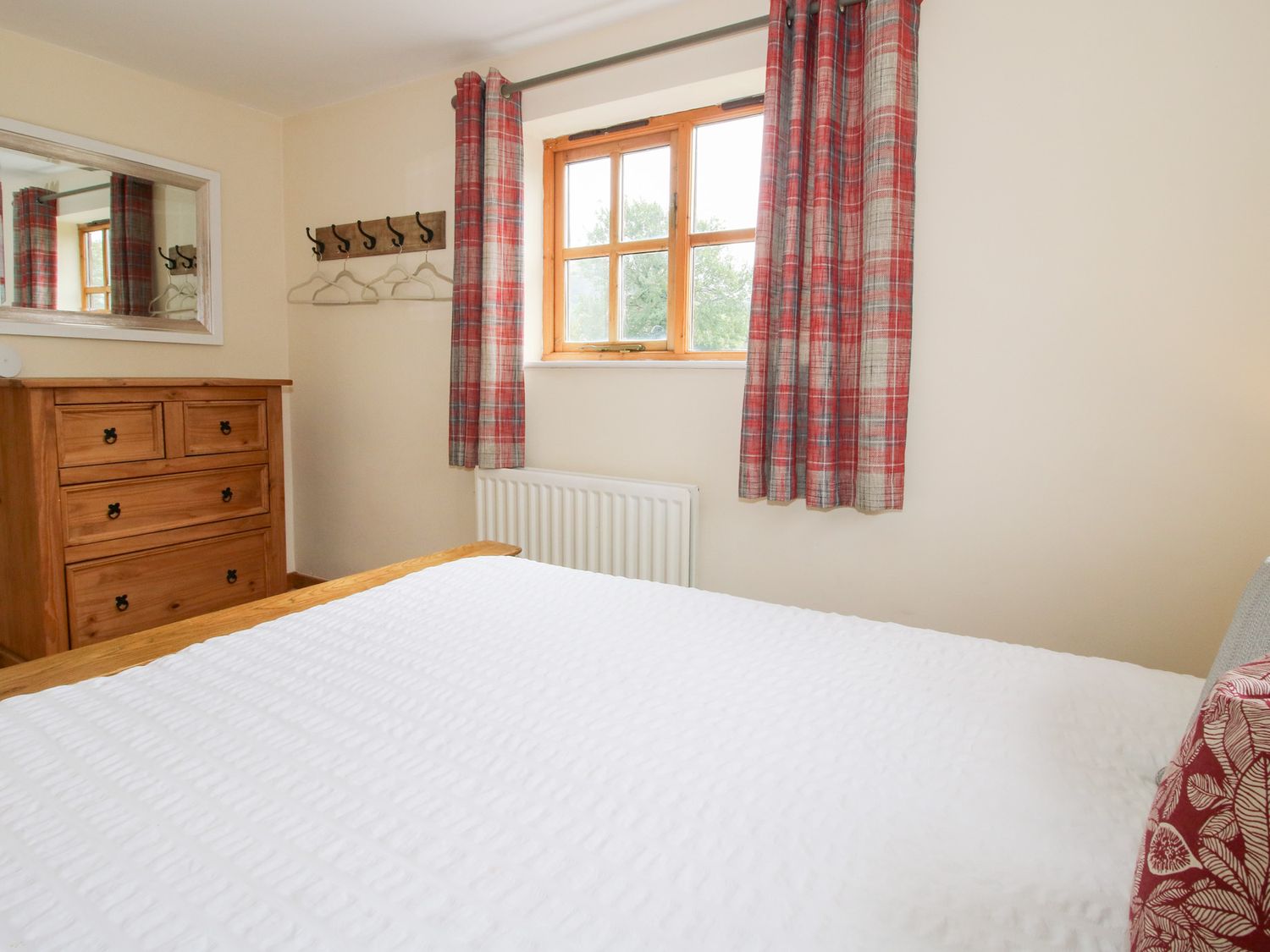 "Three bedrooms: 1 x ground floor king-size double, 1 x double, 1 x single. Bathroom with bath, shower over, basin and WC, ground floor cloakroom. Open-plan living room with kitchen, dining area and sitting area. Sitting room with electric fire."