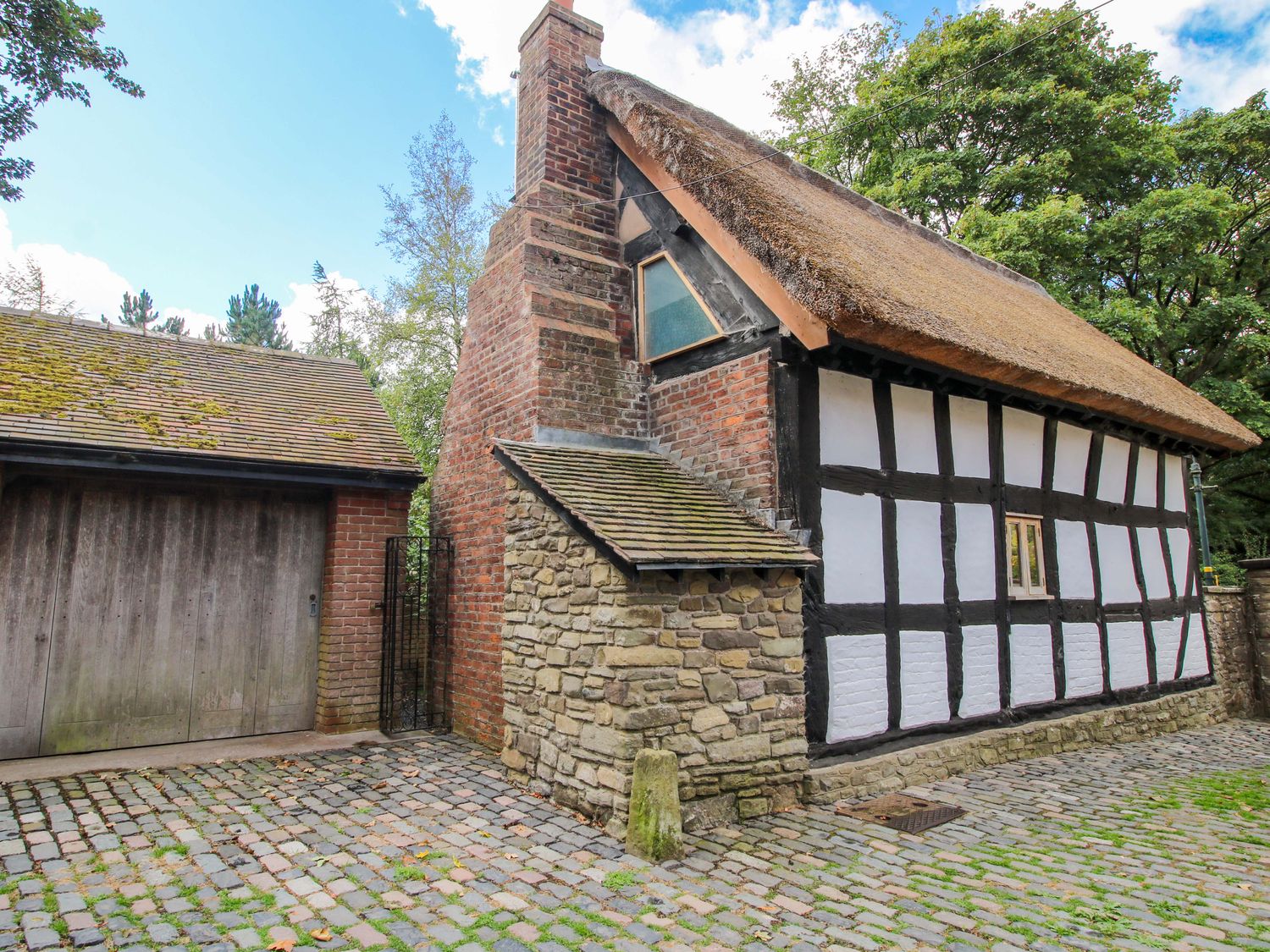 "This detached cottage has an open-plan living space with a kitchen equipped with electric oven and hob, microwave, and fridge, a dining area for four guests, and a sitting area with TV with Freeview and DVD player. There is one double bedroom with an en-suite shower room. Outside, there is a front, enclosed gravelled garden with furniture and bike storage, and roadside parking for one car. Within 1.6 miles, there is a shop, and within 0.1, a pub. Sorry, smoking is not permitted. WiFi, fuel, power, bed linen and towels are all included in the price. Note: No children, only babes in arms are allowed at this property and guests are asked to bring own cot. Note: No Pets Note: Sloped ceiling and beams in bedroom. For a romantic holiday in Shropshire, book your stay at Manor Cottage."