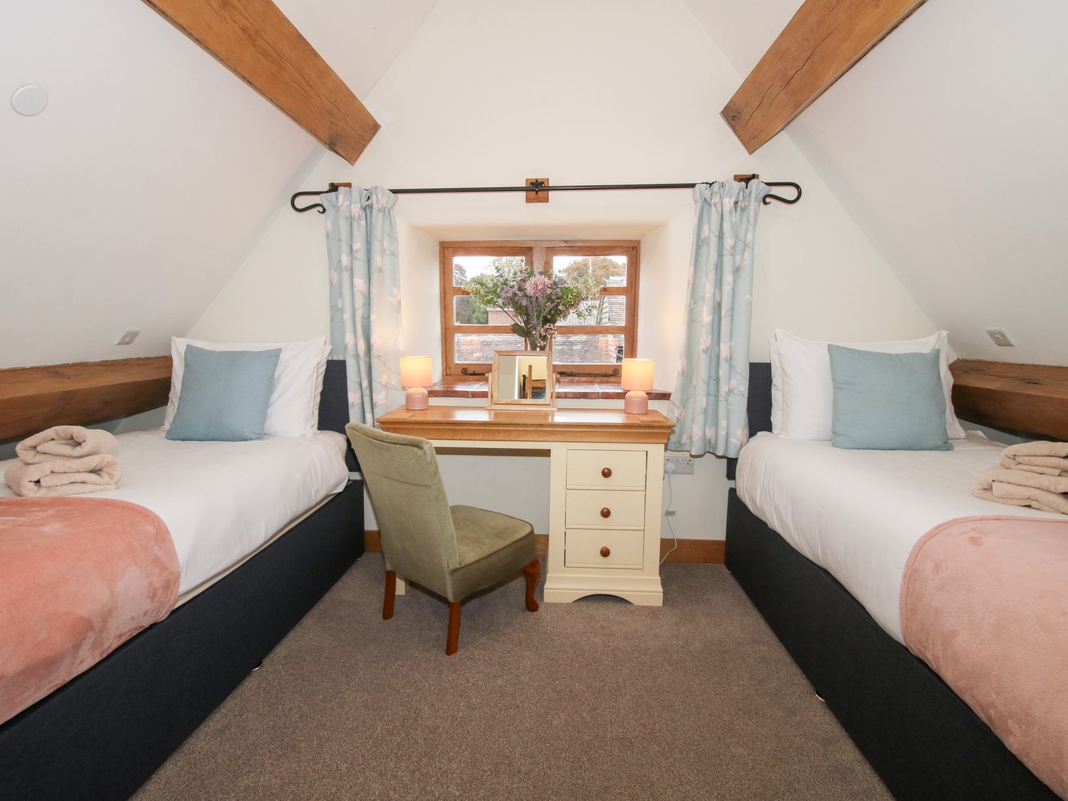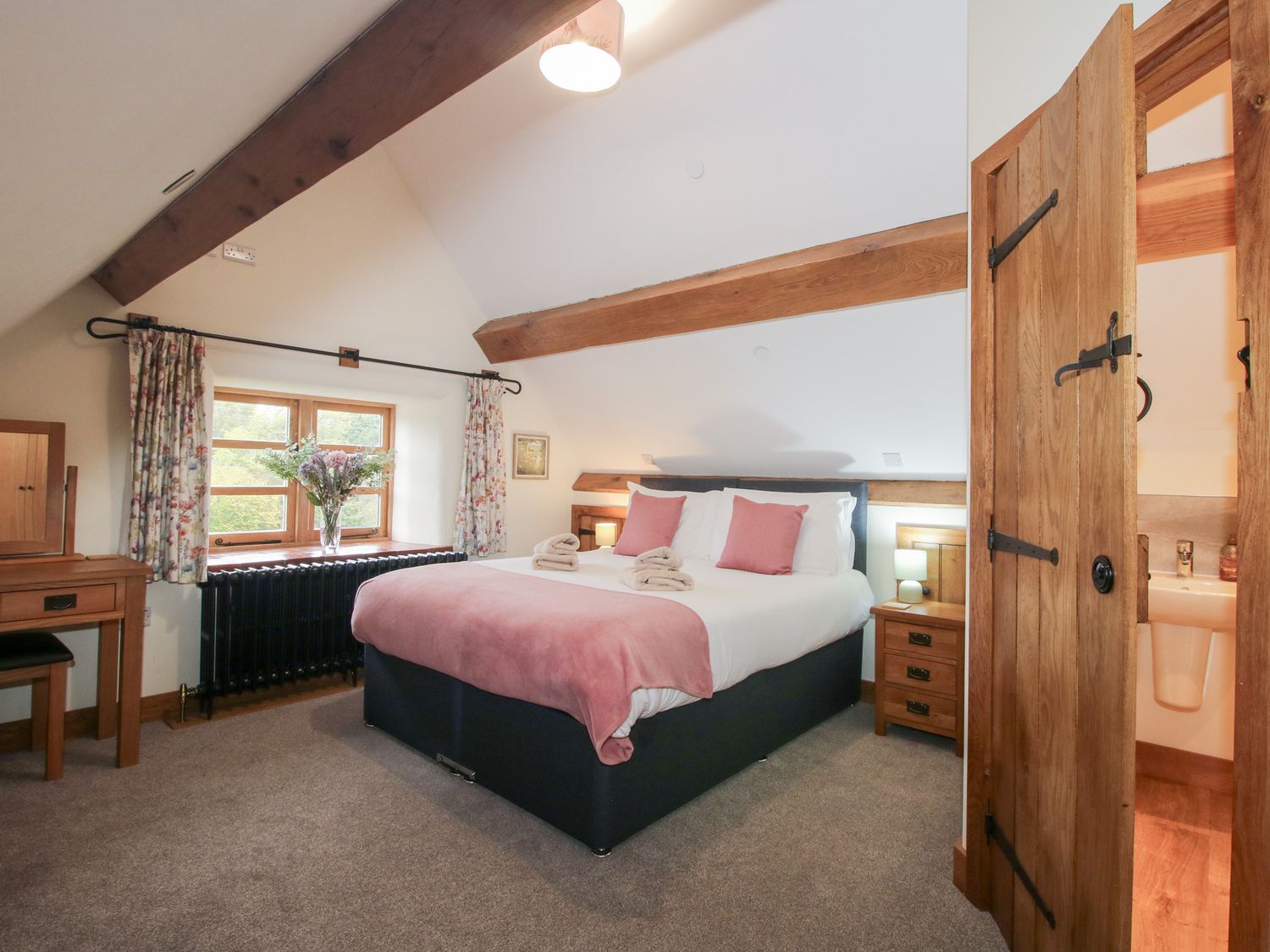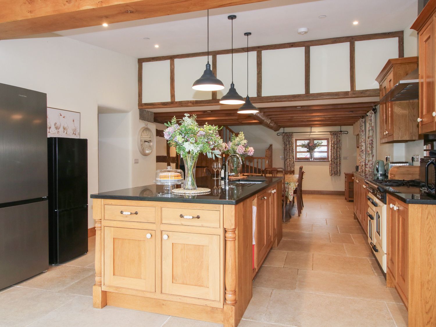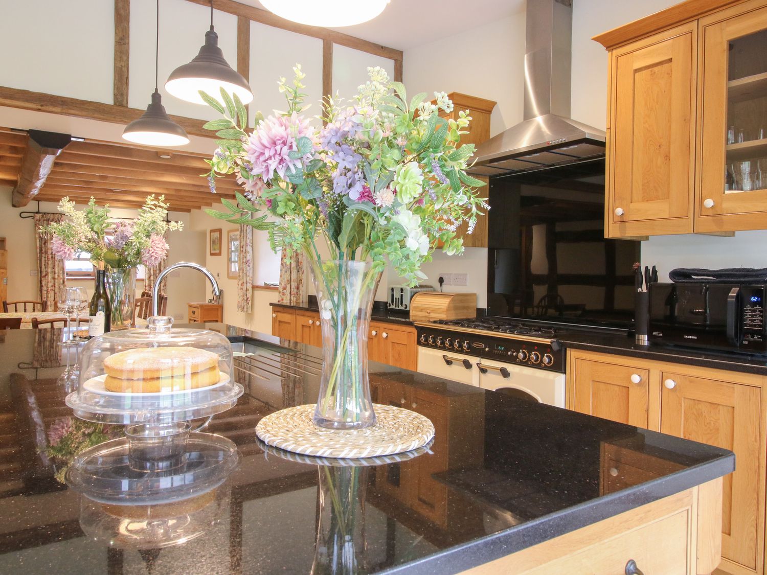 "Sykes Gem Awards 2025 Bronze winner for Best In Central England. Over three floors. Six bedrooms: 2 x second-floor king-size (zip/link, can be twin on request) with en-suite with walk-in shower and basin and WC, 2 x super-king-size (zip/link, can be twin on request, must be requested 7-days in advance) with en-suite with walk-in shower and basin and WC, 1 x second-floor twin with en-suite with walk-in shower and basin and WC, 1 x bunk with en-suite with suite bath and basin and WC, 1x downstairs double sofa bed available on request. Kitchen/diner. Utility. Sitting room. Sitting room with woodburning stove"