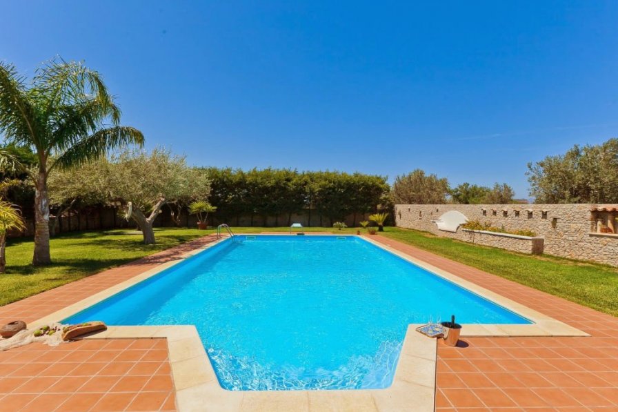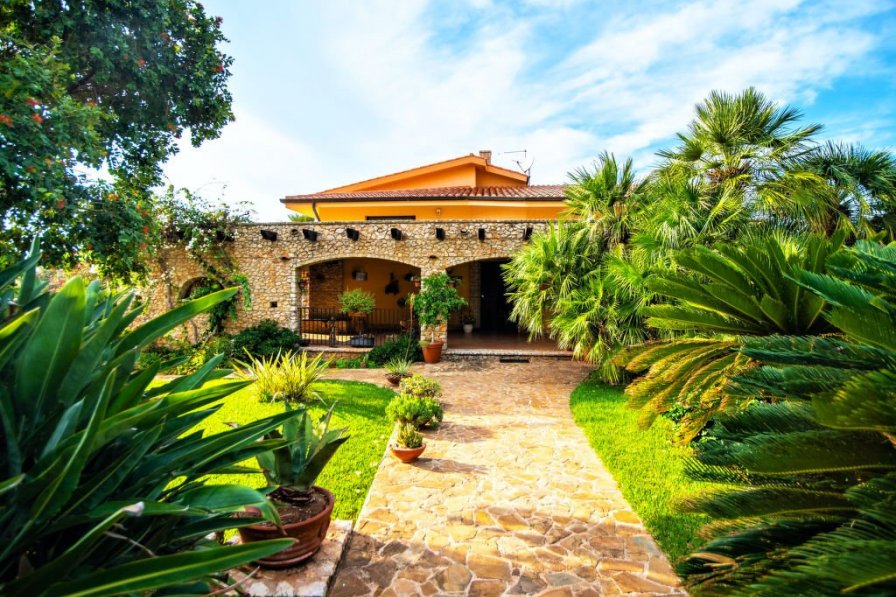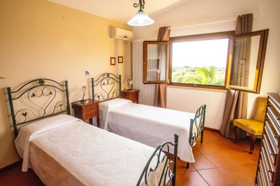 8-room villa 320 m2 on 2 levels. **Inside** * Comfortable and tasteful furnishings: large living room with open-hearth fireplace and satellite TV (flat screen), DVD * Exit to the patio * Dining room * Exit to the patio * 1 double bedroom with shower/bidet/WC * 1 double bedroom * Kitchen (4 hot plates, oven, dishwasher, toaster, kettle, microwave, freezer) with dining table, TV * Bath/bidet/WC * Upper floor: (ladder) open living room * 1 double bedroom with air conditioning and forced-air heating * 2 rooms, each room with 2 beds, air conditioning and forced-air heating * Shower/bidet/WC * Large patio 60 m2, roofed * Terrace furniture, barbecue, deck chairs * View of the swimming pool and the garden * Facilities: washing machine, safe, iron, children's high chair, baby cot for up to 2 year olds (extra), hair dryer * Internet (WiFi, free) * Reserved parking (2 cars) * The Villa is equipped with a covered outdoor kitchen: 4 burners, wood oven, fridge, dining table **Outside** * Villa "Carta" * 2 km from the centre of Cinisi, 30 km from the centre of Palermo, in a sunny position, 3 m from the sea * Private: property 1'000 m2 (fenced), garden, swimming pool (12 x 6 m, depth 120 - 240 cm, 01/04-31/10) * Garden furniture, barbecue, pool maintenance by the owner/gardener parking on the premises * Grocery 2 km, supermarket 2 km, restaurant 2 km, bar 2 km, sandy beach "Magaggiari" 3 km * Nearby attractions: Mondello 25 km, Monreale 35 km, Segesta Parco Archeologico 47 km, Erice 72 km, Trapani-Aliscafi per Isole Egadi 77 km, Marsala-Saline 95 km * Please note: car recommended * Airfield 4 km from the property