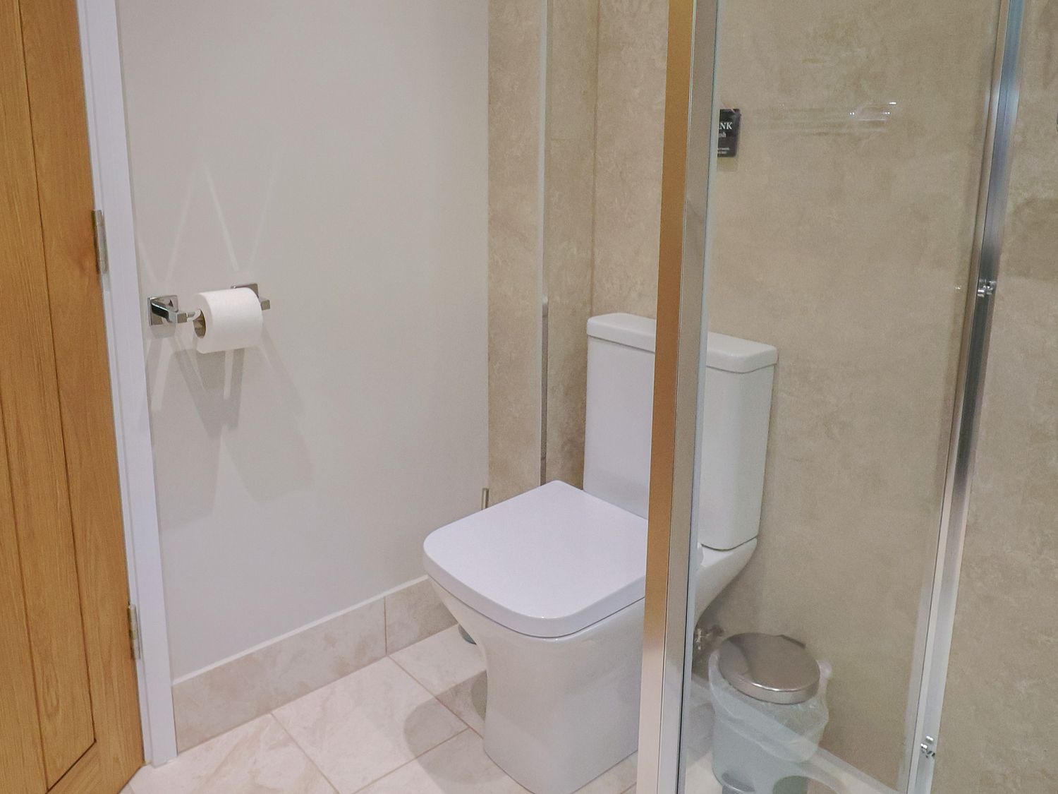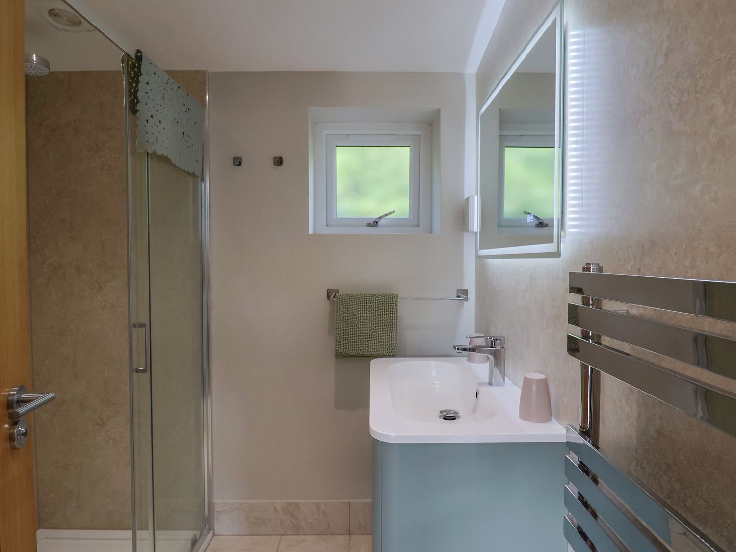 "Single-storey. One king-size bedroom. Shower room with walk in shower, basin and WC. Open-plan living area with kitchen, dining area and lounge with patio doors leading to garden and seating area"