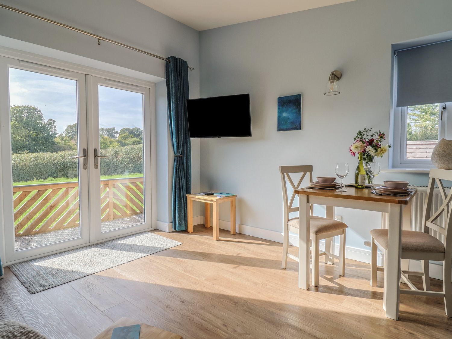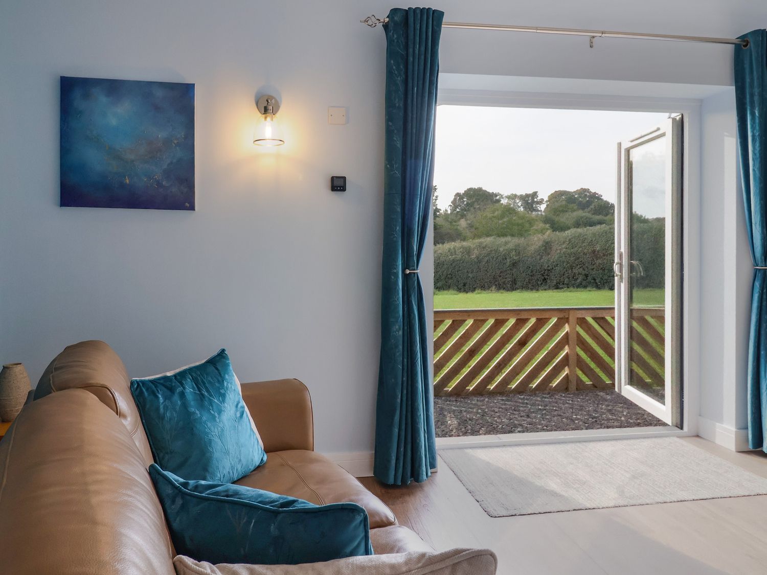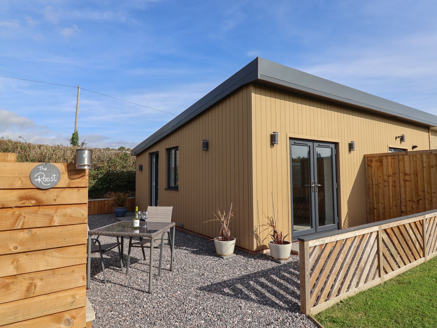 "The Roost consists of an open-plan living space with a dining table and chairs, a wall-mounted Smart TV, a kitchen equipped with a two-ring hob, oven, and fridge with ice box. Patio doors lead to a private seating area with views over the gardens. The bedroom features a king-size bed, and the shower room includes a double walk-in shower, wash basin, and WC. Outside, there are well-kept lawns and gravel seating areas with countryside views. The property is accessed via a gate leading to a private gravel drive with parking spaces. WiFi, fuel, power, bed linen and towels are all included. Babies welcome by prior arrangement. Sorry, no pets and no smoking. Guests can find a shop and pub within a short drive, with a wide range of attractions nearby including Lyme Bay Winery, Seaton Wetlands, the historic town of Colyton with its independent shops and tramway, and the seaside towns of Lyme Regis and Sidmouth. Note: Trains pass briefly on the hour (not 24 hr). Note: Check-in from 4pm, check-out by 10am. Note: There is a Good Housekeeping Bond of 150GBP"