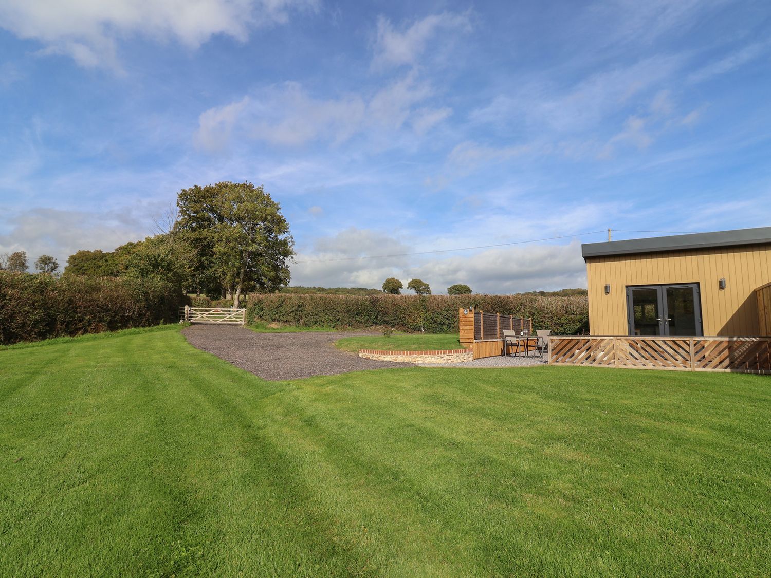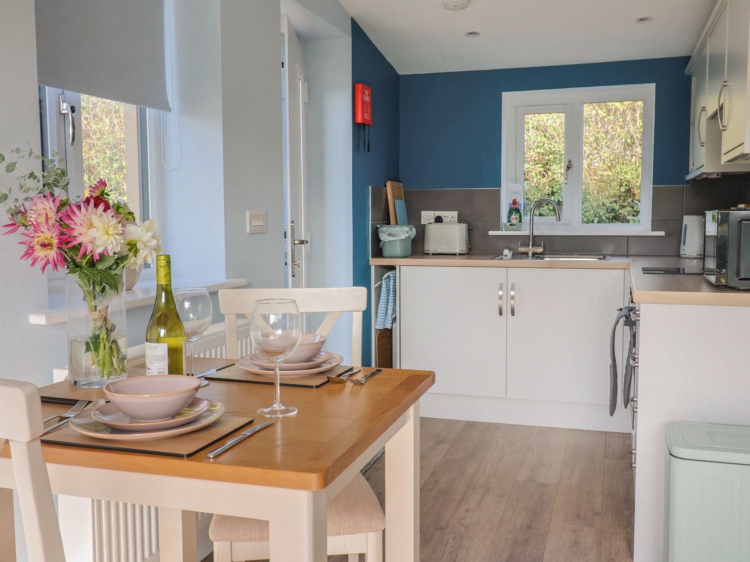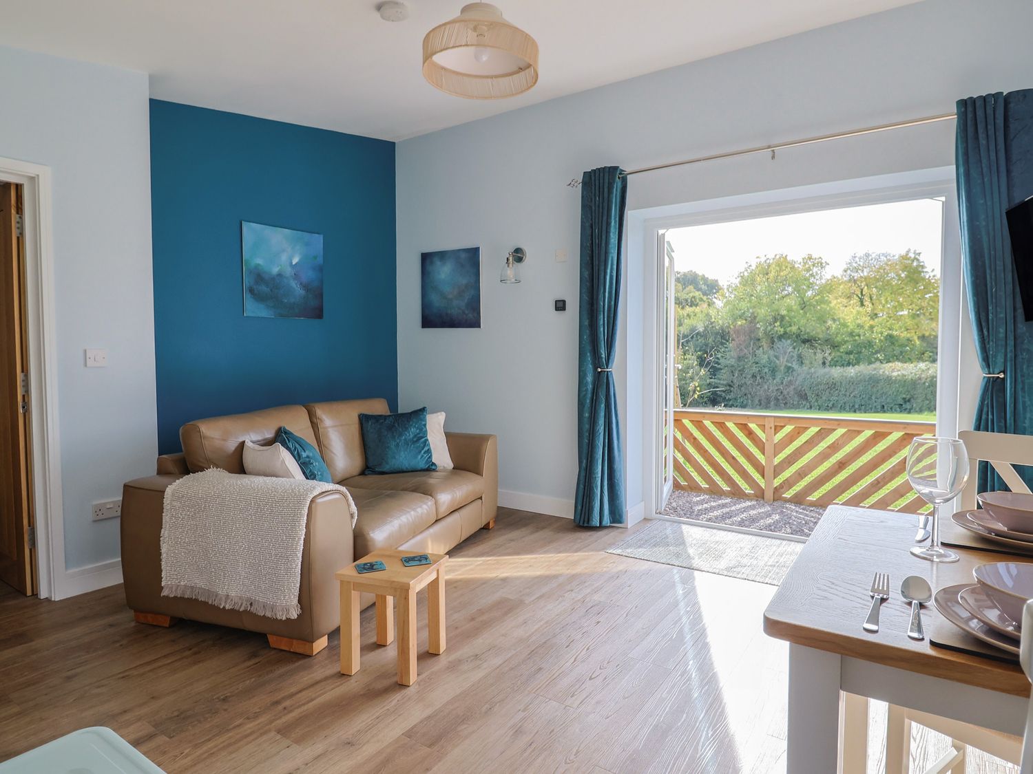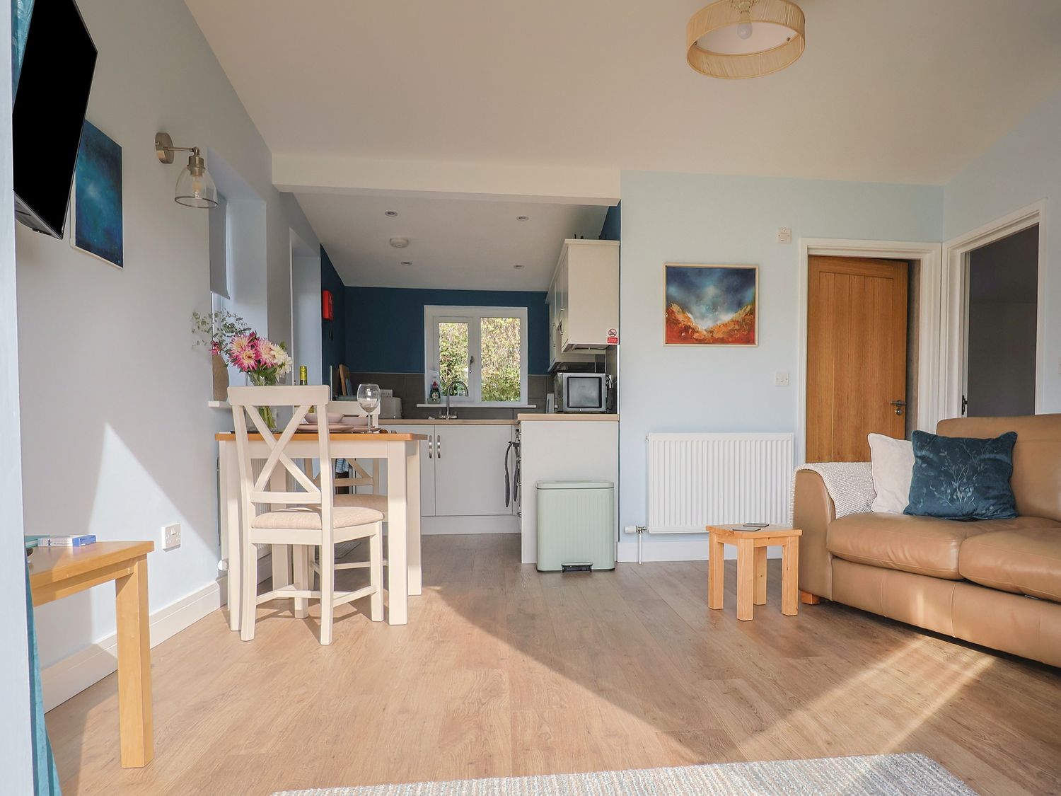 "The Roost consists of an open-plan living space with a dining table and chairs, a wall-mounted Smart TV, a kitchen equipped with a two-ring hob, oven, and fridge with ice box. Patio doors lead to a private seating area with views over the gardens. The bedroom features a king-size bed, and the shower room includes a double walk-in shower, wash basin, and WC. Outside, there are well-kept lawns and gravel seating areas with countryside views. The property is accessed via a gate leading to a private gravel drive with parking spaces. WiFi, fuel, power, bed linen and towels are all included. Babies welcome by prior arrangement. Sorry, no pets and no smoking. Guests can find a shop and pub within a short drive, with a wide range of attractions nearby including Lyme Bay Winery, Seaton Wetlands, the historic town of Colyton with its independent shops and tramway, and the seaside towns of Lyme Regis and Sidmouth. Note: Trains pass briefly on the hour (not 24 hr). Note: Check-in from 4pm, check-out by 10am. Note: There is a Good Housekeeping Bond of 150GBP"