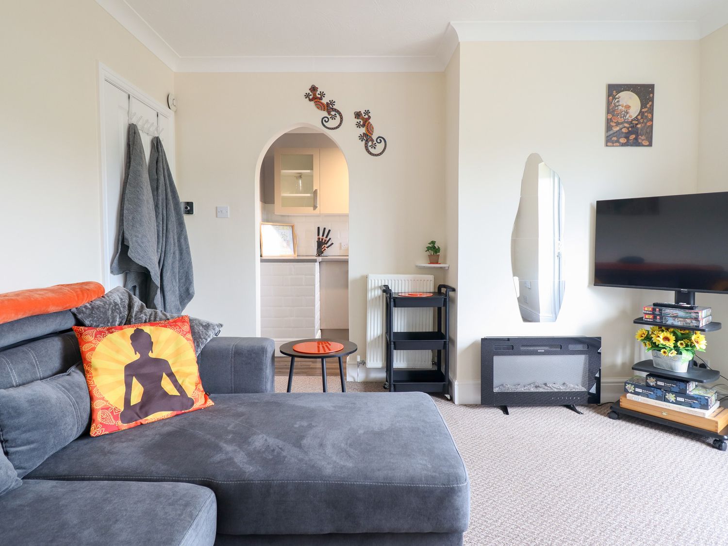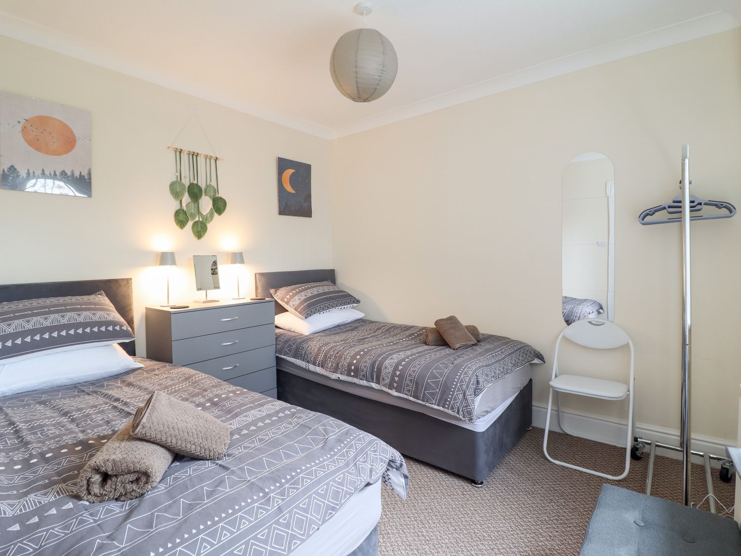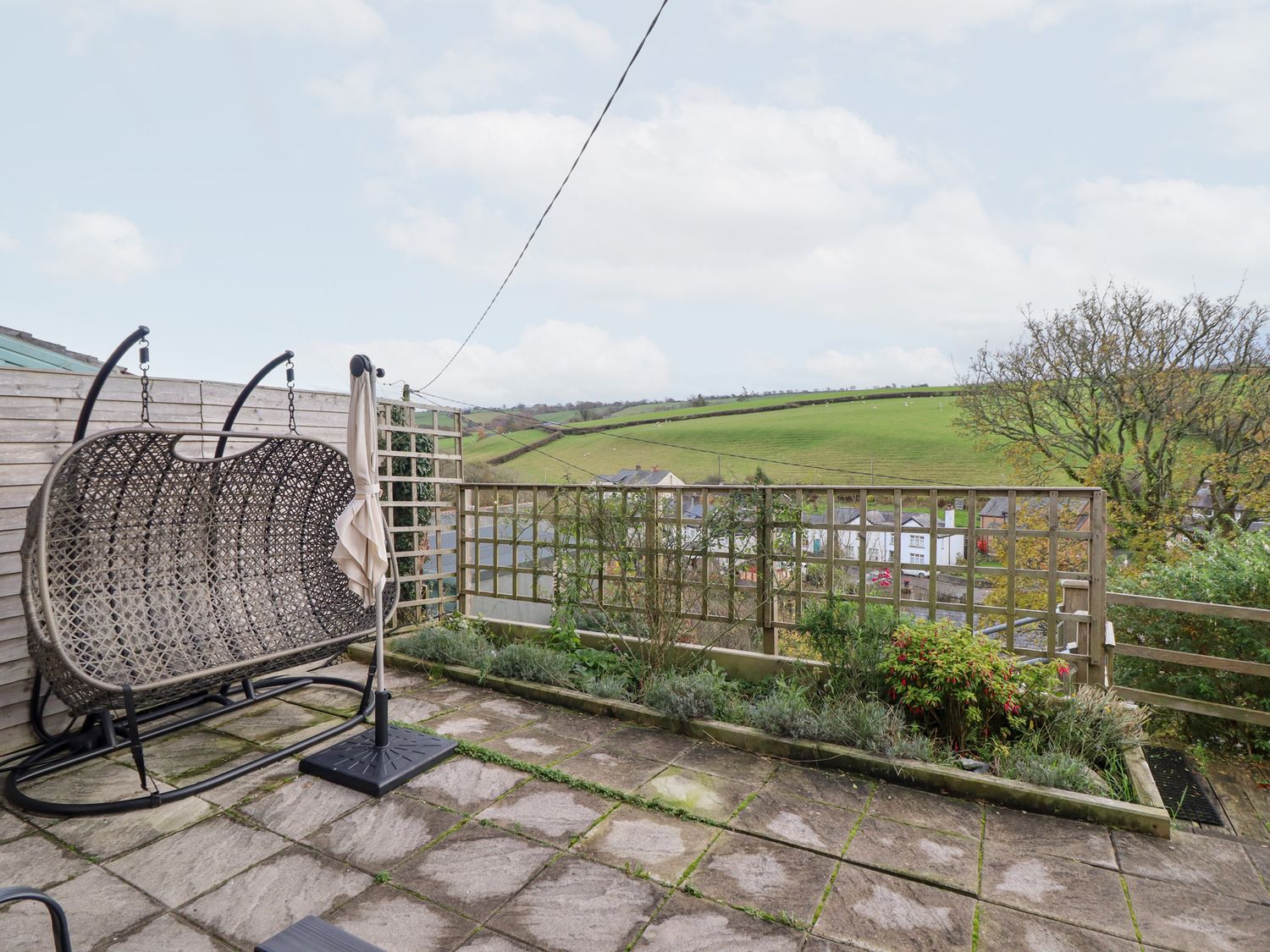 "Golygfa consists of a kitchen with a double electric oven and hob, microwave, fridge/freezer, washing machine, kettle and toaster, a living/dining room with a Smart TV, balcony and seating.The bedrooms include a ground-floor double and a twin serviced by a bathroom with a bath, shower over, basin, heated towel rail and WC. Outside, there is an enclosed courtyard garden with furniture and a swing seat, as well as a lower garden terrace with a lawn and furniture, along with off-road private parking for two cars. Two well-behaved dogs are welcome. Please note that this is a non-smoking property. WiFi, fuel, power, bed linen and towels are all included in the price. Within 4.9 miles, you will find a shop, and within 2.6 miles, a pub. Have a magnificent trip away at Golygfa. Note: There are 11 steps to the lower garden terrace, and a further 15 steps to the next level, with 9 steps down to the driveway at the rear. Note: Guests can drop off luggage at the front door before parking behind the property down a steep hill. Note: This property has a Good Housekeeping Bond of 250 GBP."