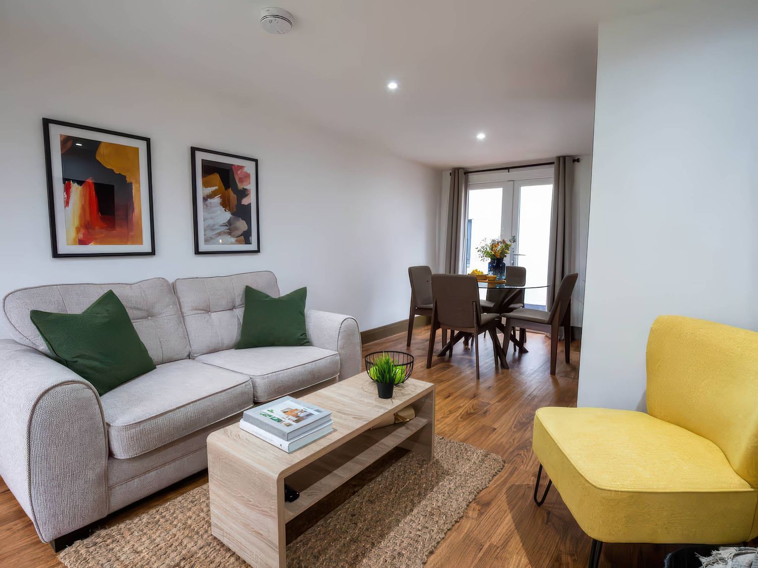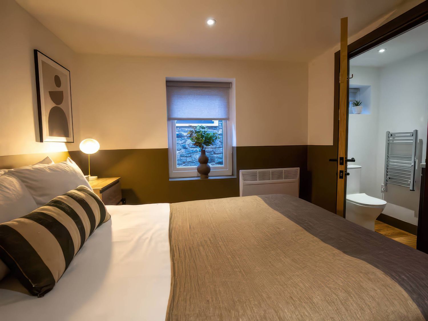 "Single-storey. One double bedroom with en-suite walk-in shower, basin, heated towel rail, and WC. Open-plan living space with kitchen, dining area and sitting area"