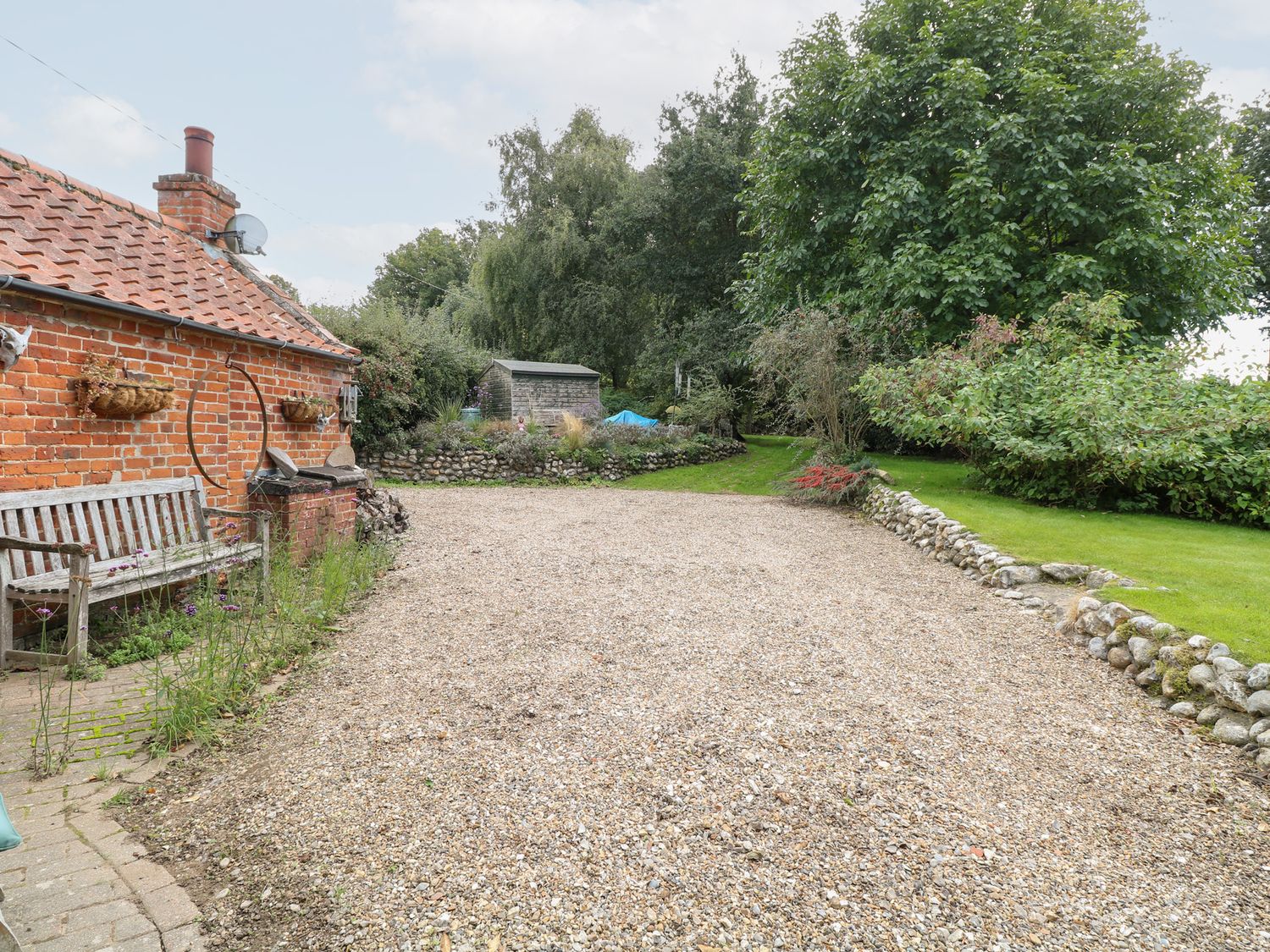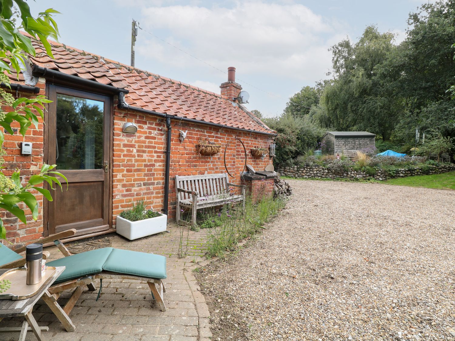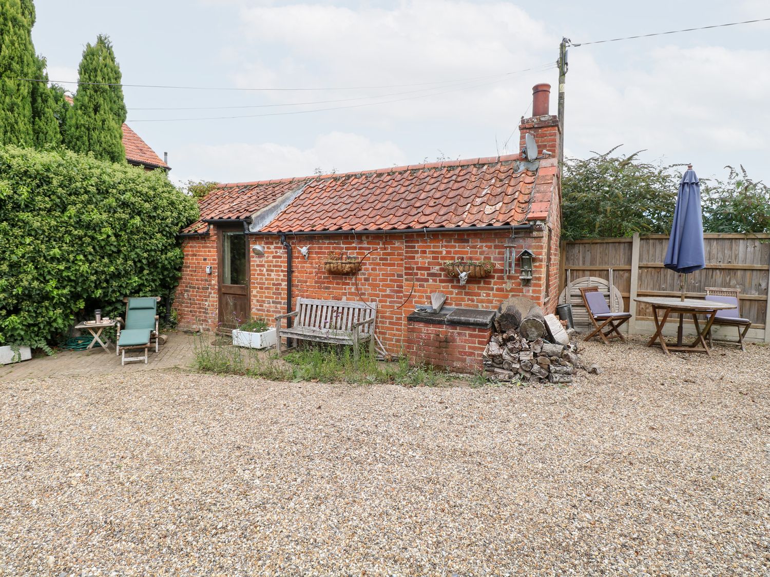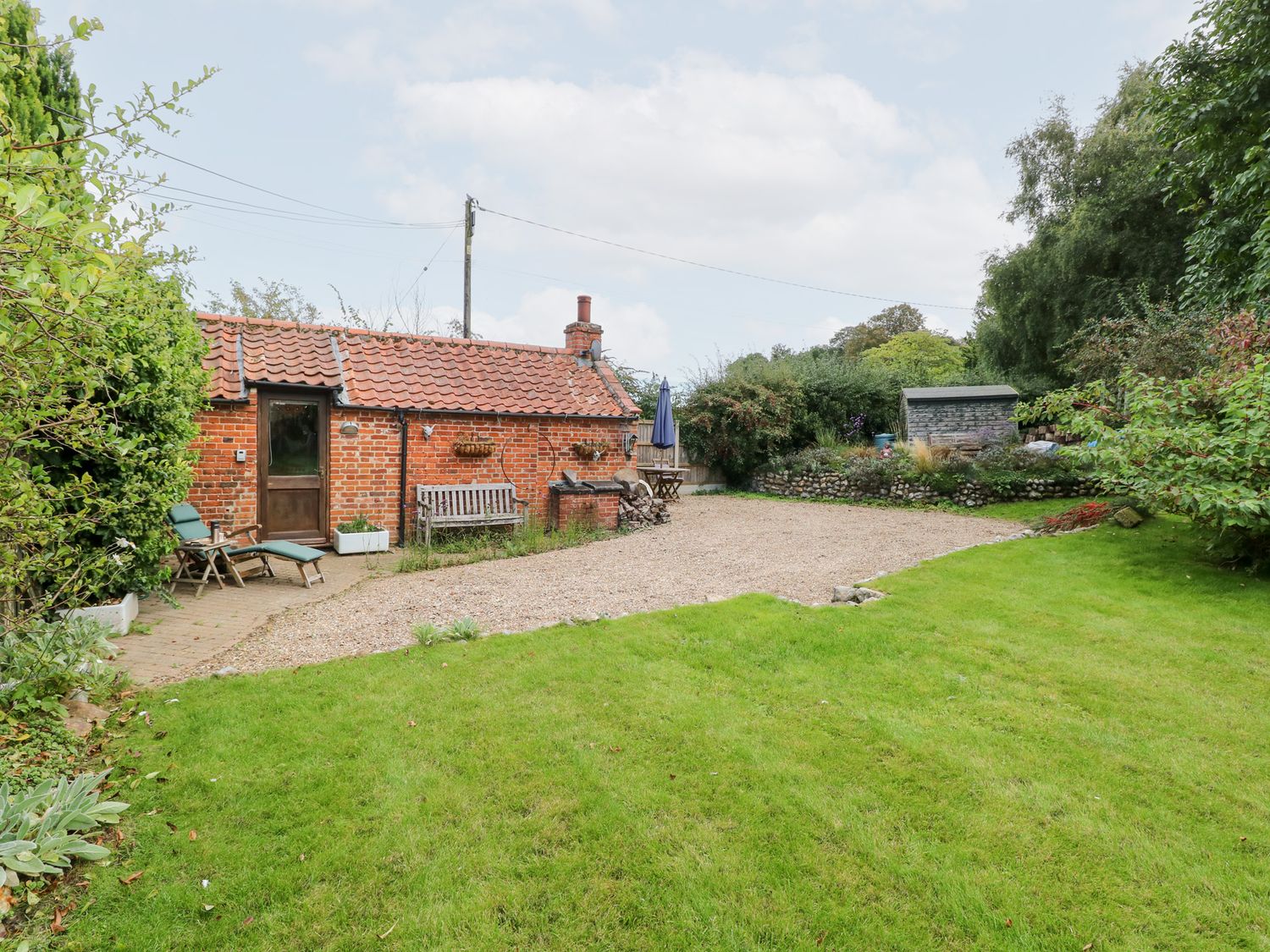 "The Retreat in Oulton, Norfolk, consists of a kitchen with electric oven and hob, fridge with ice box, washing machine and kettle, a studio-style layout with a double sofa bed, dining area and sitting area. There is a shower room with walk-in shower, basin and WC. Outside, there is off-road parking for two cars and a large garden with patio, lawn, gravelled area and furniture. Sorry, no pets and no smoking. Fuel, power, bed linen and towels are all included in the price. Within 1.1 miles you will find a shop and within 0.9 miles a pub. The Retreat is a peaceful switch-off base for exploring Norfolk. Note: There is no WiFi or TV, mobile coverage may be limited. Please park on the grass rather than the gravel to avoid the risk of damaging your vehicle against the stone wall. Note: The wood burner is for display purposes only and is not operational for use."