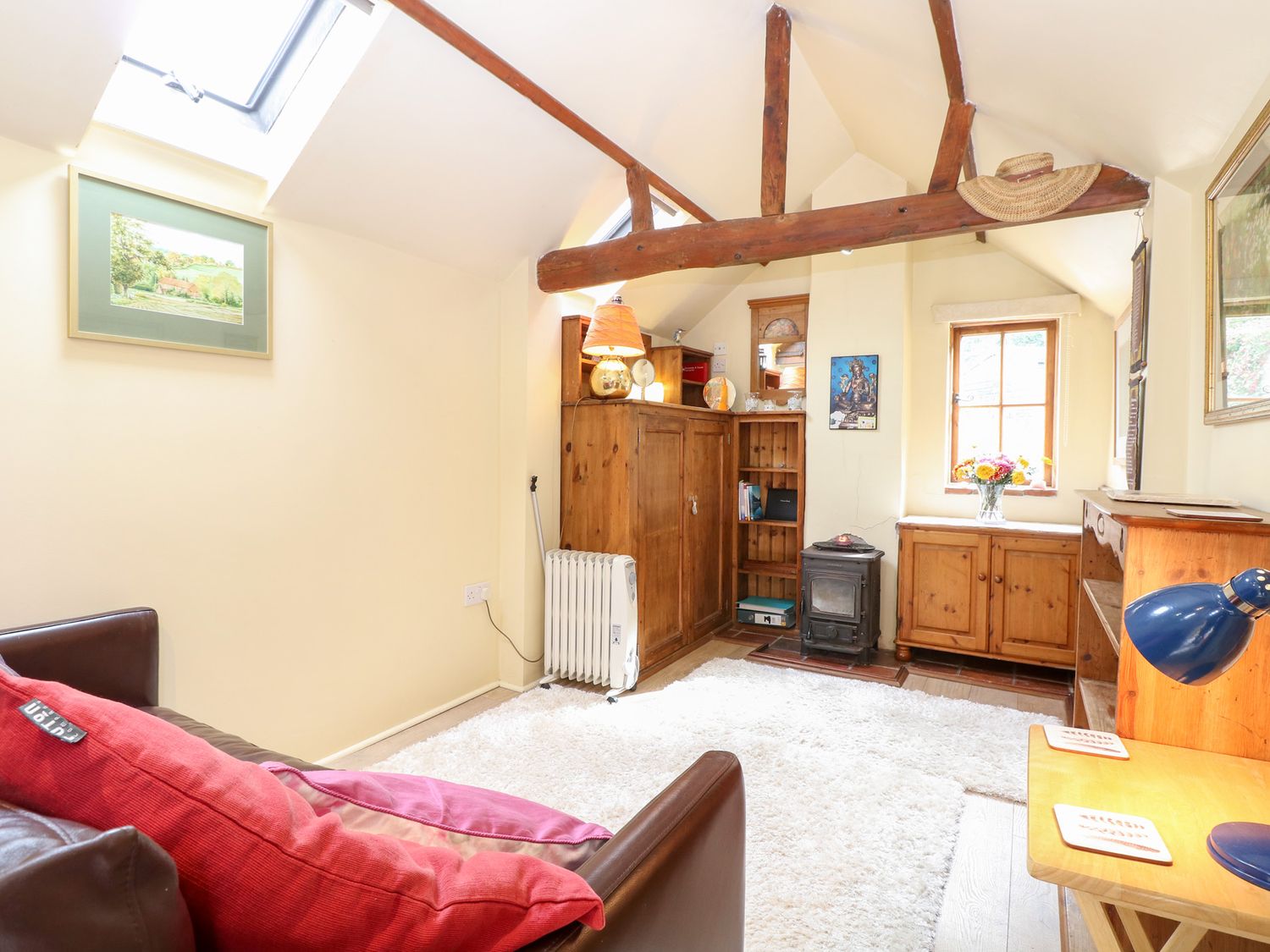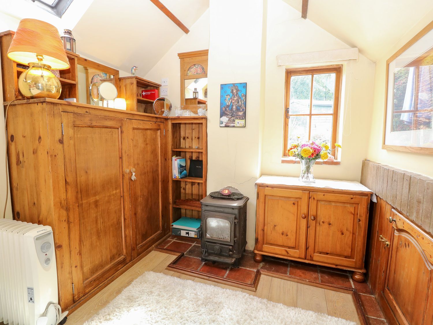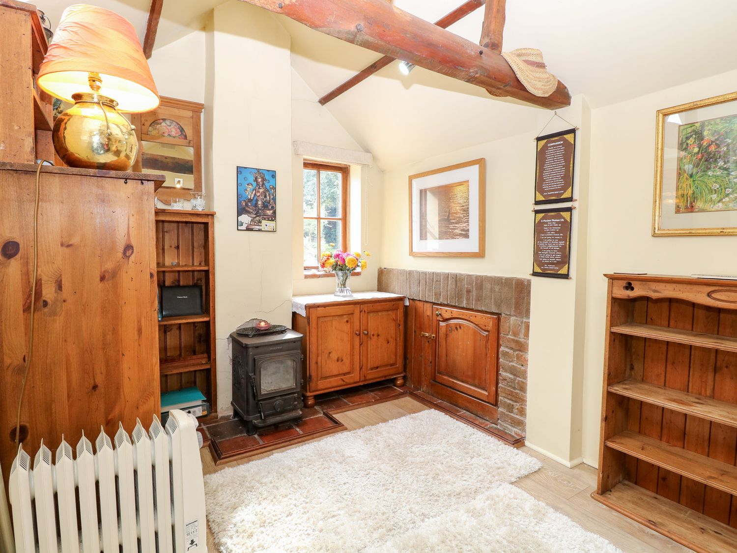 "The Retreat in Oulton, Norfolk, consists of a kitchen with electric oven and hob, fridge with ice box, washing machine and kettle, a studio-style layout with a double sofa bed, dining area and sitting area. There is a shower room with walk-in shower, basin and WC. Outside, there is off-road parking for two cars and a large garden with patio, lawn, gravelled area and furniture. Sorry, no pets and no smoking. Fuel, power, bed linen and towels are all included in the price. Within 1.1 miles you will find a shop and within 0.9 miles a pub. The Retreat is a peaceful switch-off base for exploring Norfolk. Note: There is no WiFi or TV, mobile coverage may be limited. Please park on the grass rather than the gravel to avoid the risk of damaging your vehicle against the stone wall. Note: The wood burner is for display purposes only and is not operational for use."