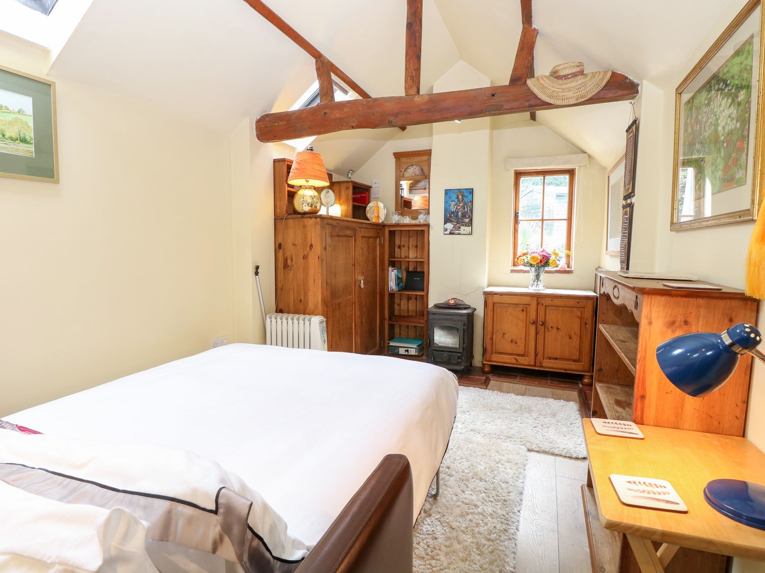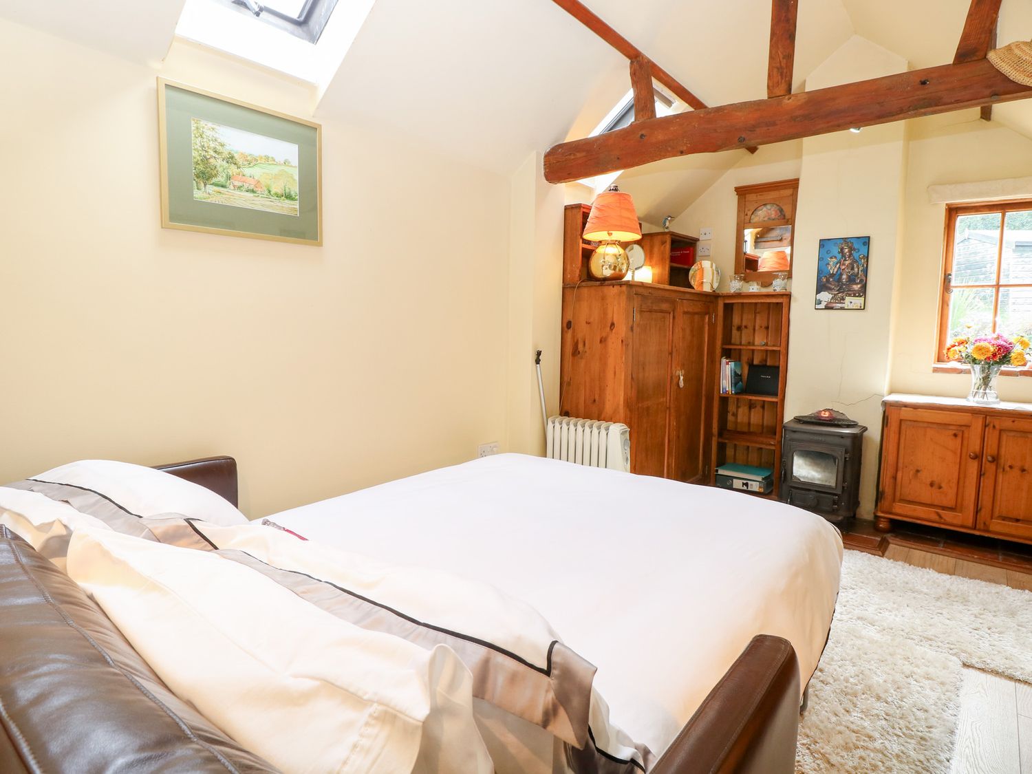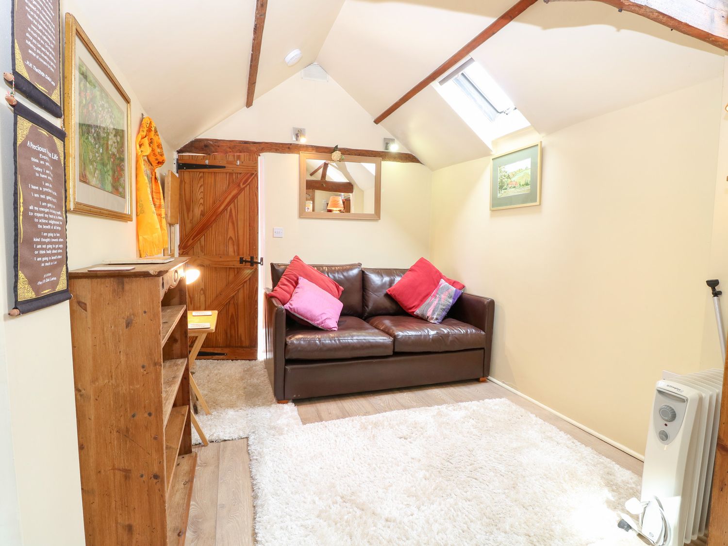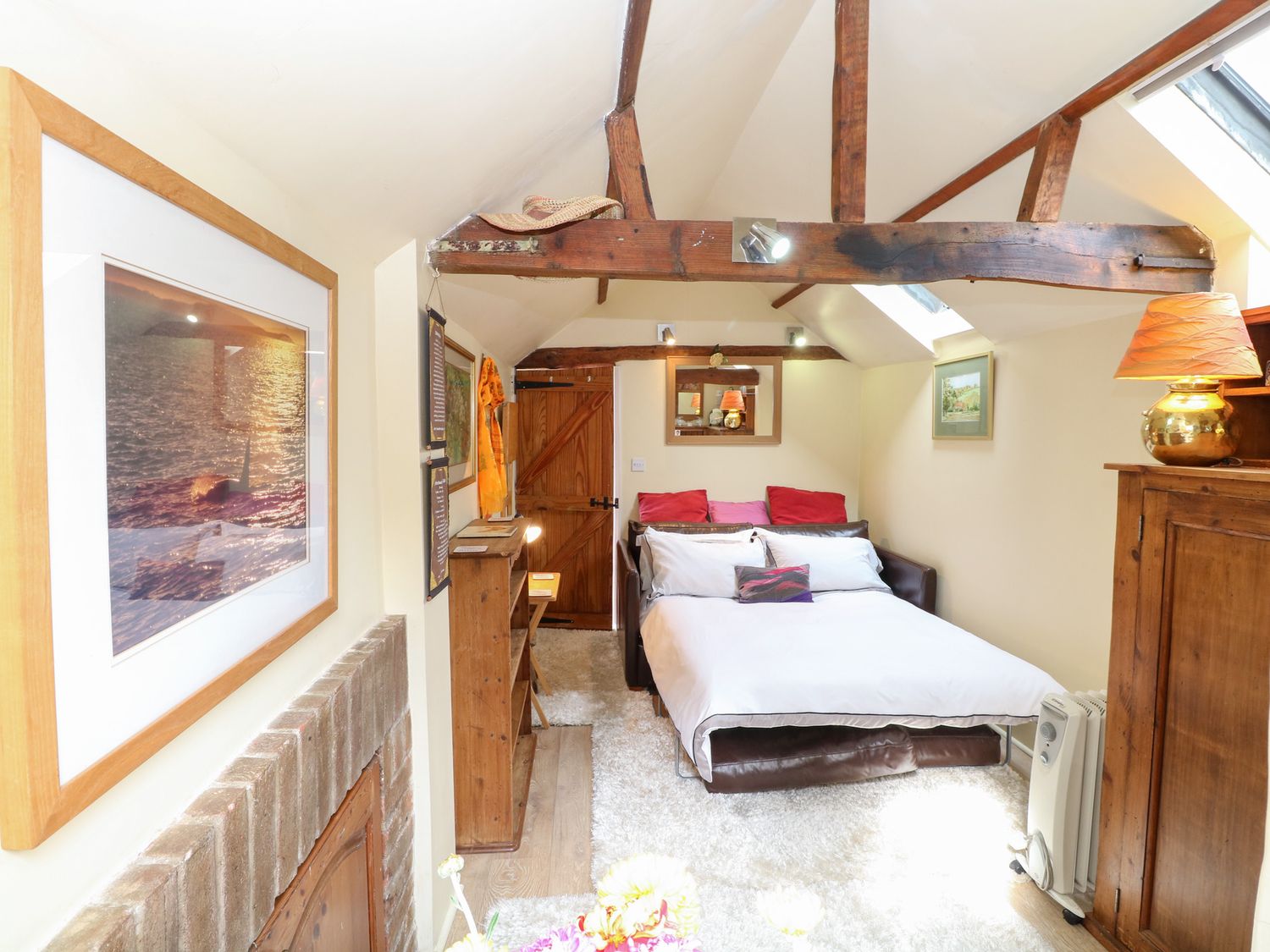"The Retreat in Oulton, Norfolk, consists of a kitchen with electric oven and hob, fridge with ice box, washing machine and kettle, a studio-style layout with a double sofa bed, dining area and sitting area. There is a shower room with walk-in shower, basin and WC. Outside, there is off-road parking for two cars and a large garden with patio, lawn, gravelled area and furniture. Sorry, no pets and no smoking. Fuel, power, bed linen and towels are all included in the price. Within 1.1 miles you will find a shop and within 0.9 miles a pub. The Retreat is a peaceful switch-off base for exploring Norfolk. Note: There is no WiFi or TV, mobile coverage may be limited. Please park on the grass rather than the gravel to avoid the risk of damaging your vehicle against the stone wall. Note: The wood burner is for display purposes only and is not operational for use."