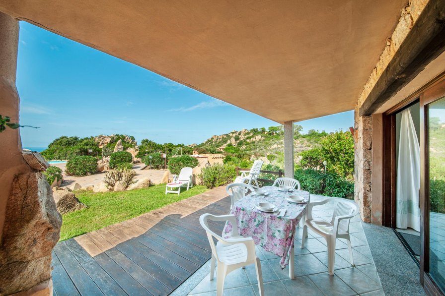This terraced house with new furnishings was renovated recently. From its equipped terrace you can enjoy a beautiful view, not only on a common pool, but also on the sea. The quiet location is ideal for those who want to spend a relaxing holiday. It is also a very good starting point to visit the famous towns of northern Sardinia.