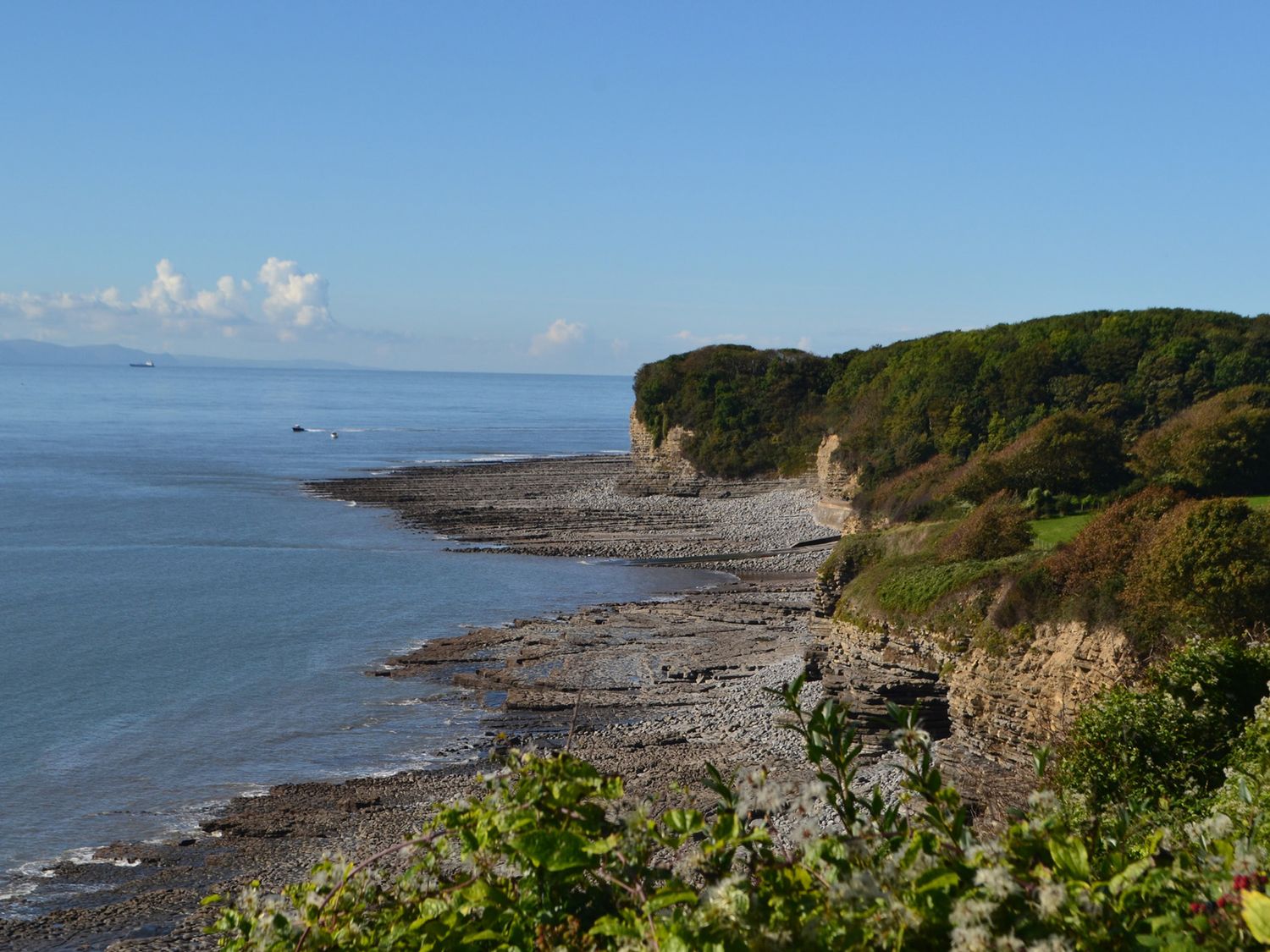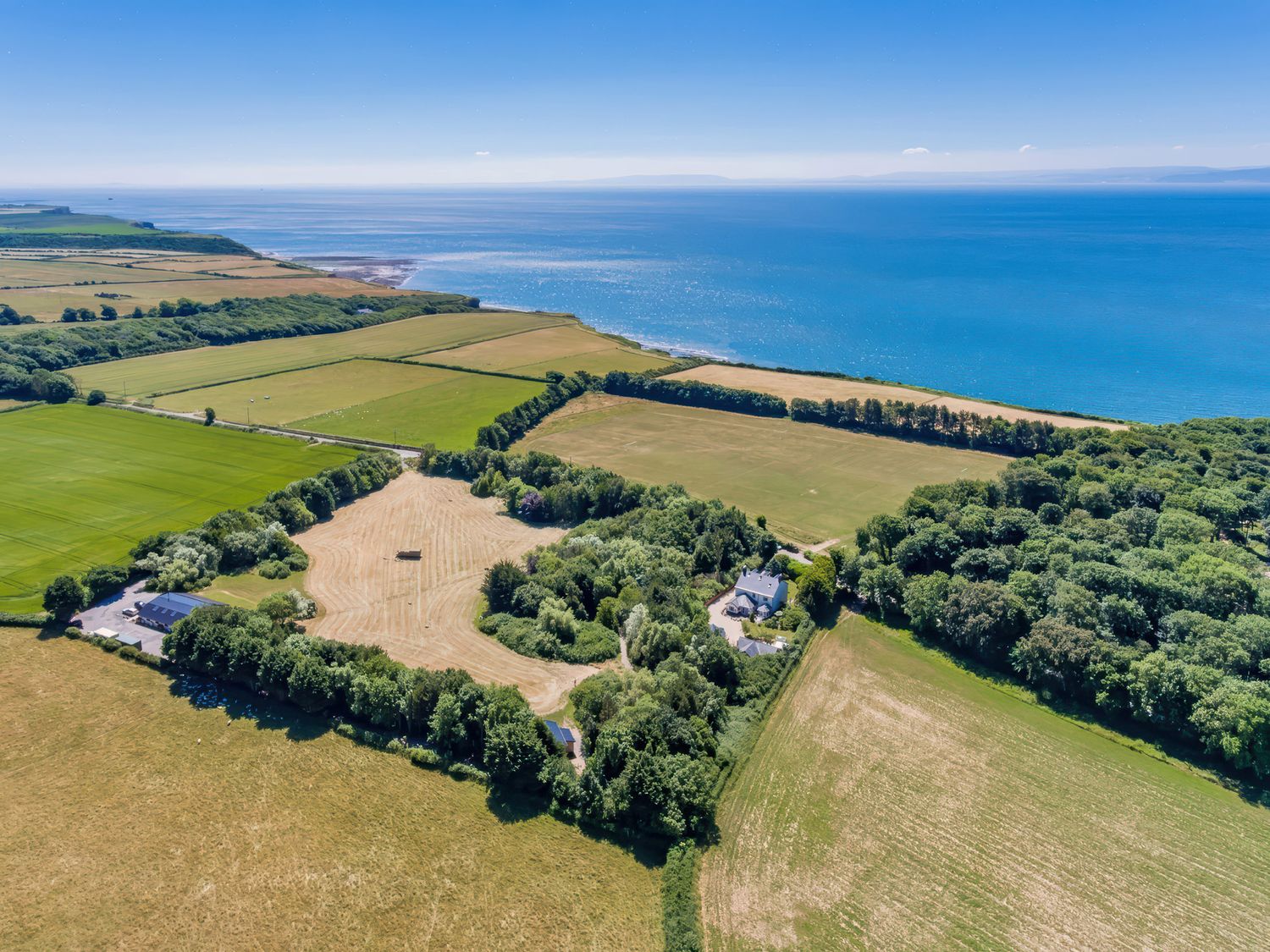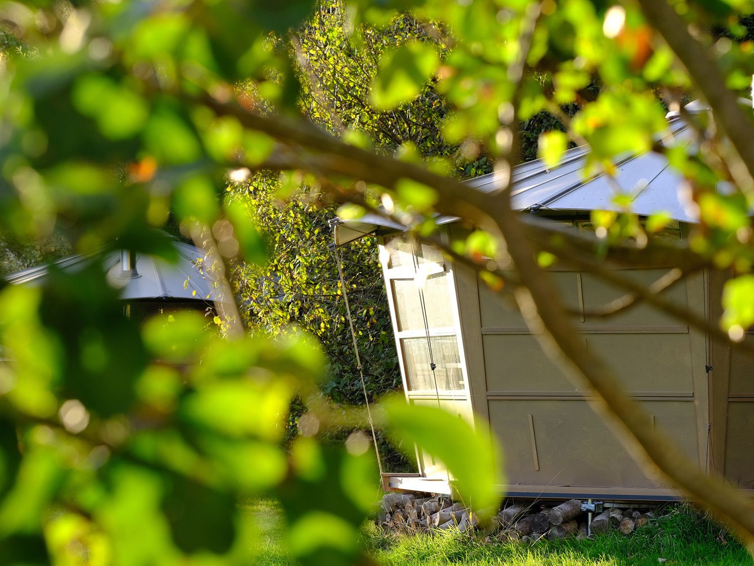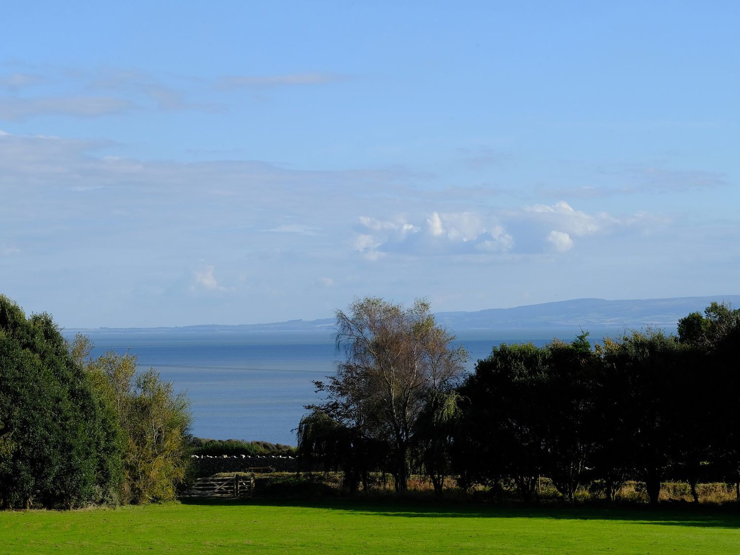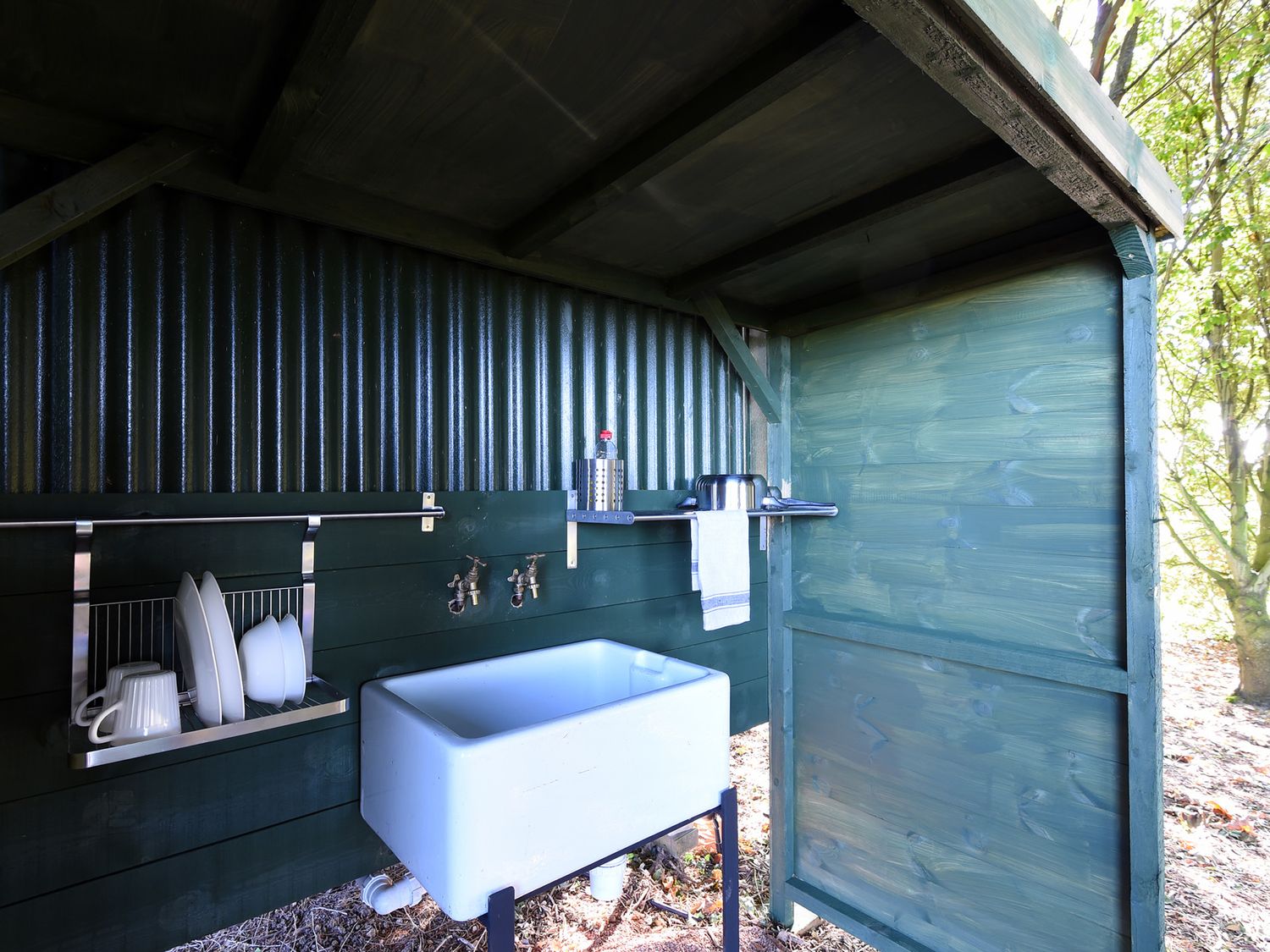 "Sea View. Single-storey. Open-plan living space with double bed, dining area, and woodburning stove. Private external shower room with walk-in shower, basin, WC. Private external kitchen"