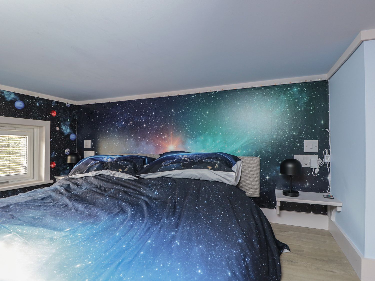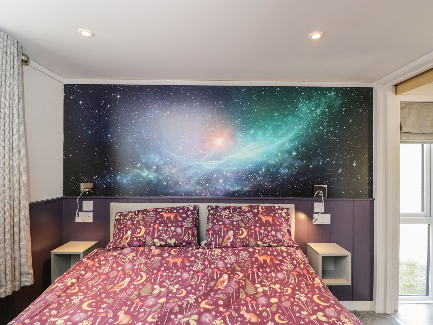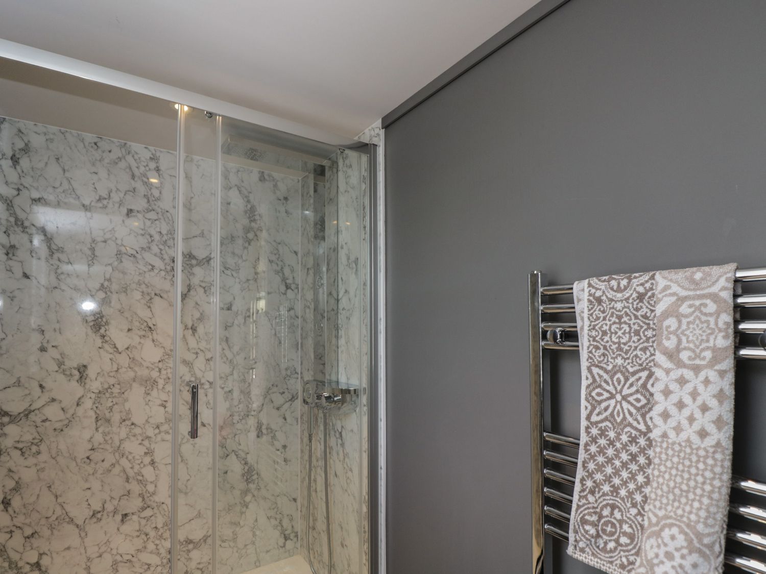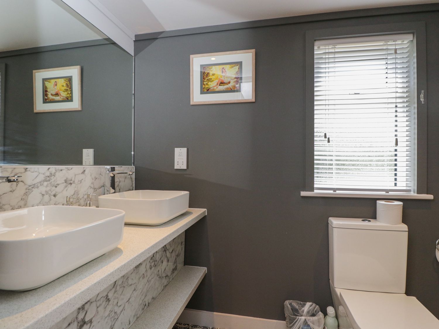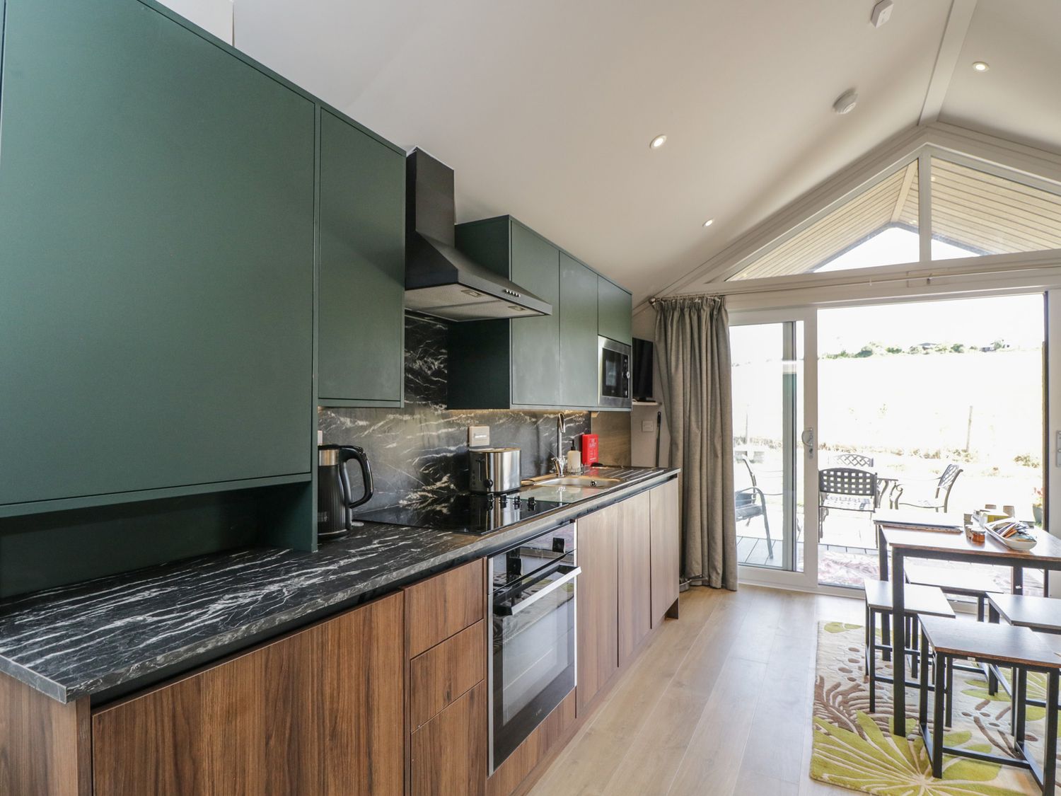 "Single-storey. Two bedrooms: 2 x king-size. Shower room with a walk-in all-over body shower, Jack and Jill basins, heated towel rail and WC. Open-plan living space with kitchen, dining area and sitting area with electric fire"