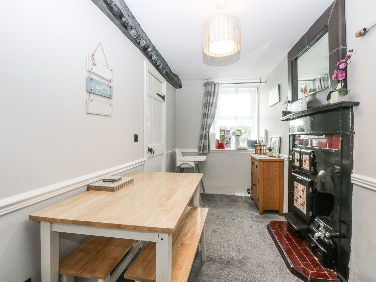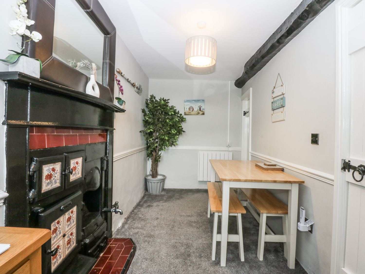 "Two bedrooms: 1 x double, 1 x bunk bed. Ground-floor shower room with shower, basin and WC. Kitchen. Dining area. Sitting room with woodburning stove. "