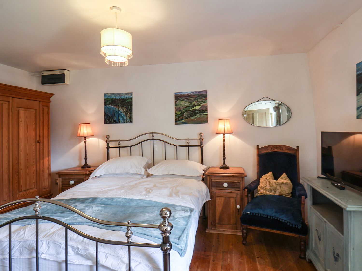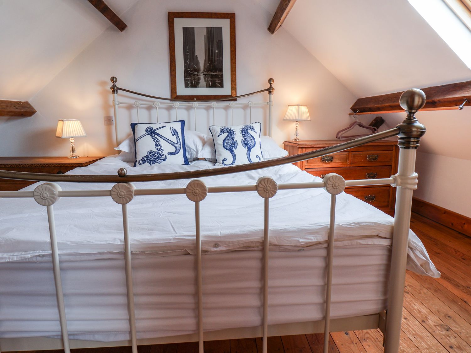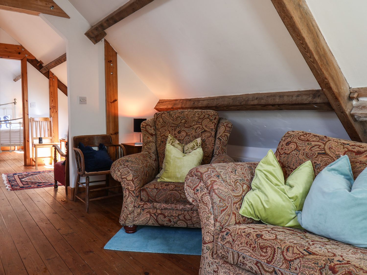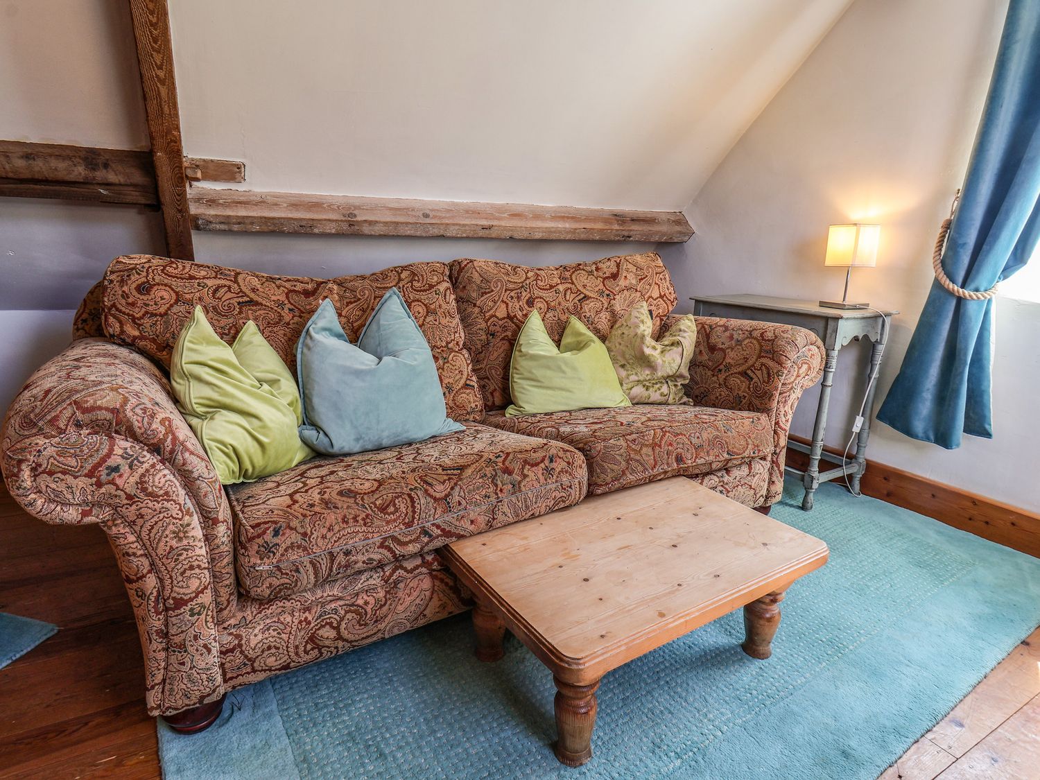 "Two bedrooms: 1 x first floor king-size, 1 x ground floor king-size with Smart TV. Ground floor bathroom with bath, shower over, basin and WC. Kitchen with dining area with views over stable yard. First floor sitting room with exposed timbers and magnificent views over open countryside."